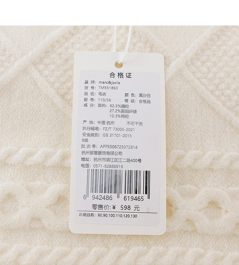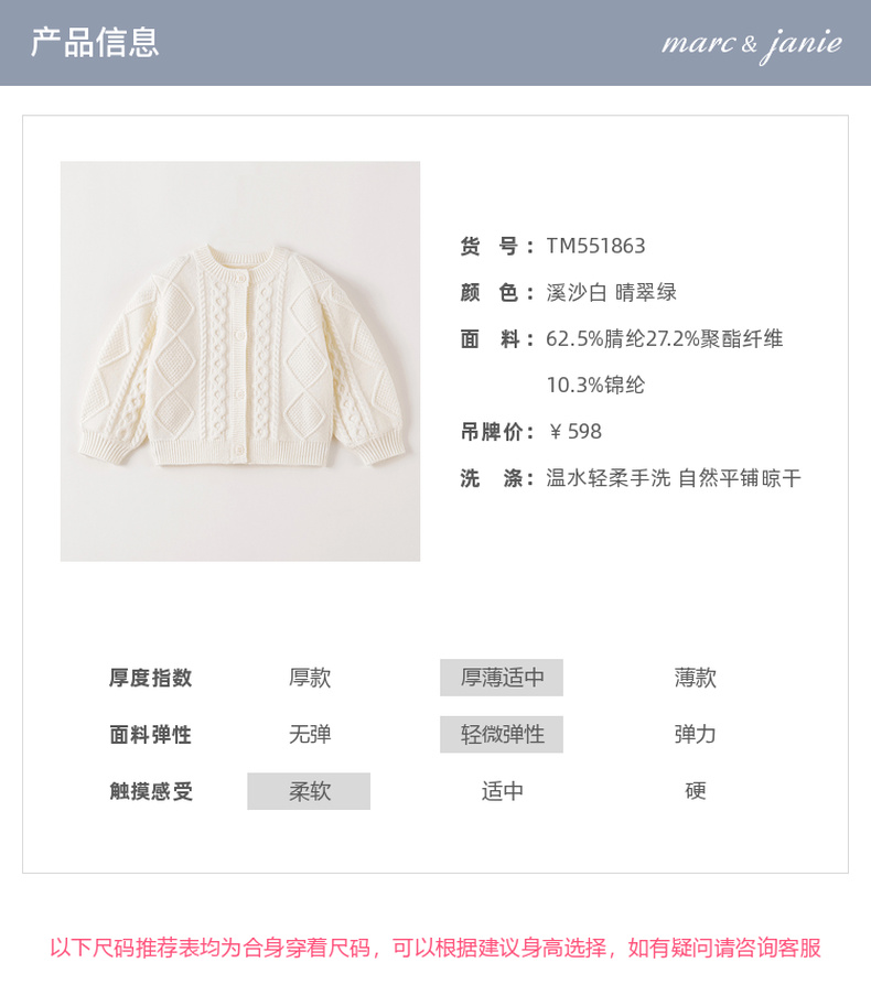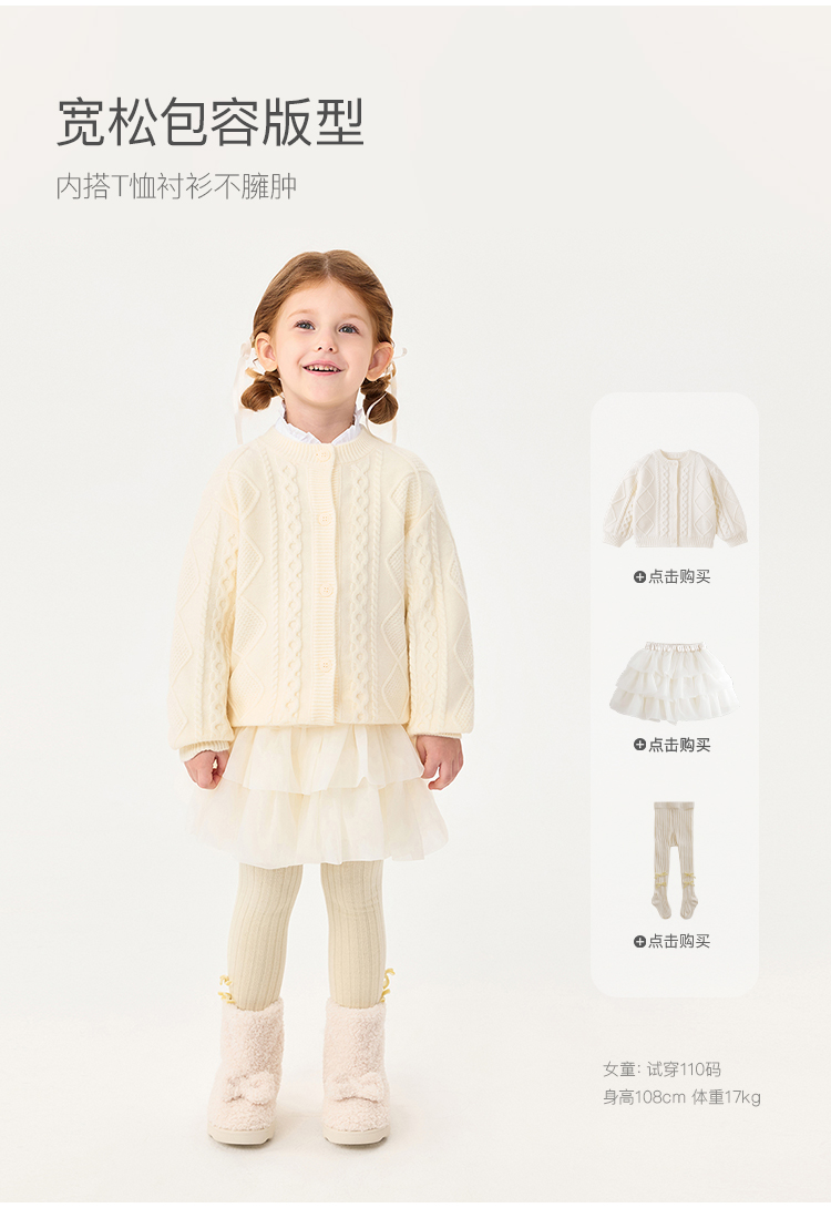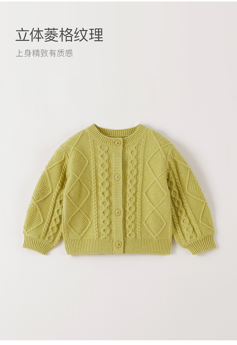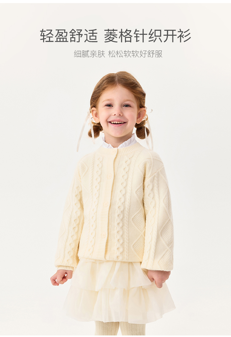 马克珍妮女童轻盈舒适菱格针织开衫2025年秋冬新款551863