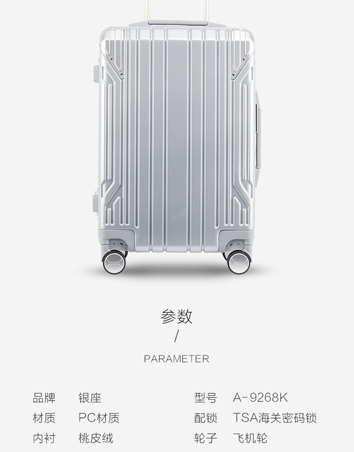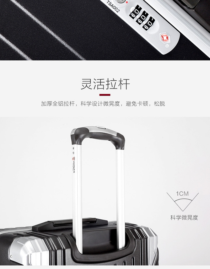 银座高档防刮铝框拉杆箱飞机轮24寸密码锁28寸行李箱20寸登机旅行箱 A-9268K