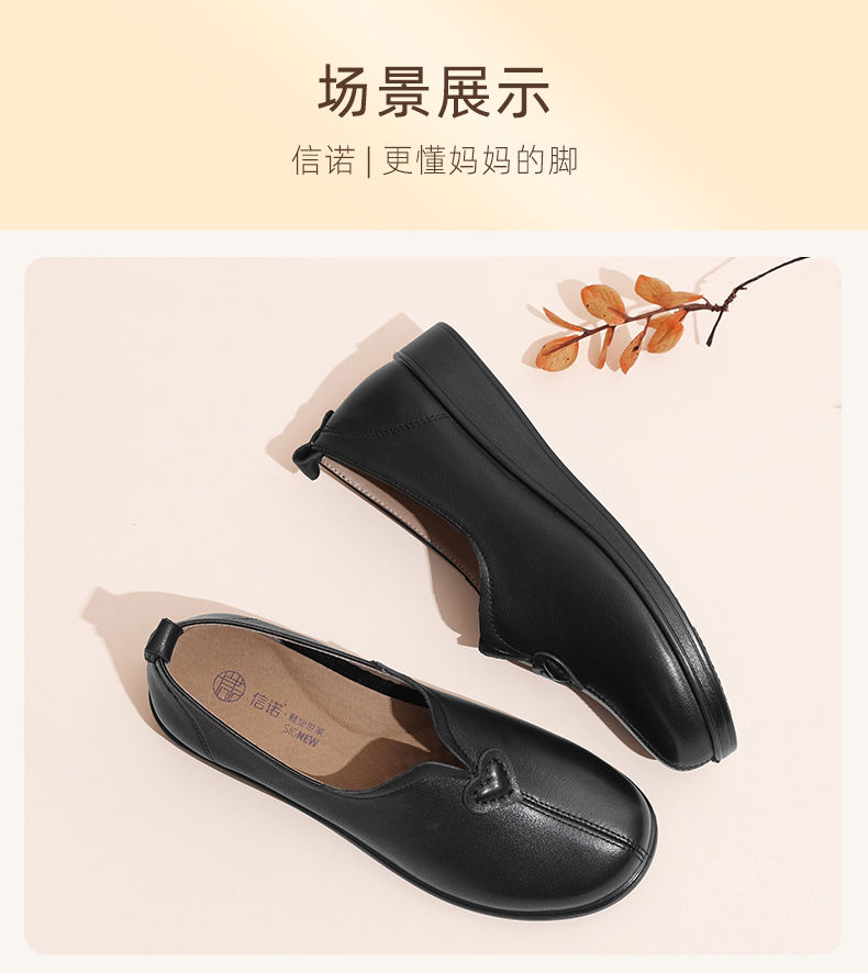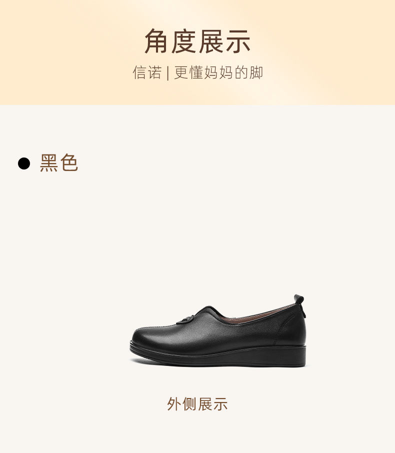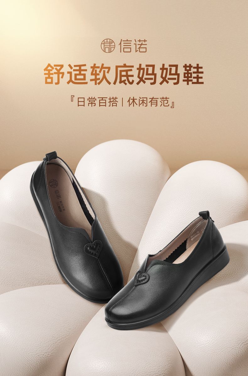 信诺 真皮舒适女鞋 妈妈鞋2024新款秋季中老年皮鞋奶奶鞋春秋单鞋Q6801-18