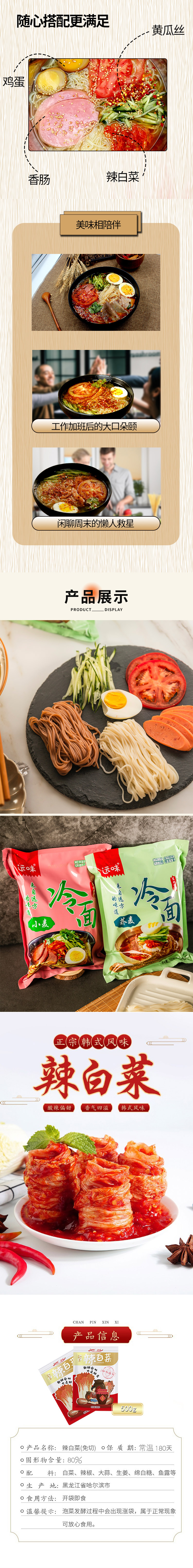 远味 冷面&辣白菜 套组 【到手八袋:4袋辣白菜+2袋小麦粉冷面+2袋荞麦味冷面】