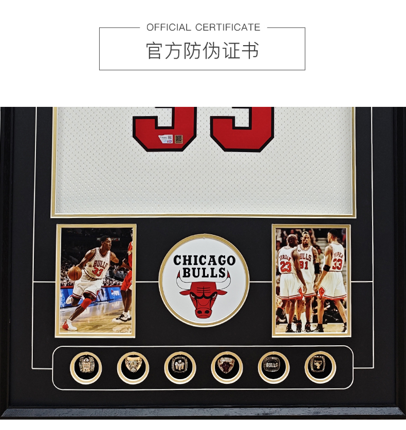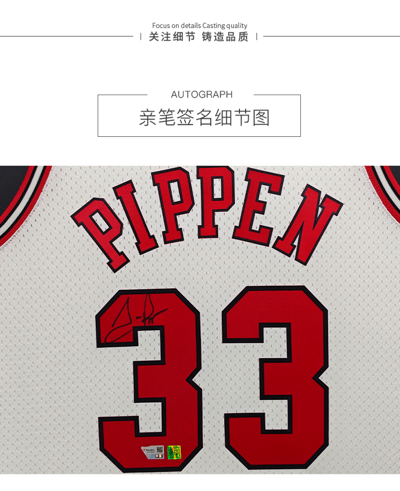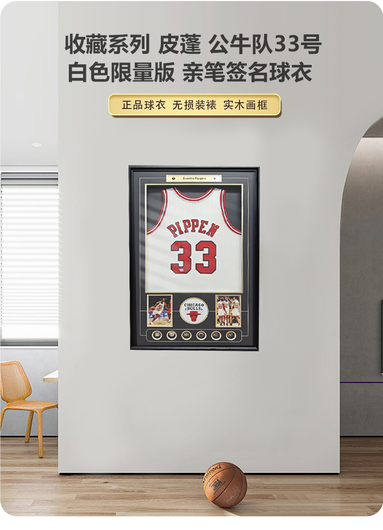 收藏系列 皮蓬 公牛队33号白色限量版 亲笔签名球衣