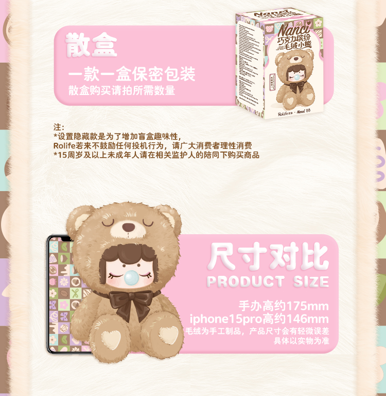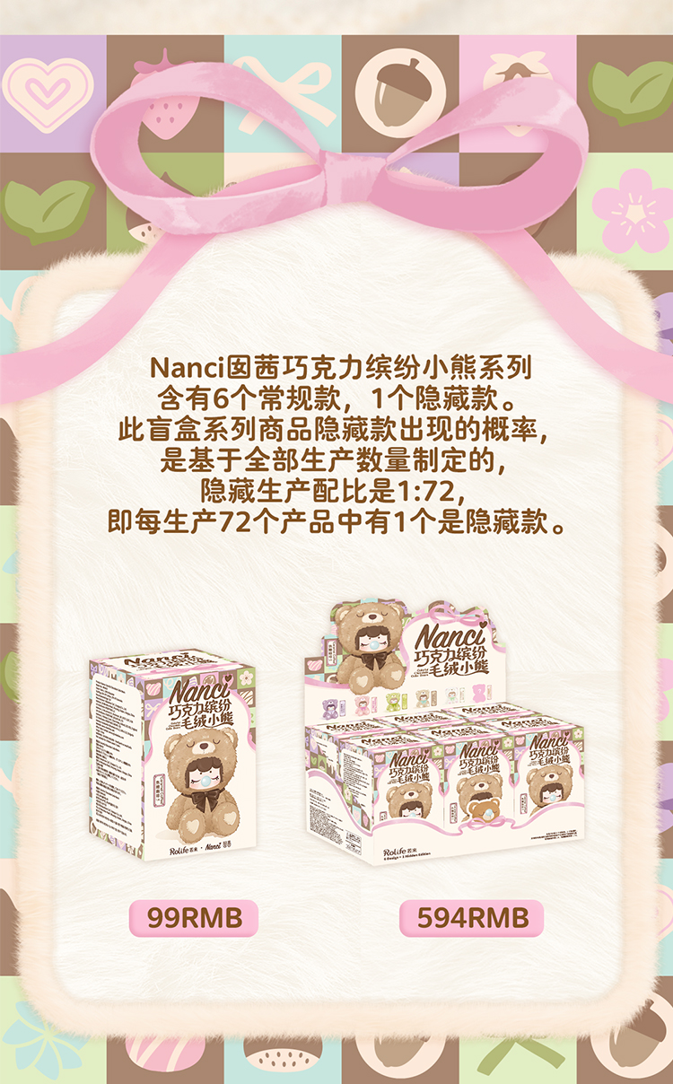 若来 囡茜毛绒一代 巧克力缤纷小熊盲盒随机发一款RULCMNAXX