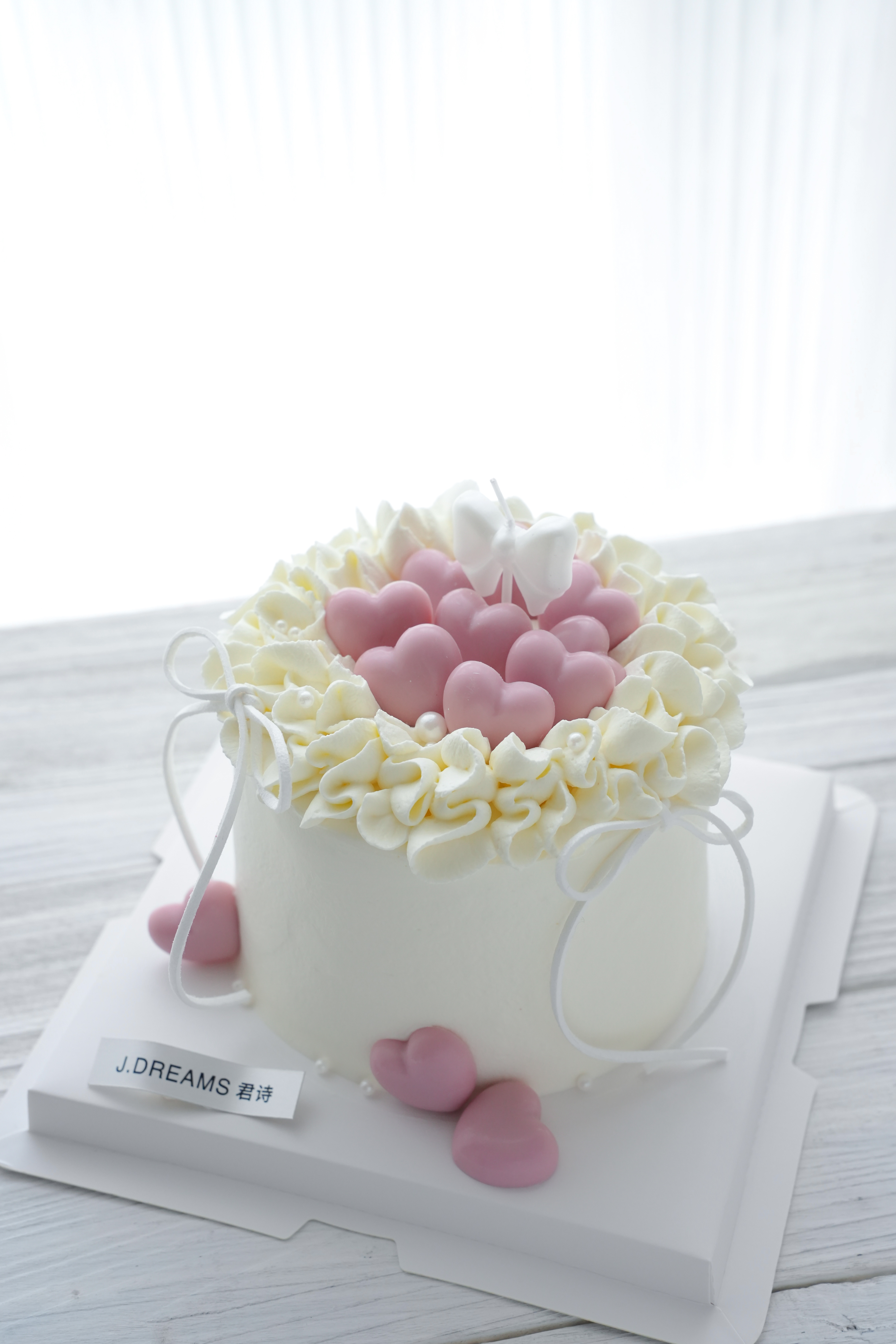 产品说明:因光线原因和显示屏不同,图片看起来可能有微黄感,但蛋糕整体是白色的奶油原色。