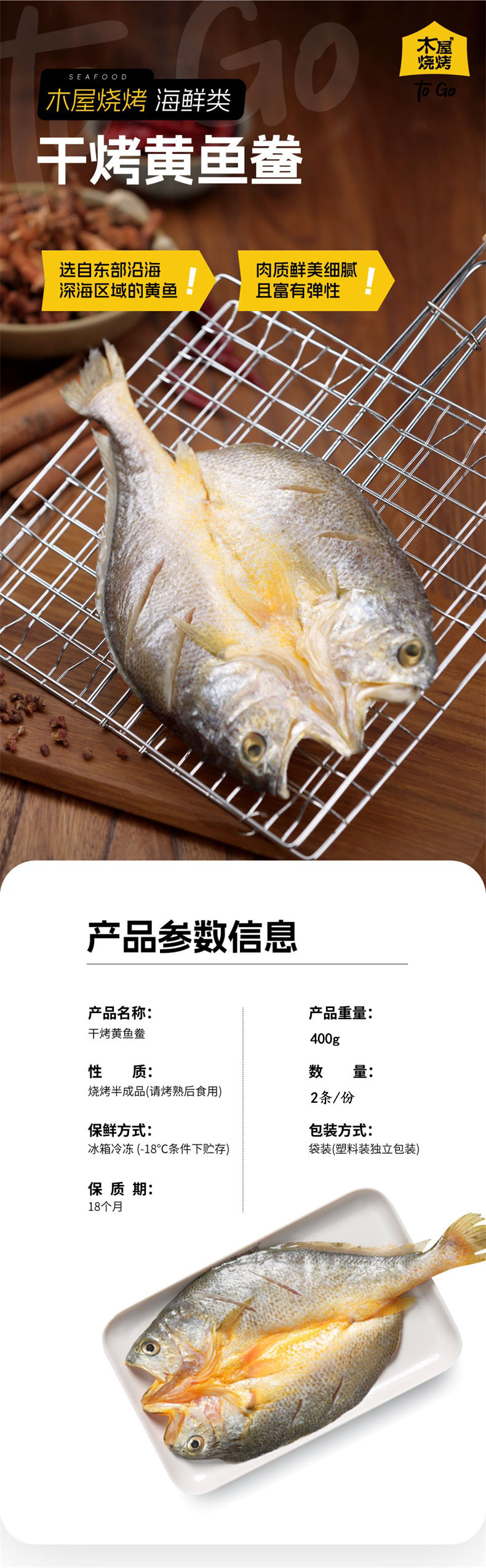 木屋干烤黄鱼鲞(2条/约400克,送烤网夹*1,半成品食材)