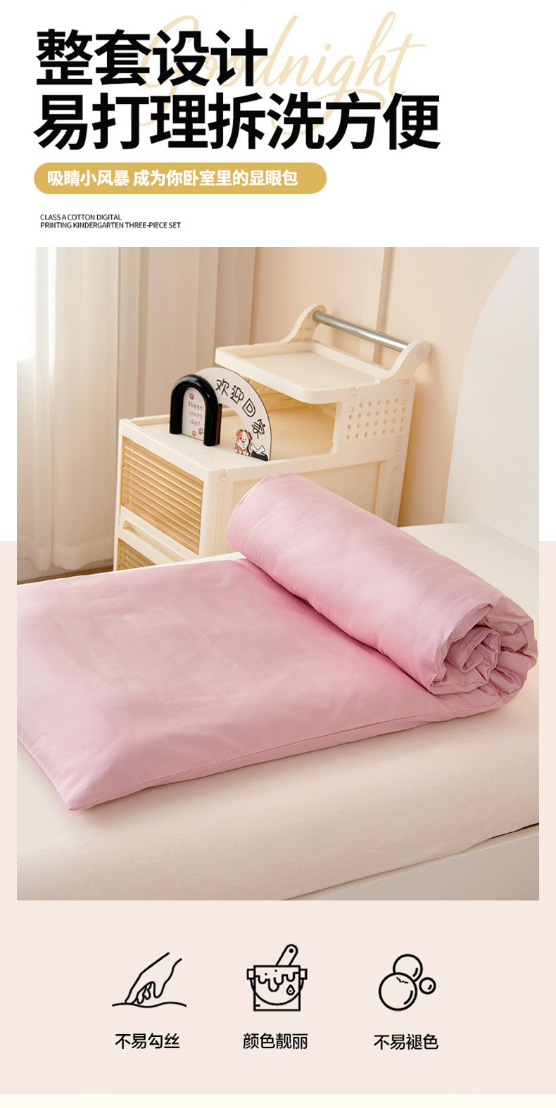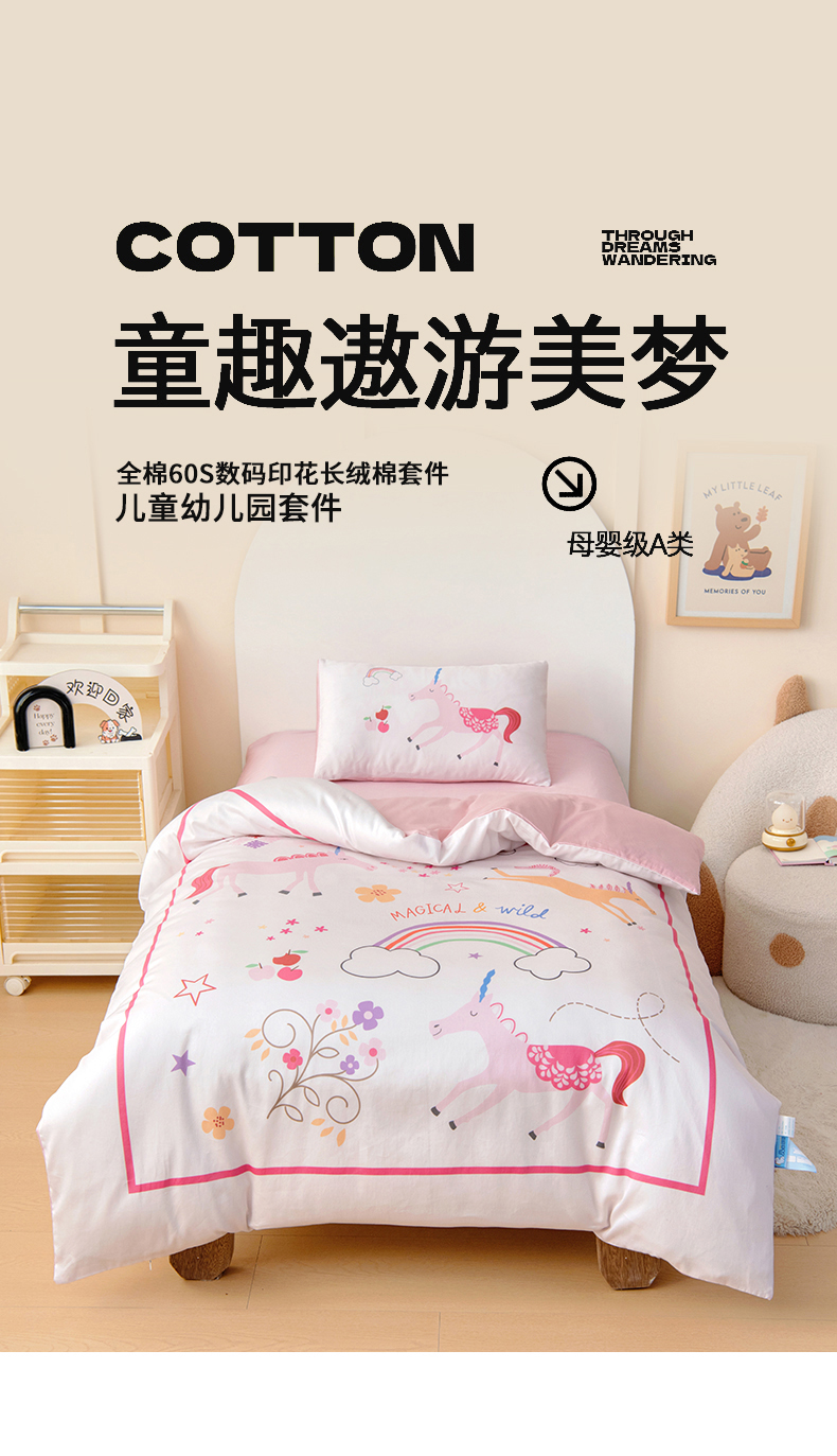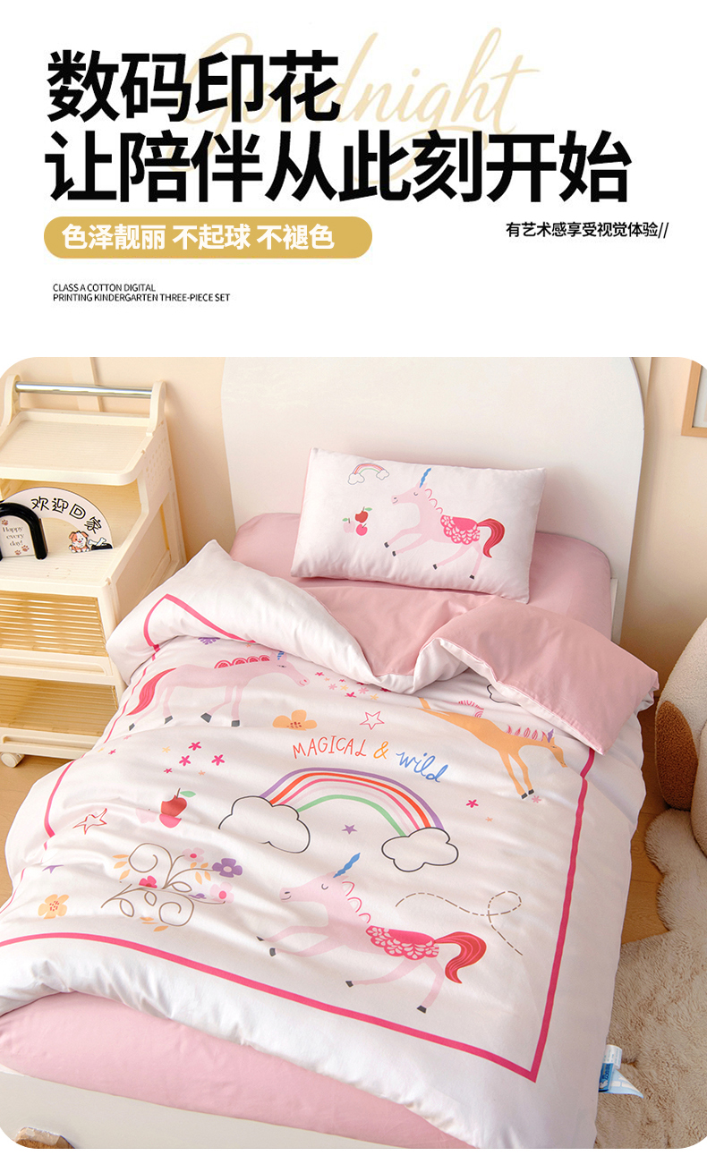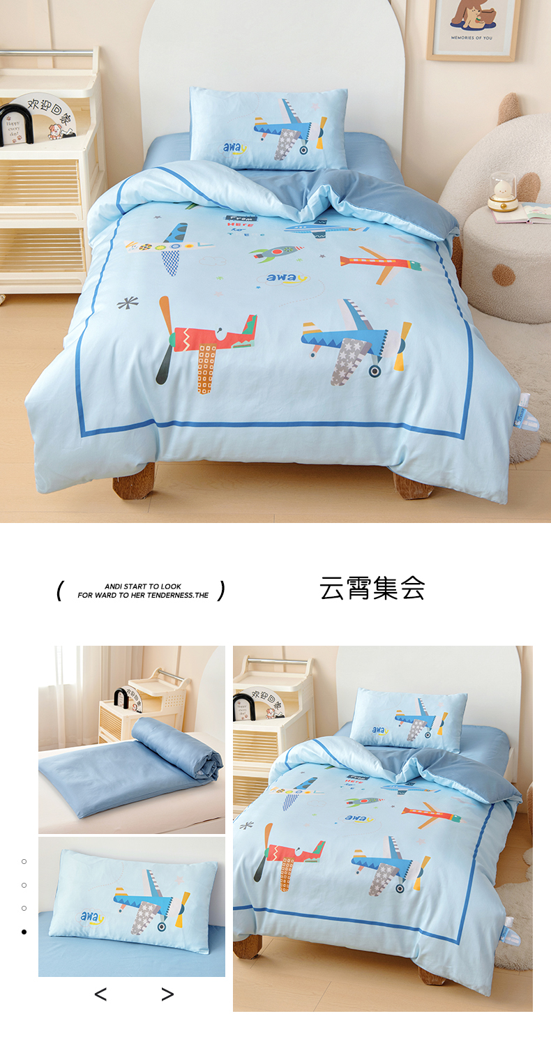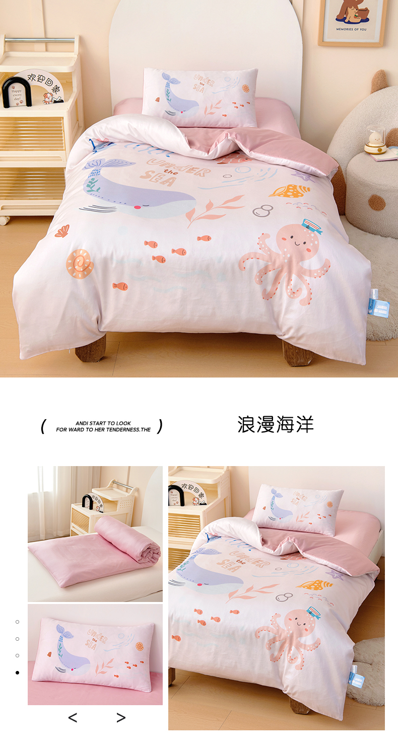 小象咘叮 A类60支全棉纯棉数码印花幼儿园套件 6色可选 宝宝入园午睡被儿童三件套