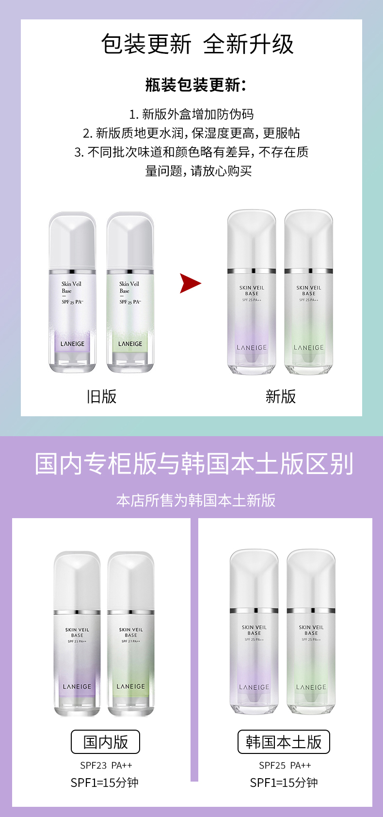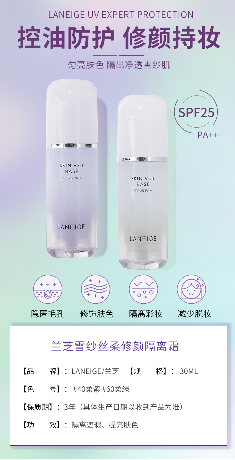 【商超款】韩国Laneige/兰芝雪纱丝柔防晒隔离乳30ml