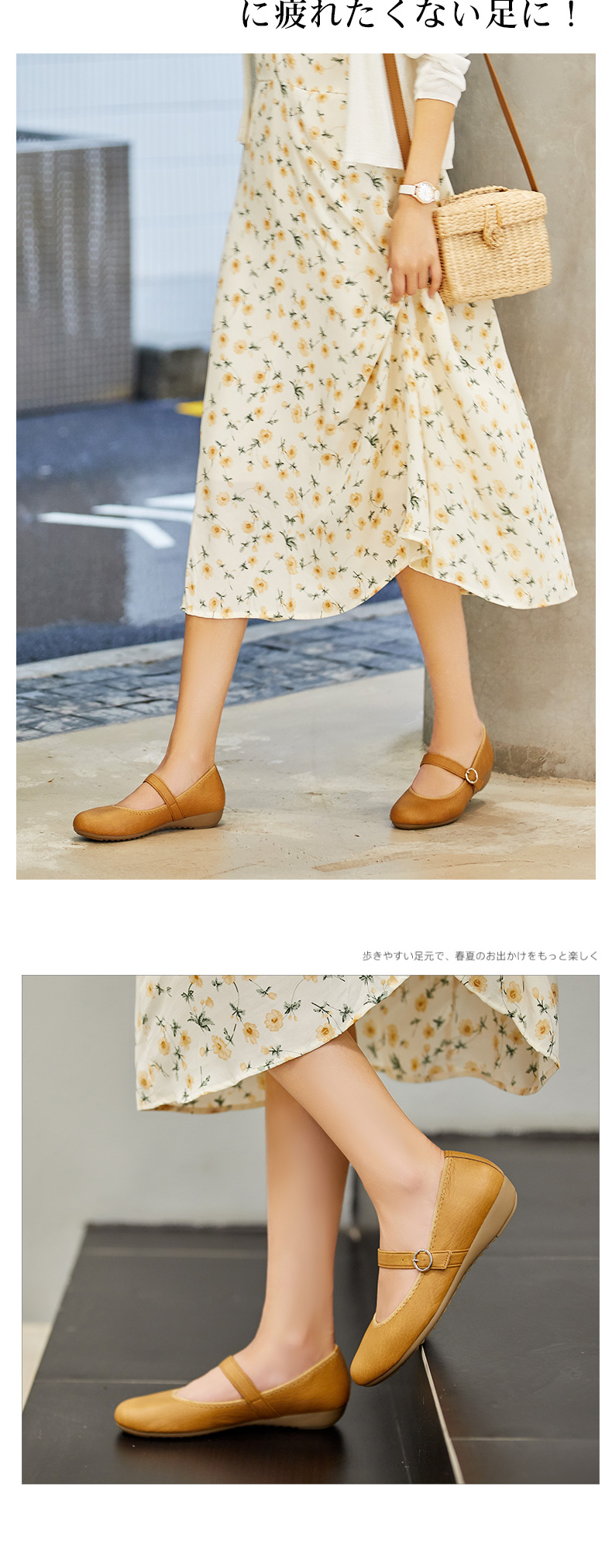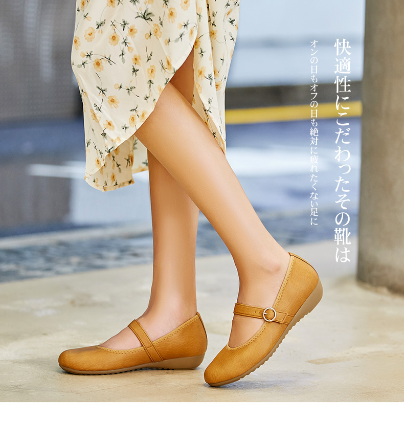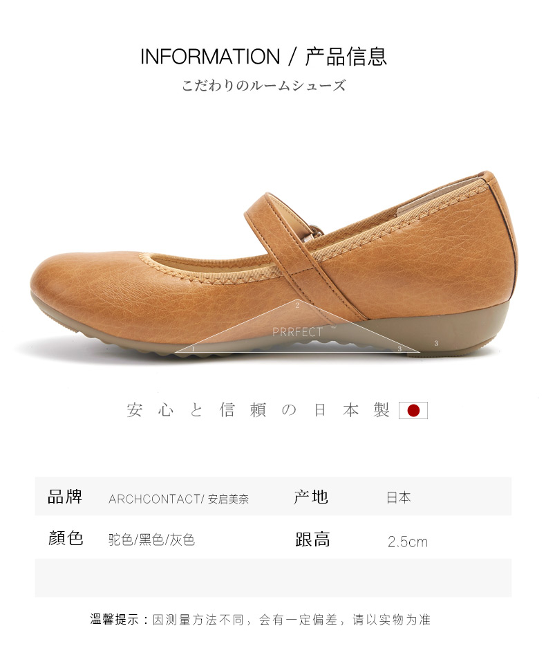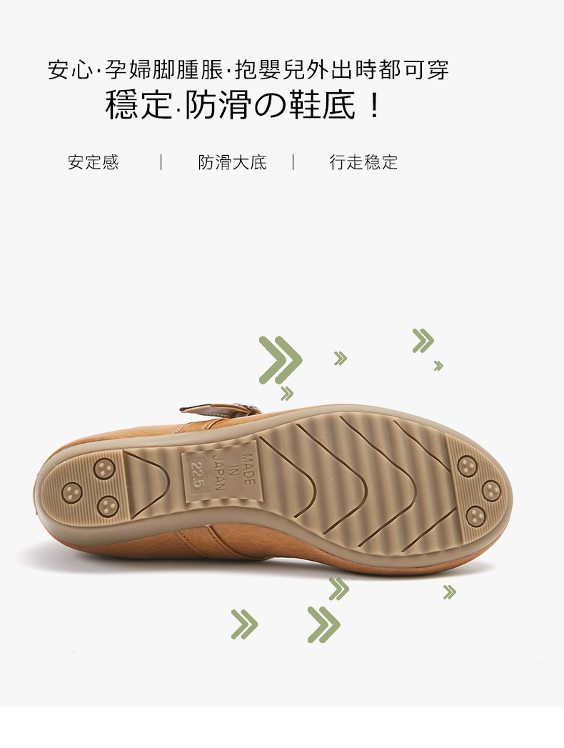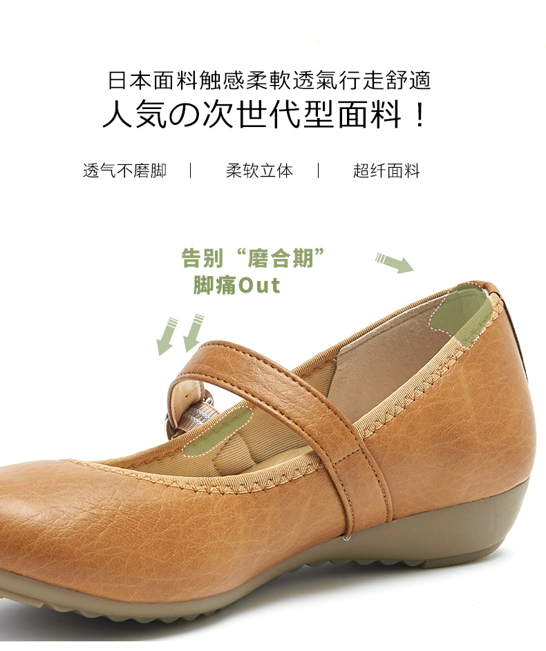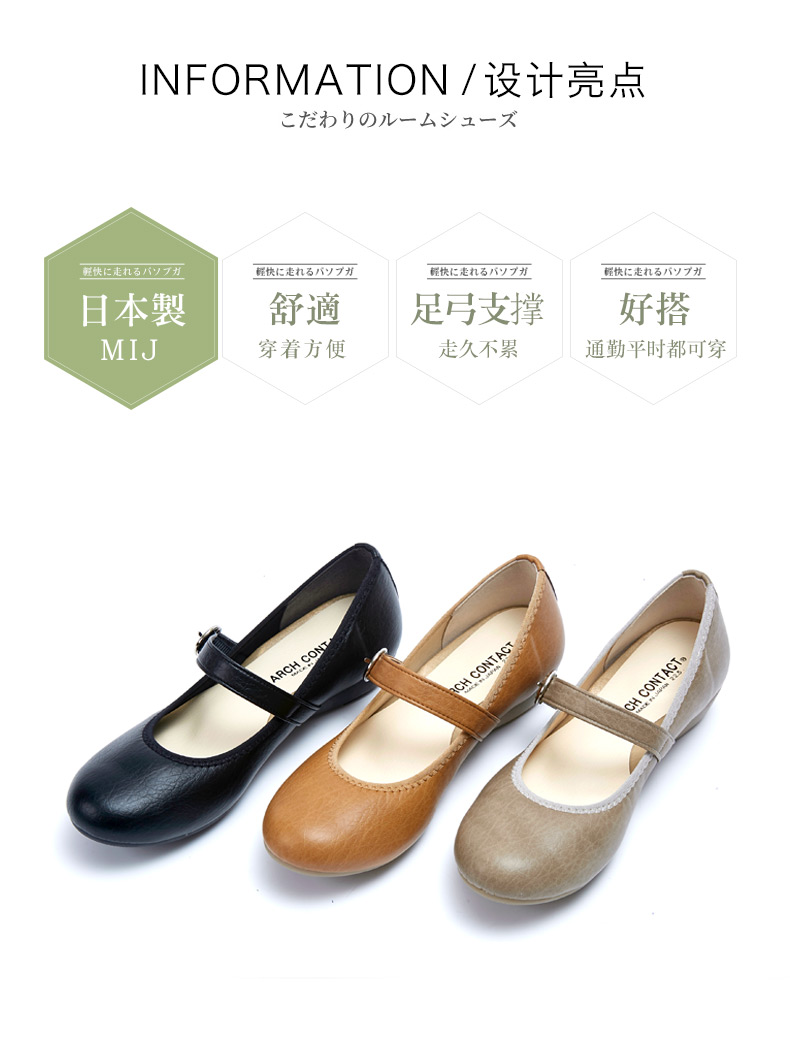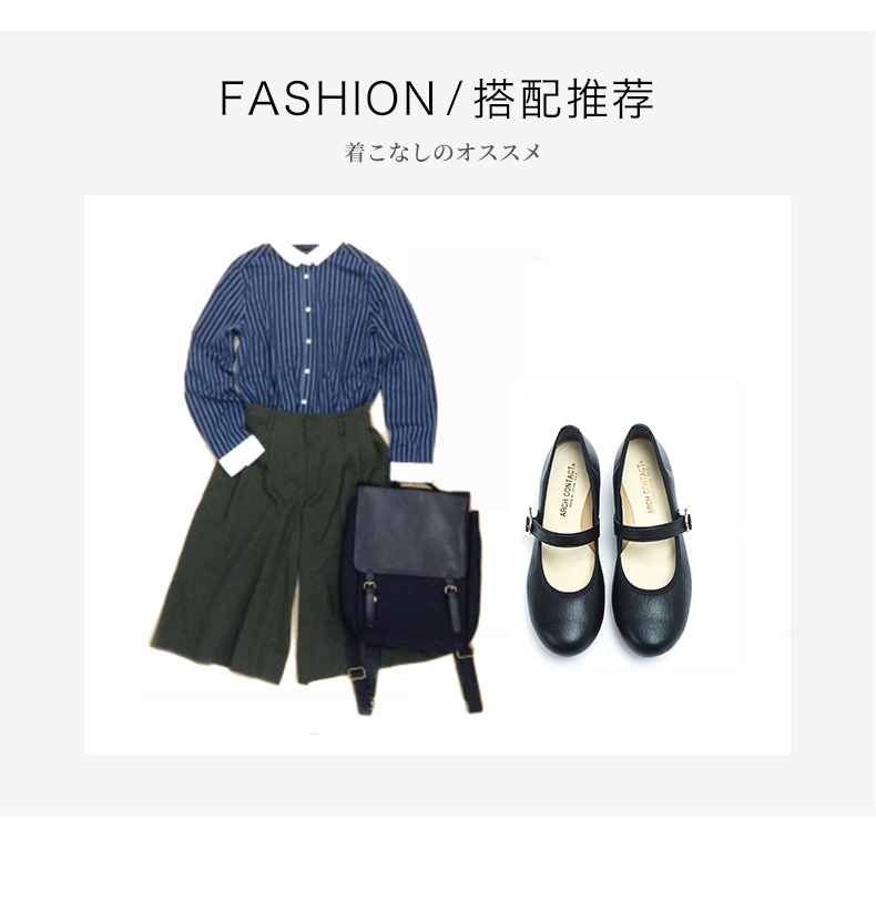 安启美奈日本制单鞋女圆头浅口平底舒适通勤玛丽珍鞋39075