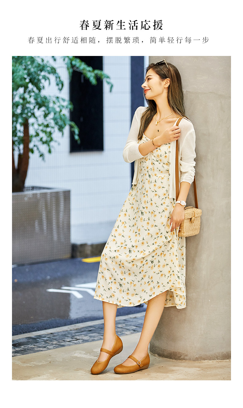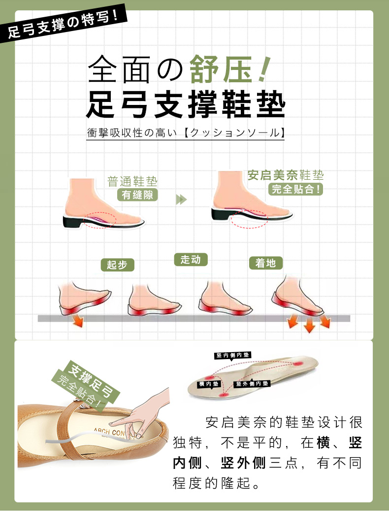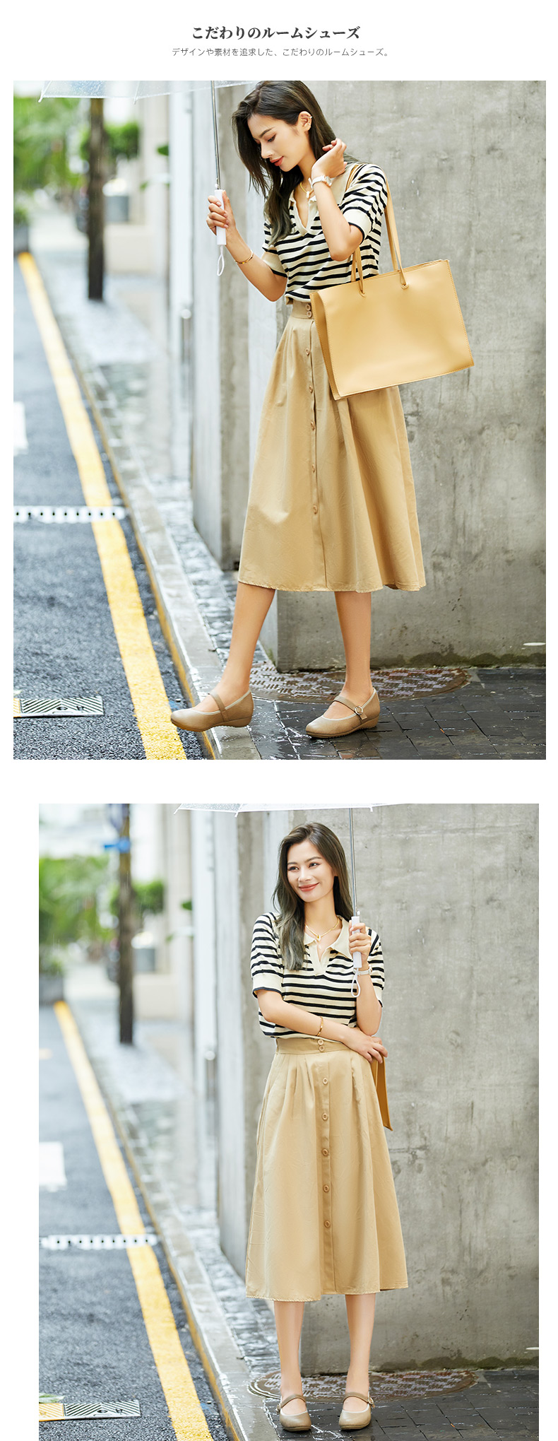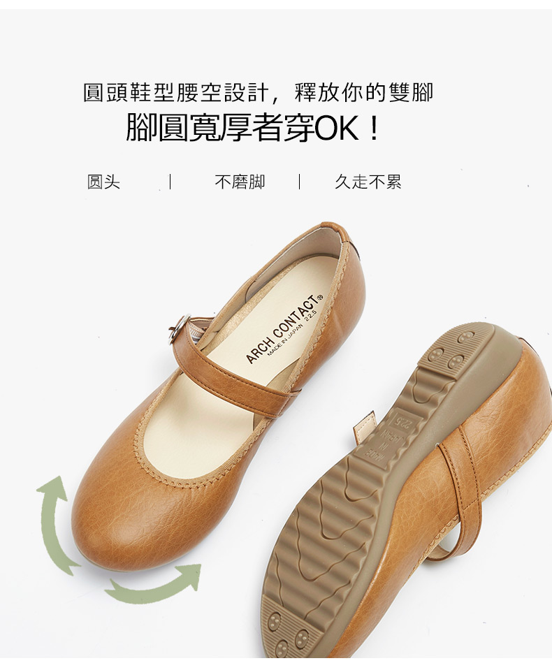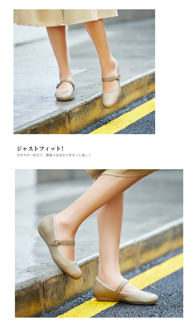 安启美奈日本制单鞋女圆头浅口平底舒适通勤玛丽珍鞋39075
