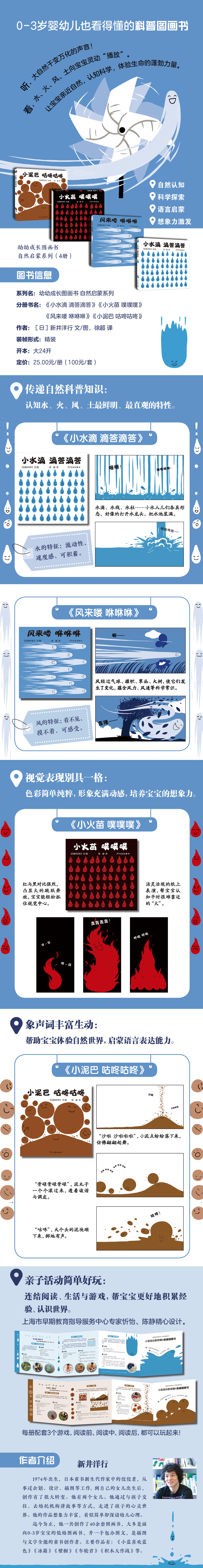 自然启蒙低幼儿童婴幼儿套装共4册 风来喽 咻咻咻/小火苗 噗噗噗/小泥巴 咕咚咕咚/小水滴 滴答滴答绘本图画书 定价100元