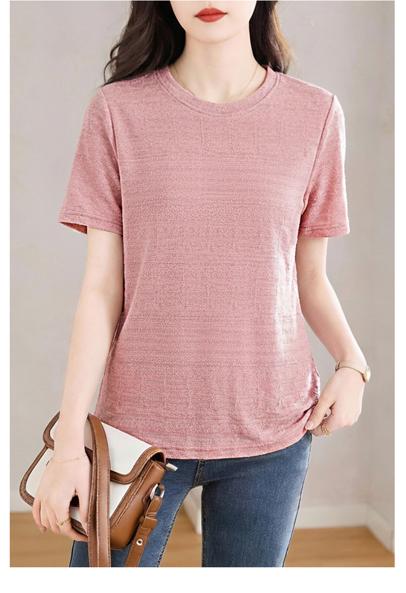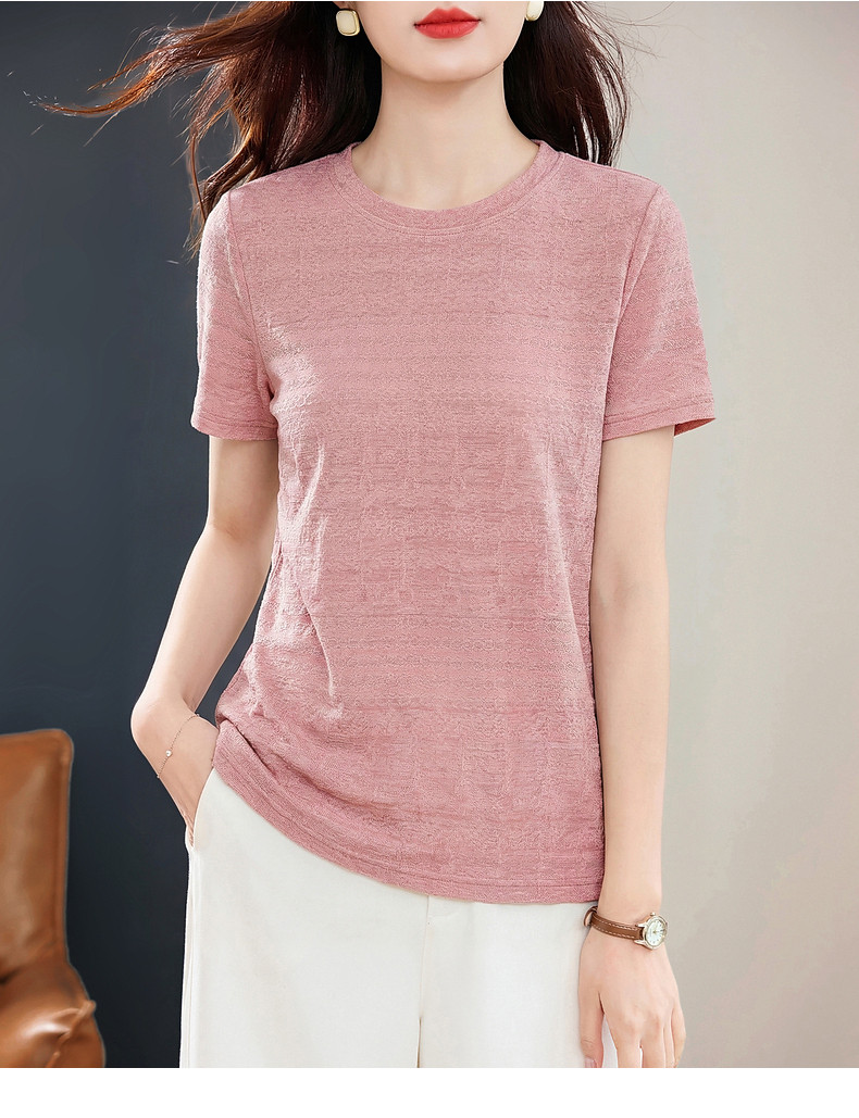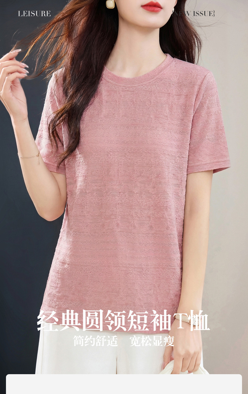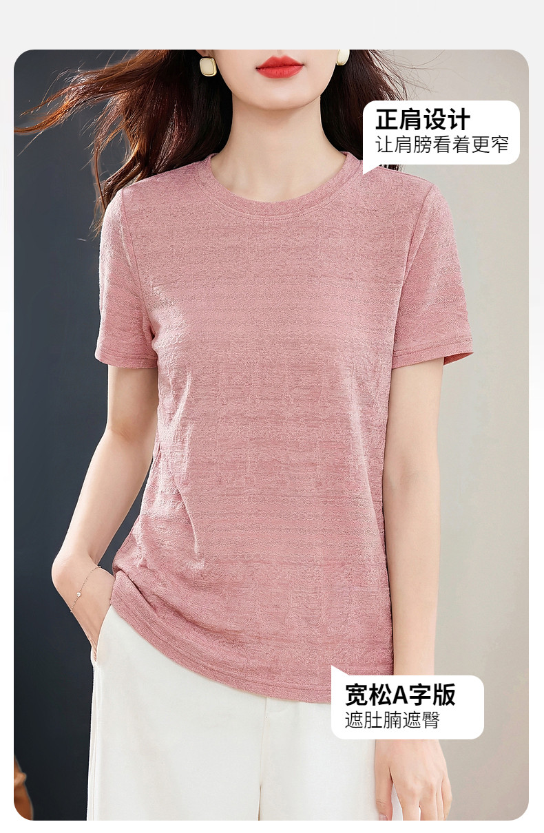 粉色短袖肌理提花T恤女2026夏新款大码女装遮肉显瘦宽松休闲上衣