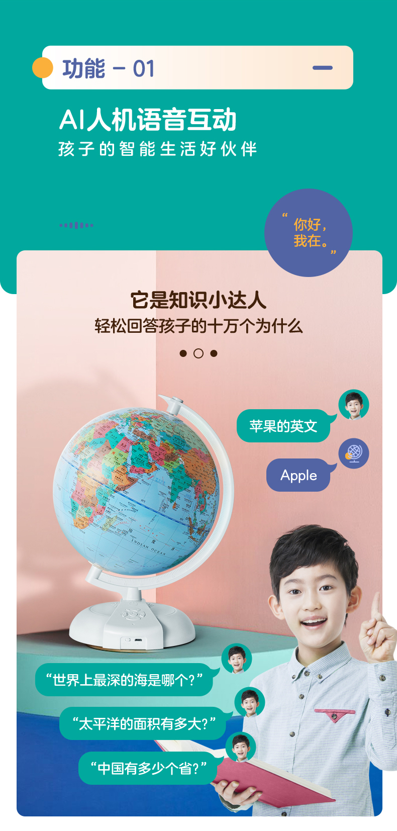 北斗云起AI+AR双智能互动地球仪(1-6年级教材、5万绘本音频)
