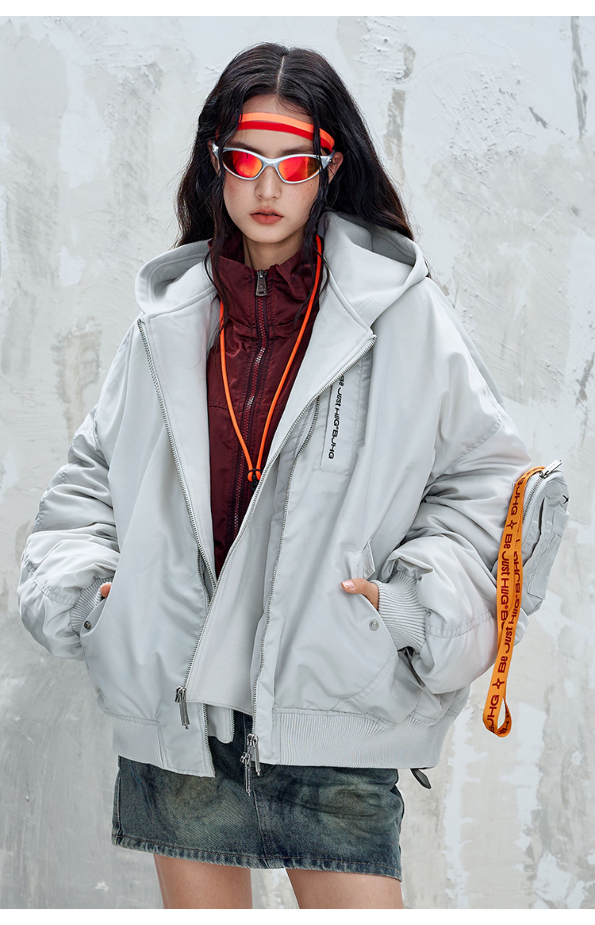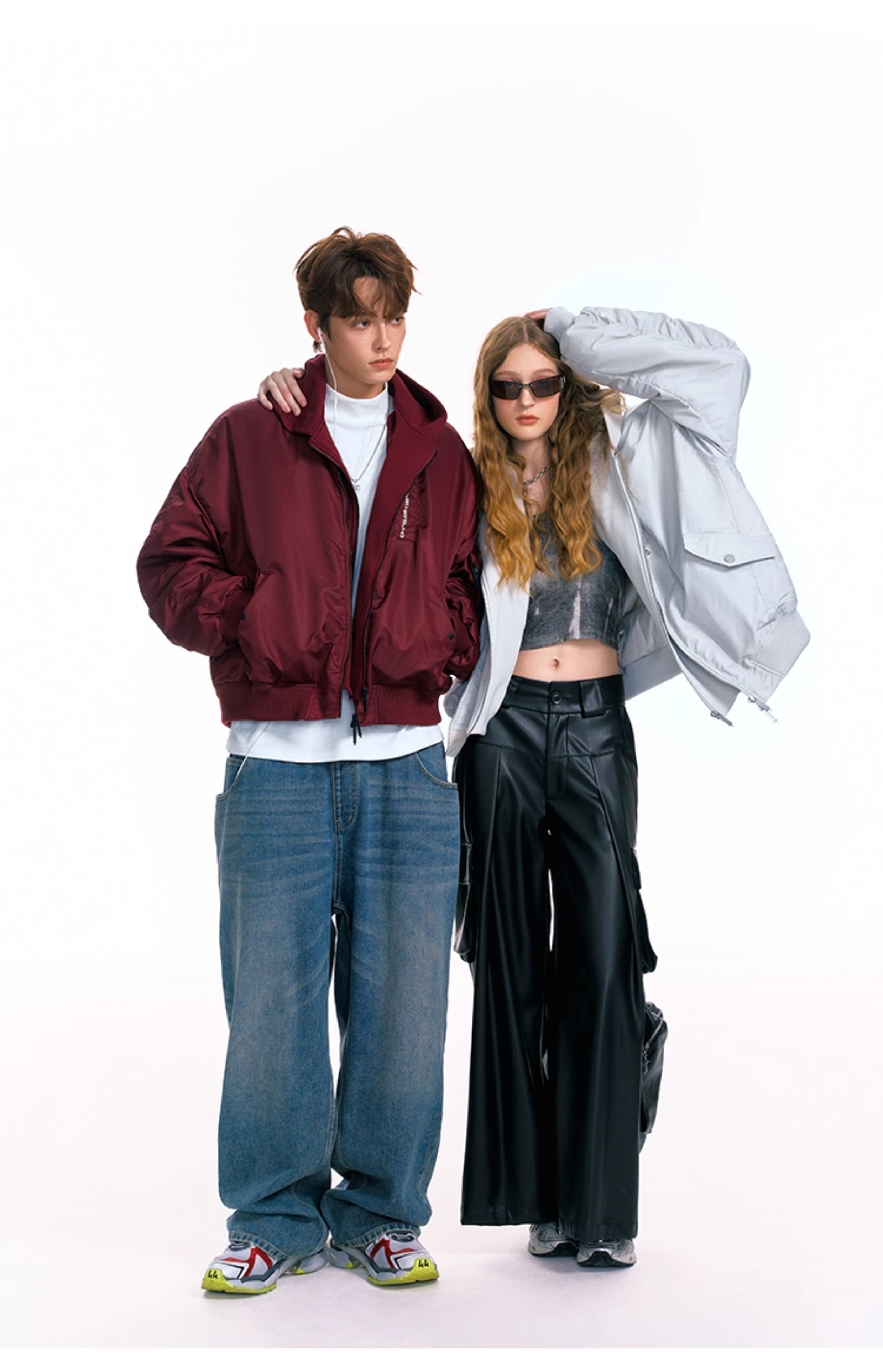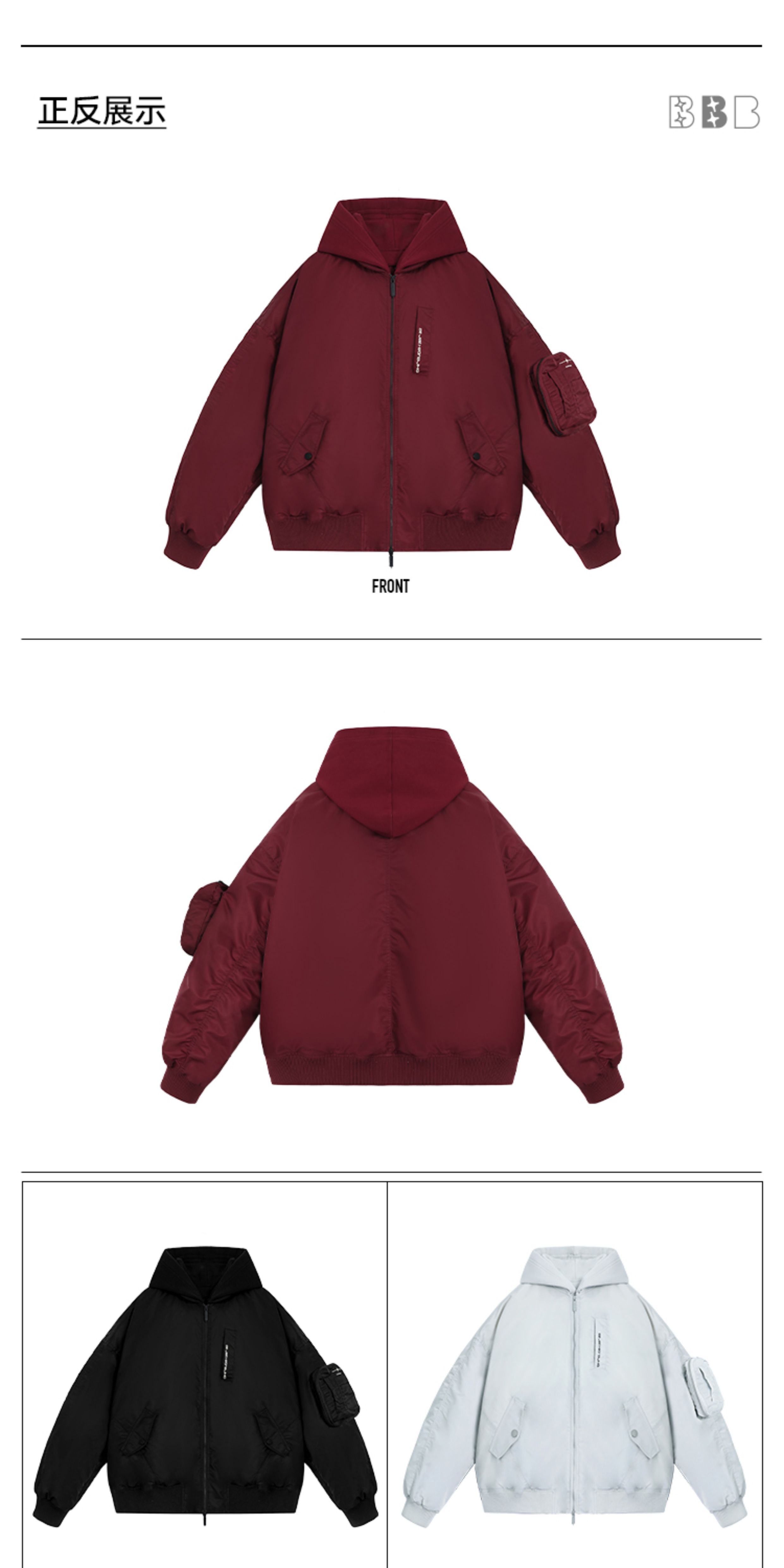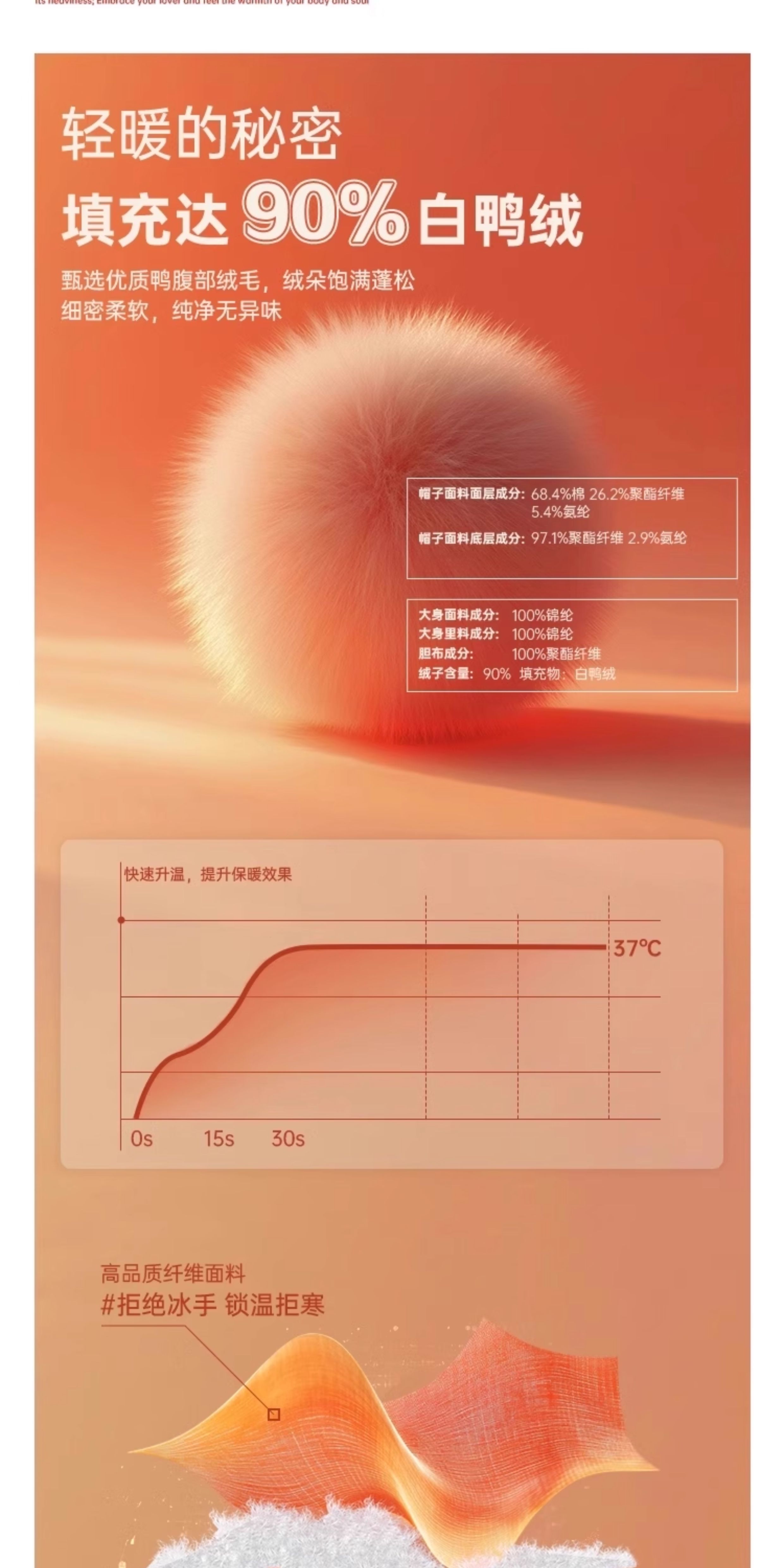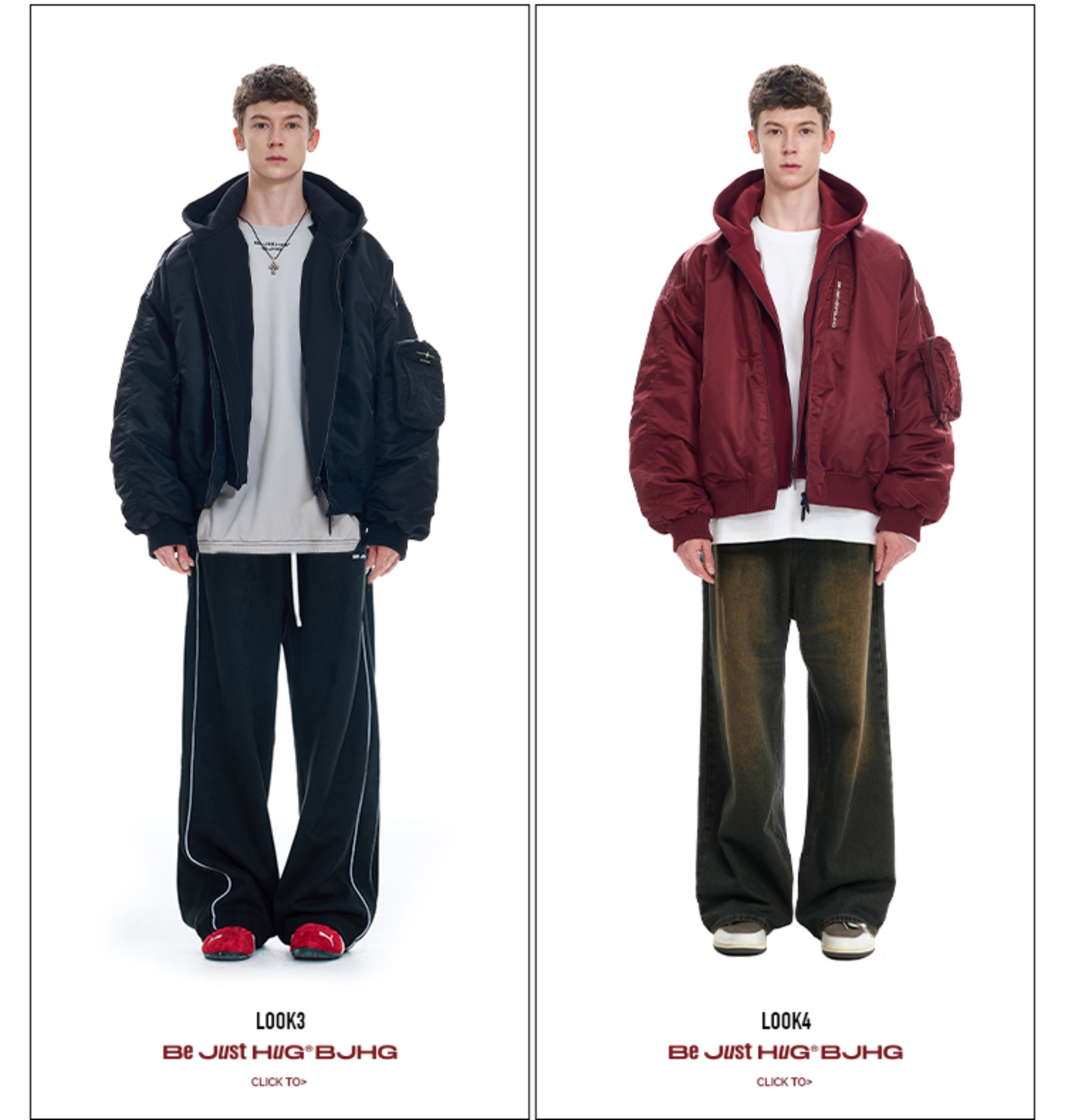 BJHG不计后果假两件羽绒服男女款冬季外套红色90白鸭绒棒球羽绒服