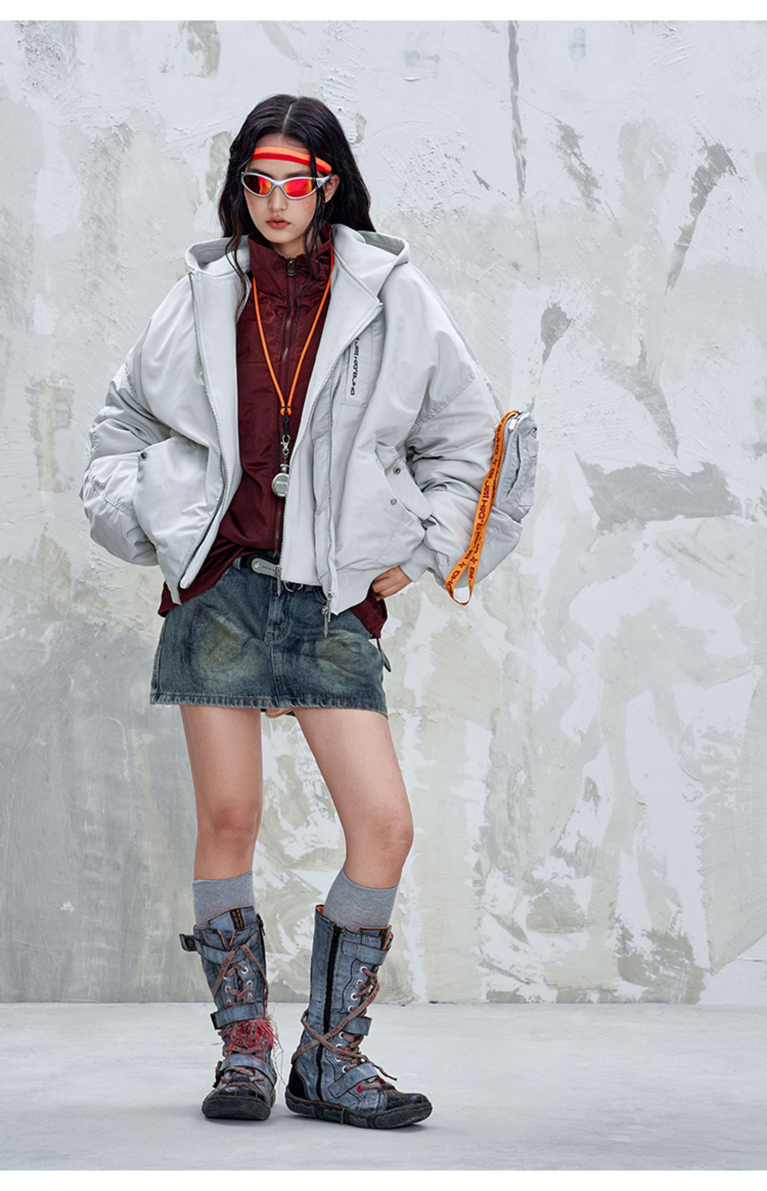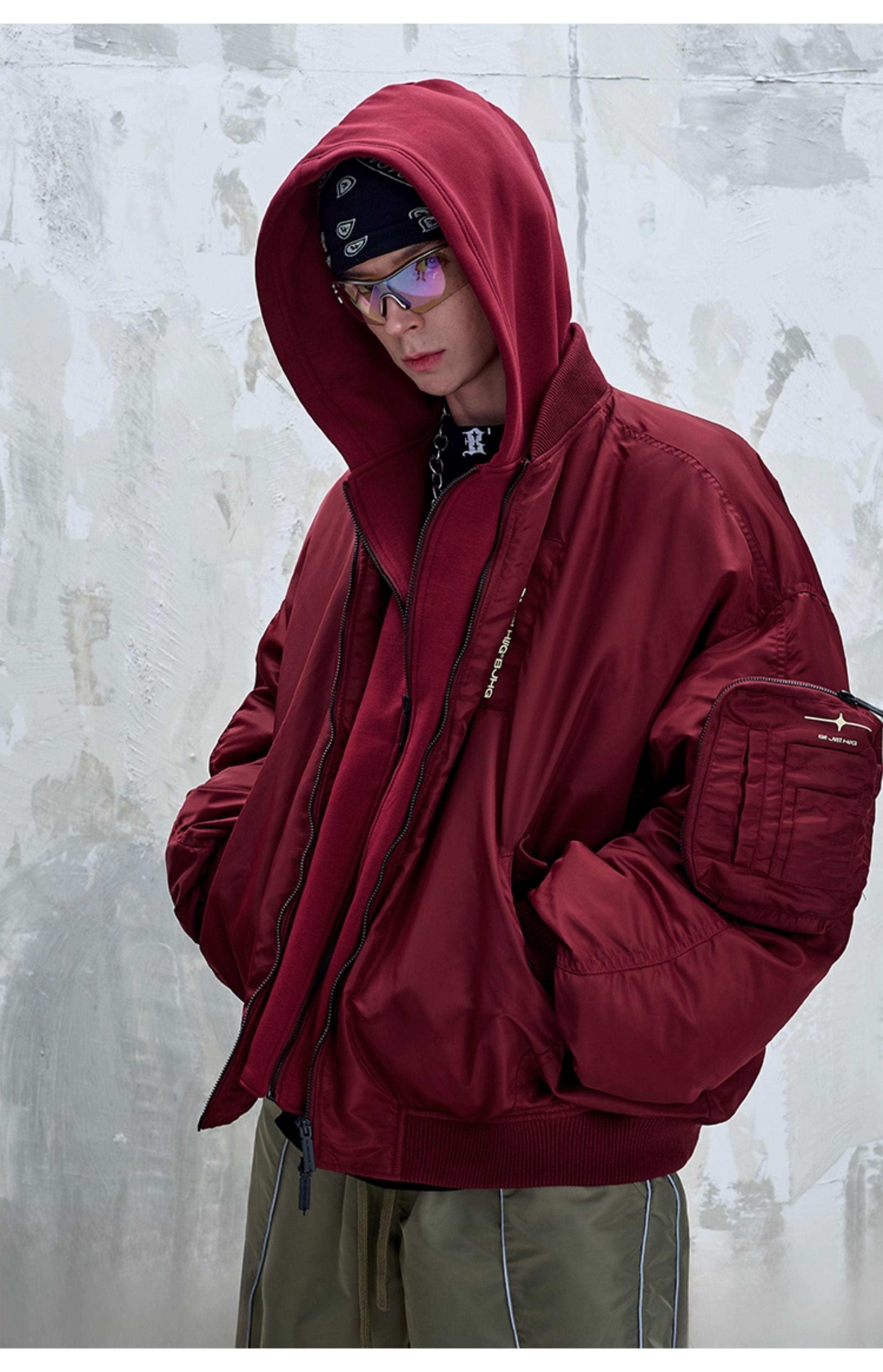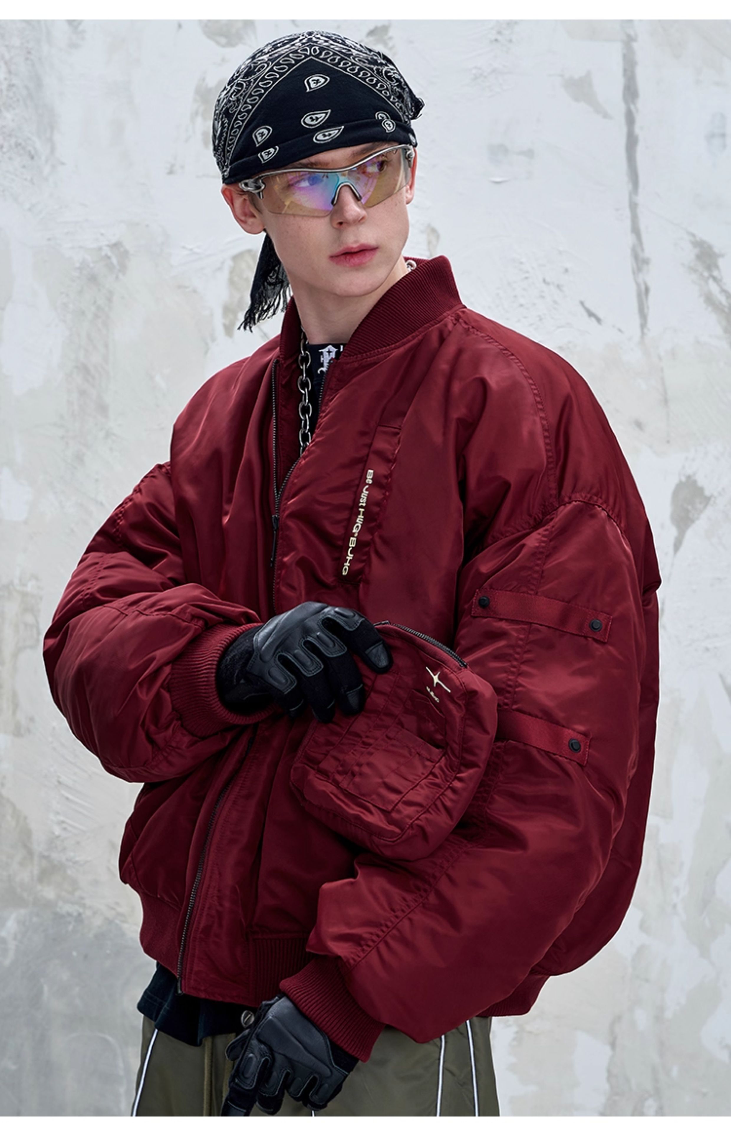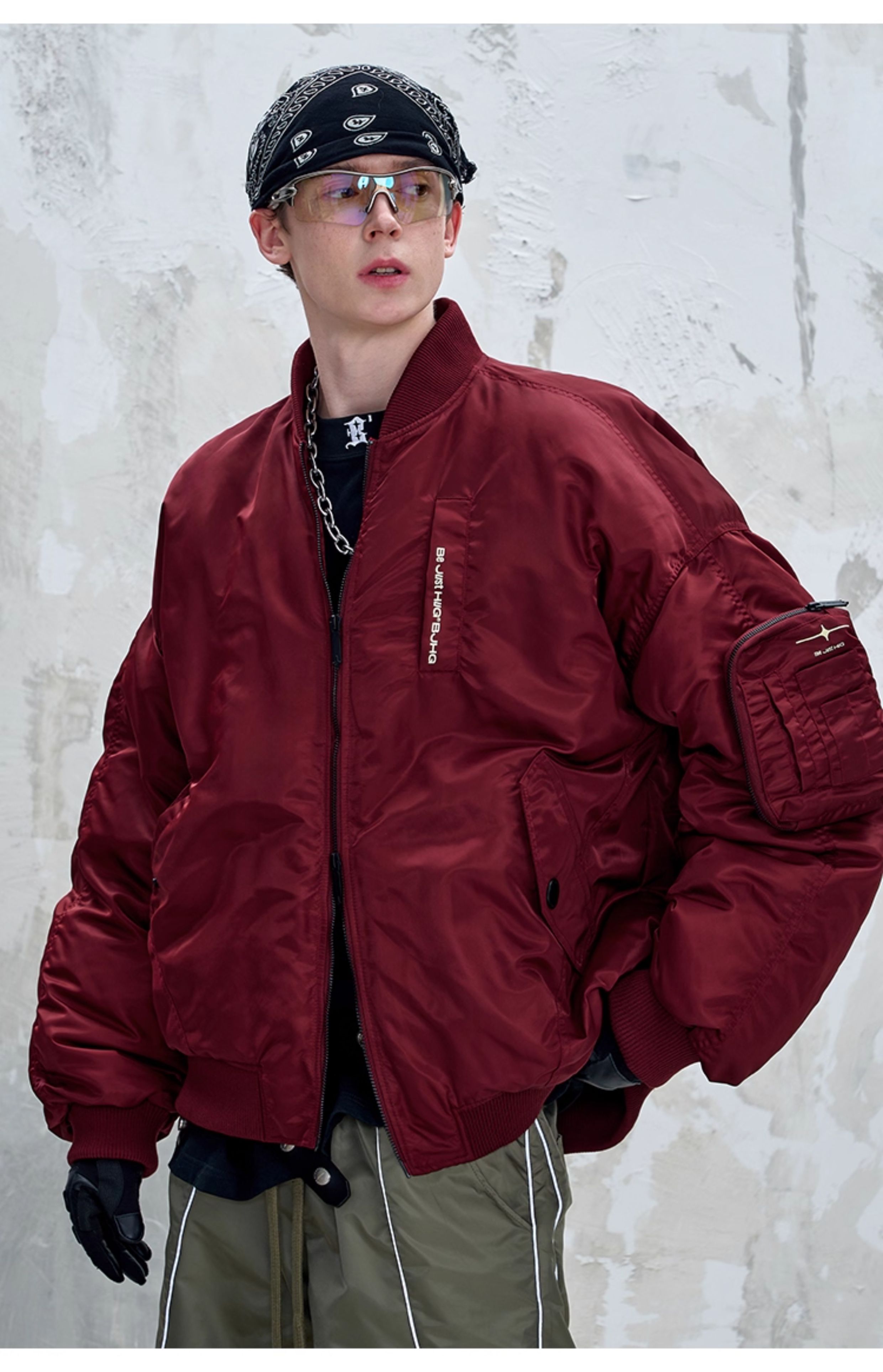 BJHG不计后果假两件羽绒服男女款冬季外套红色90白鸭绒棒球羽绒服