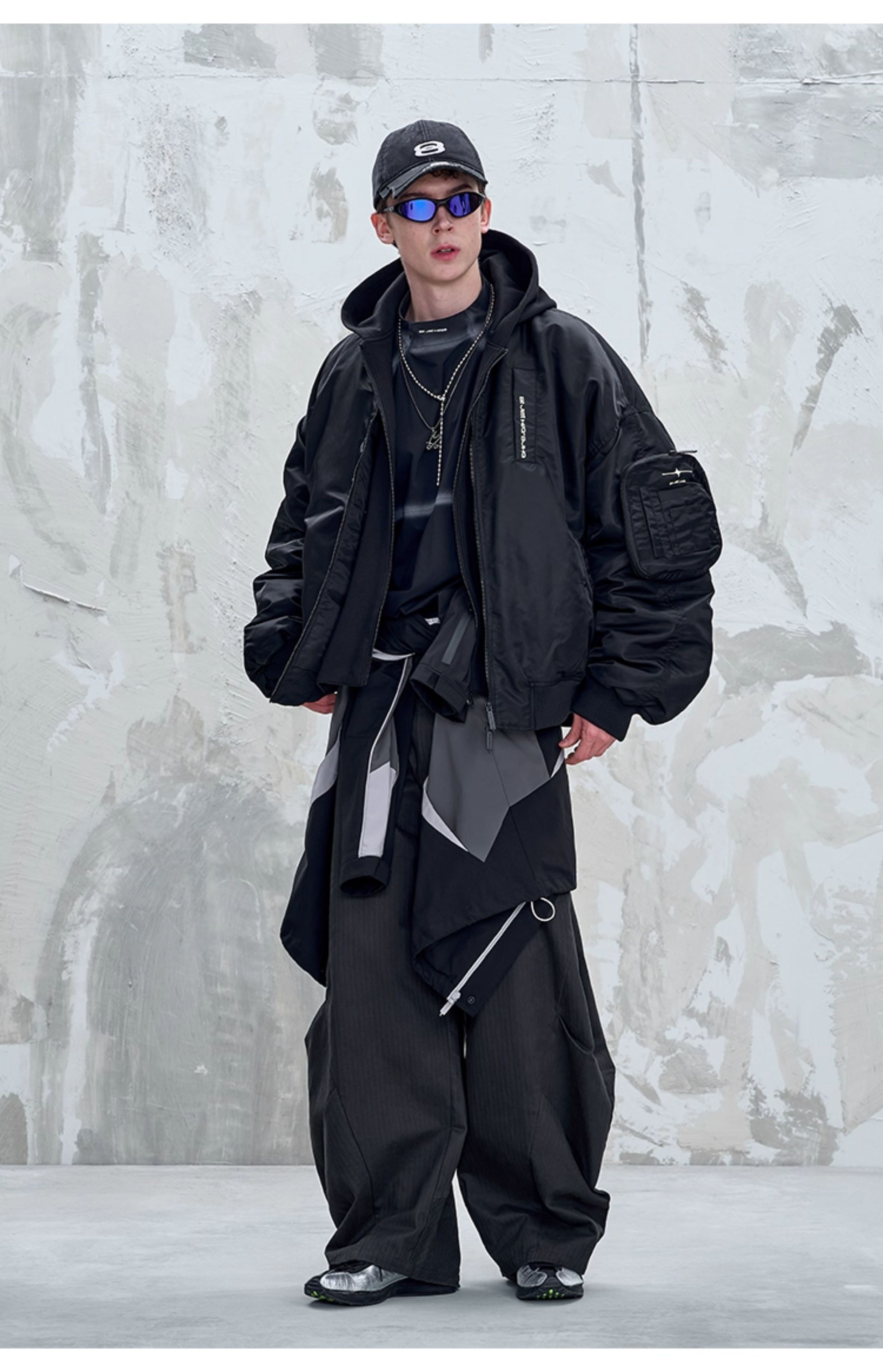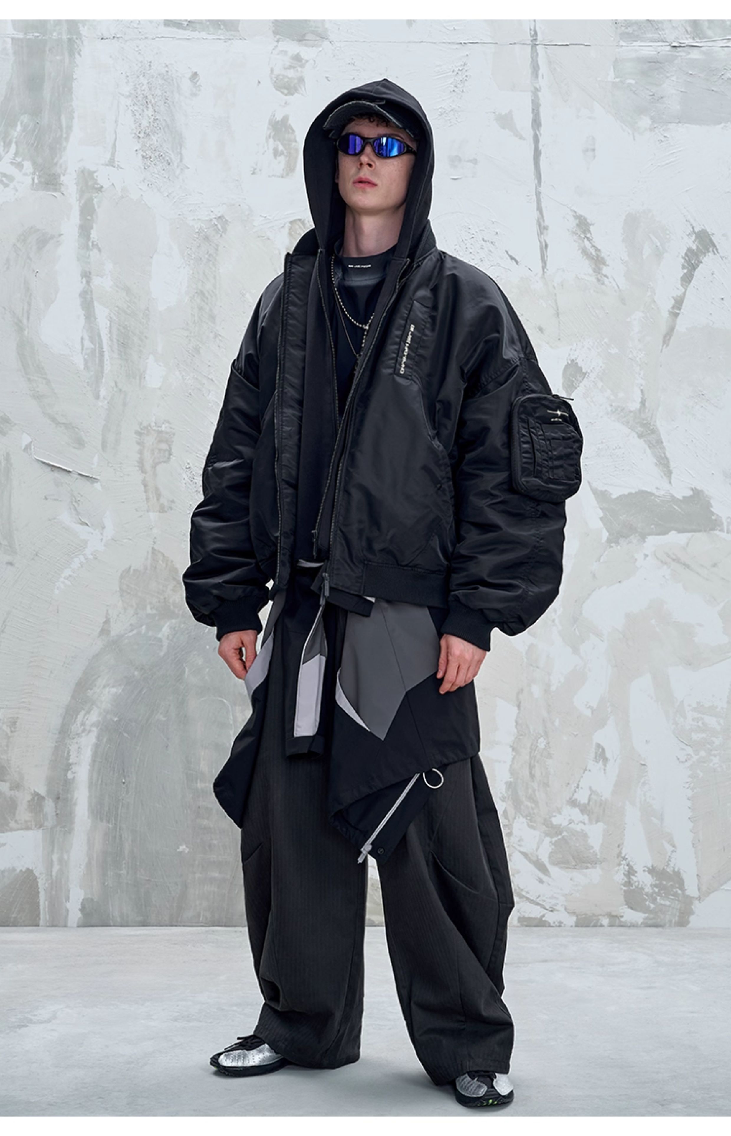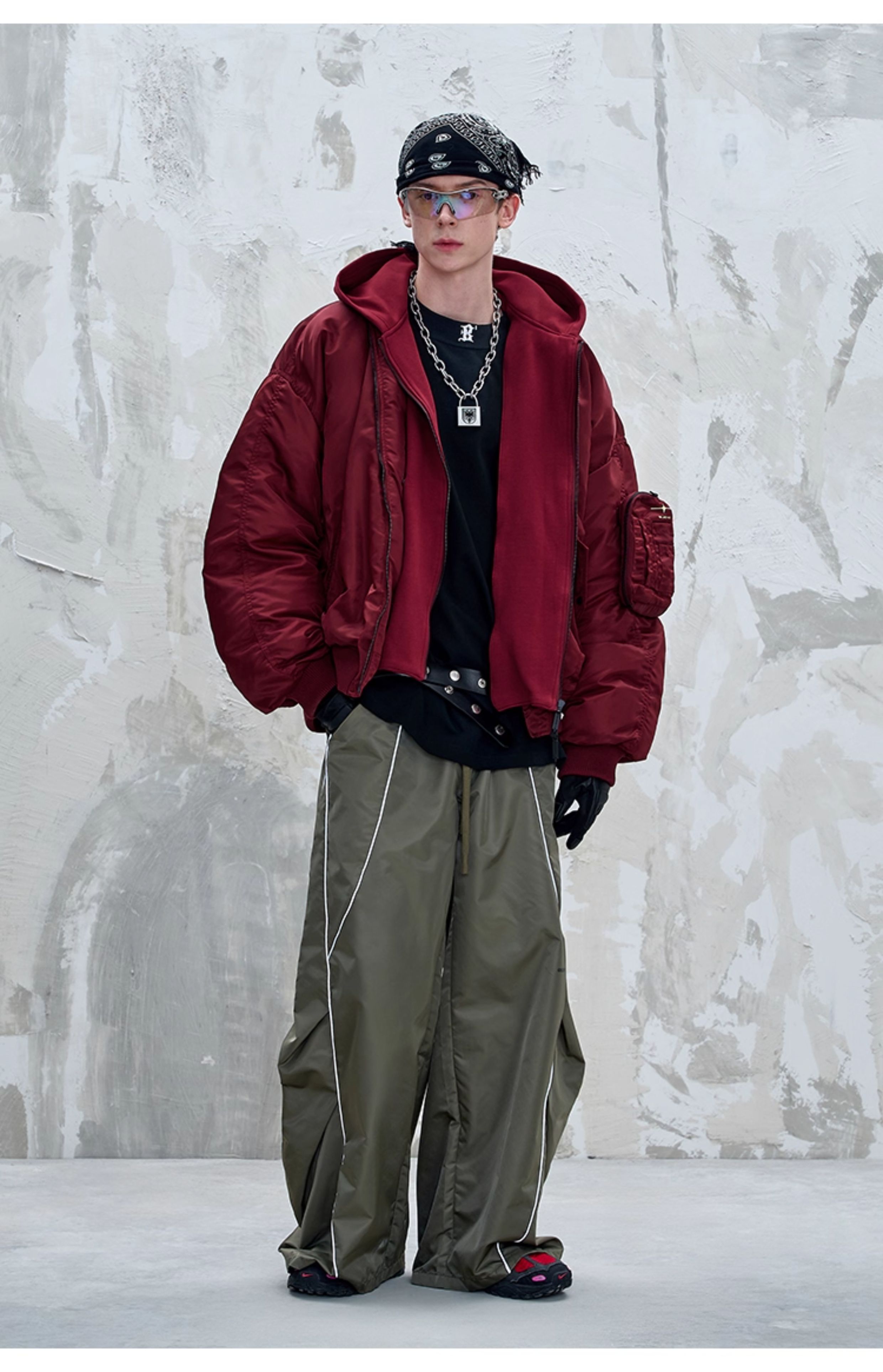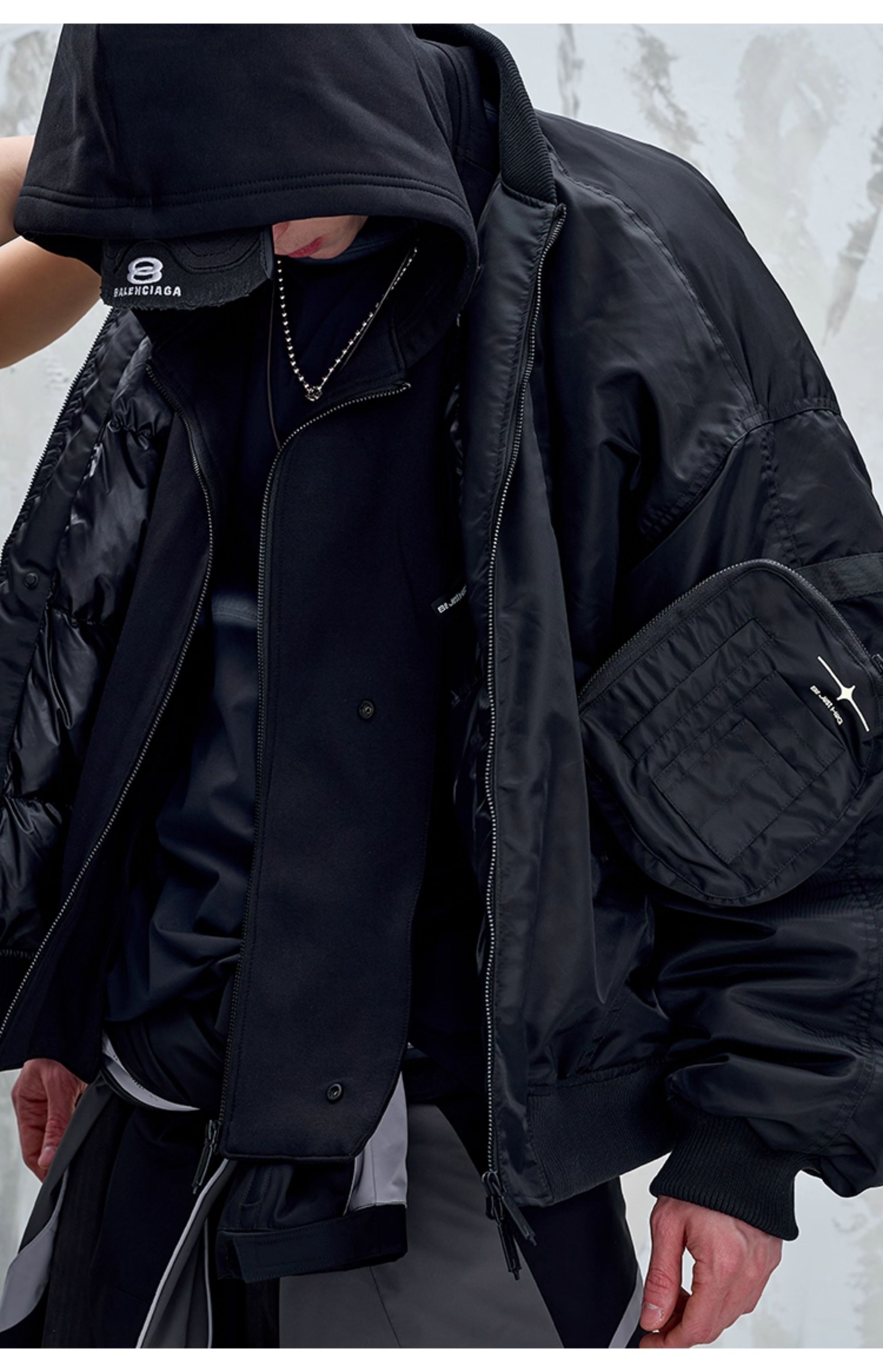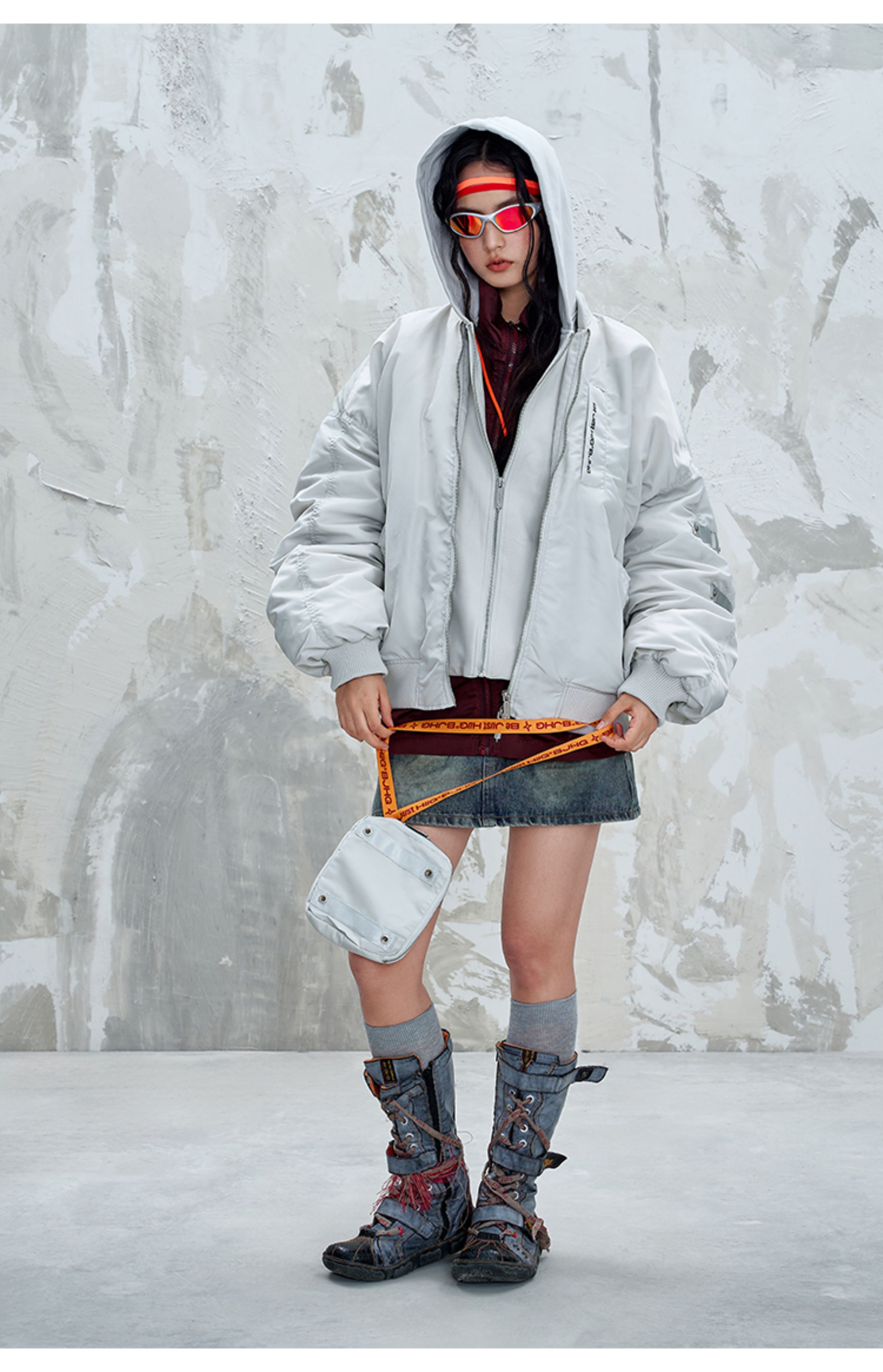 BJHG不计后果假两件羽绒服男女款冬季外套红色90白鸭绒棒球羽绒服