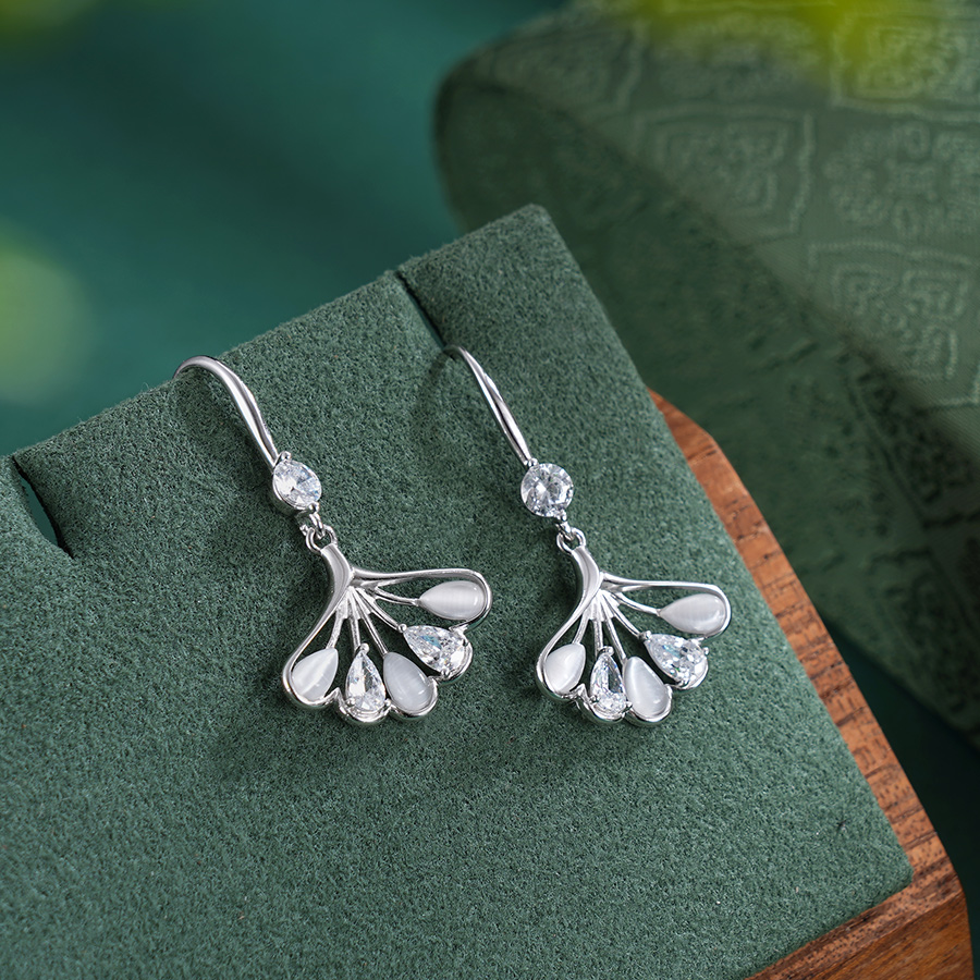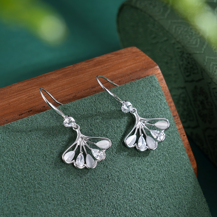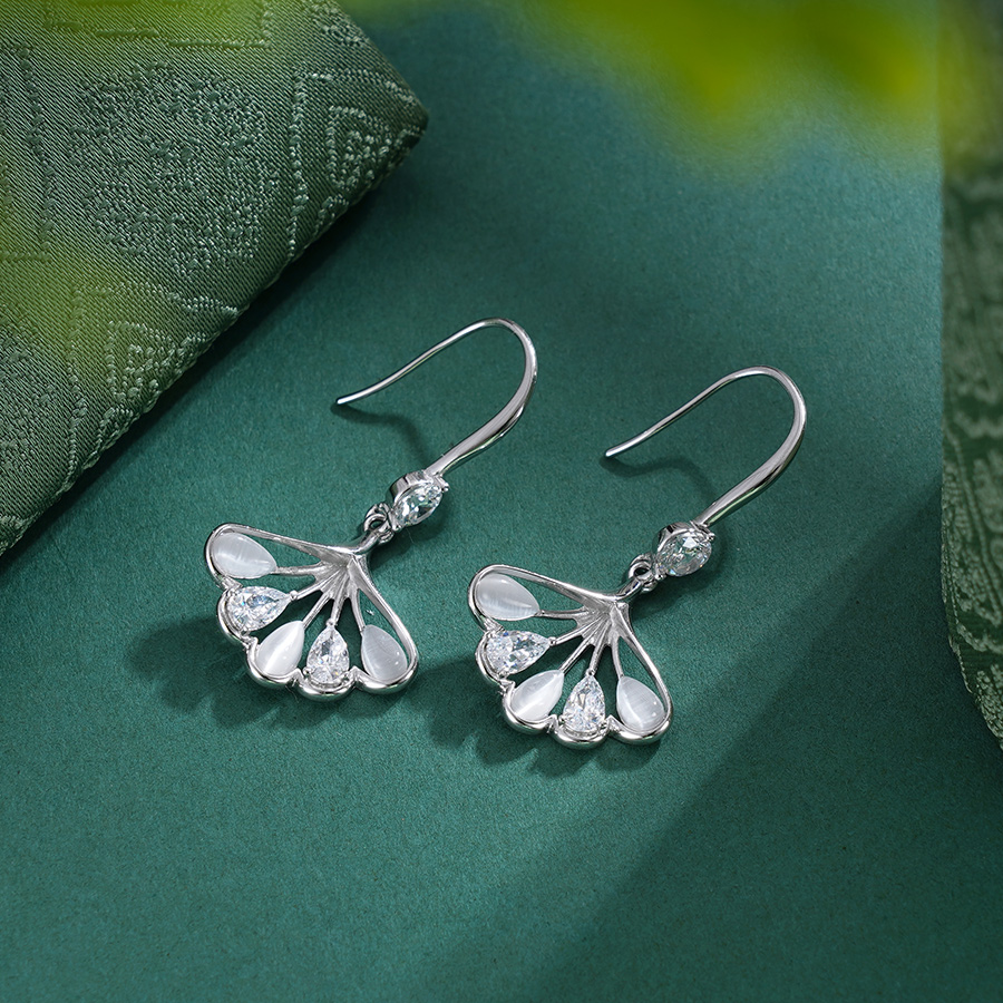 【寓意】:作品灵感源自飞扬的裙摆,点缀猫眼石,对称设计,精致耐看。行走时光影随步摇曳,自成曼妙光景。