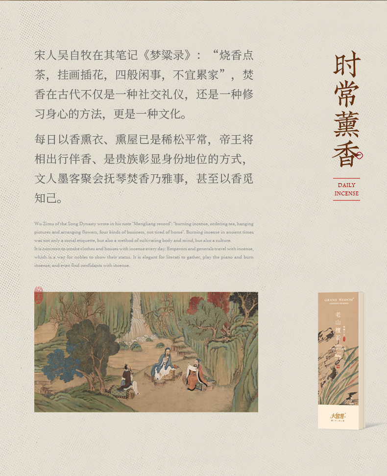 - 以沉香为媒,大智慧沉香述说中国人香事生活中的美与智慧。 将沉香与生俱来的雅与趣、净美的生活禅意, 融入现代人的生活场景。