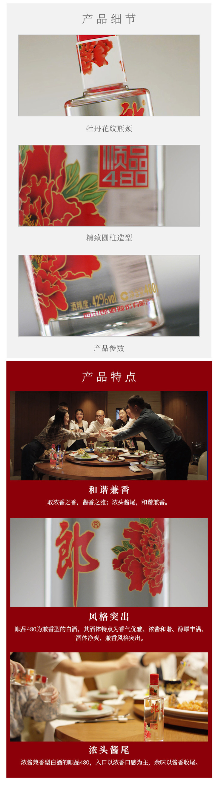 郎酒顺品郎红顺480浓酱兼香纯粮白酒42° 480mL/瓶