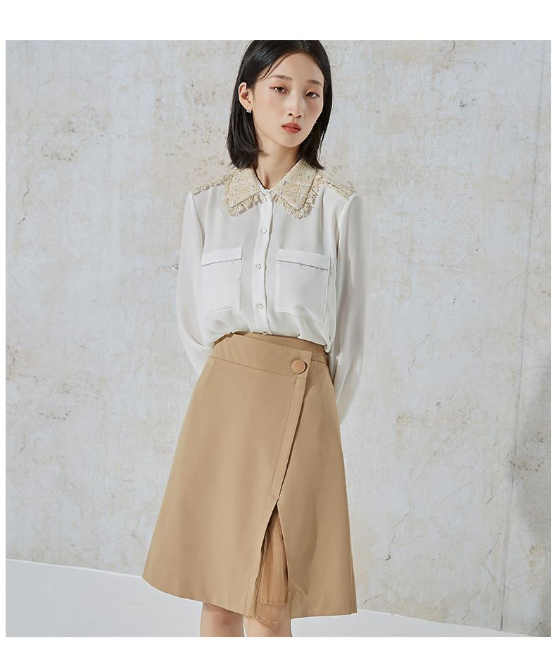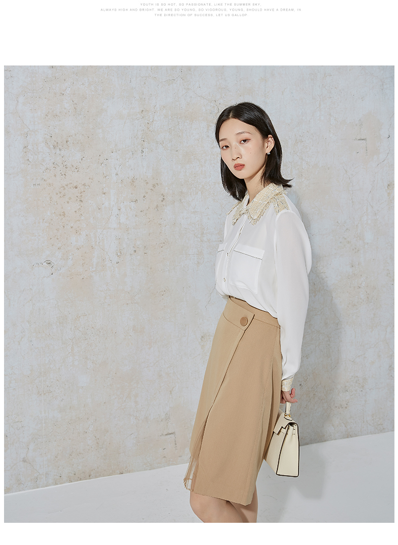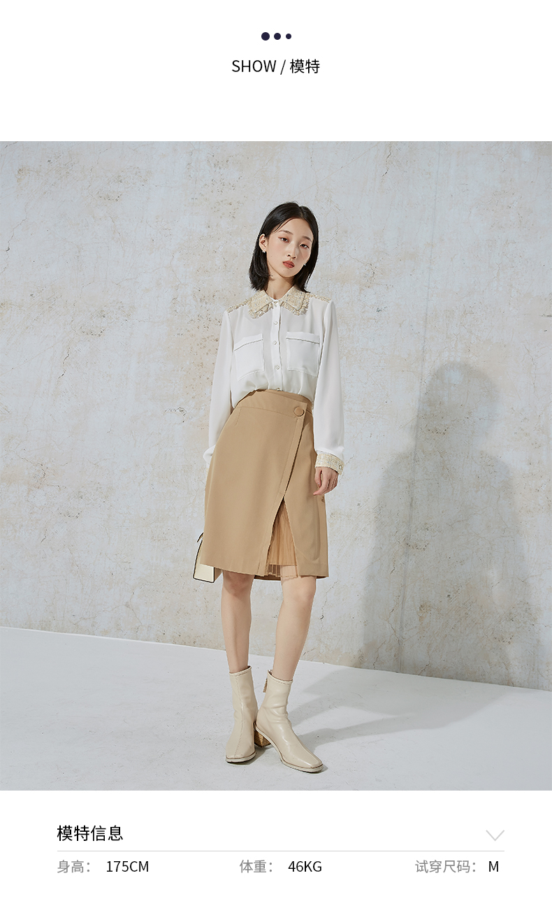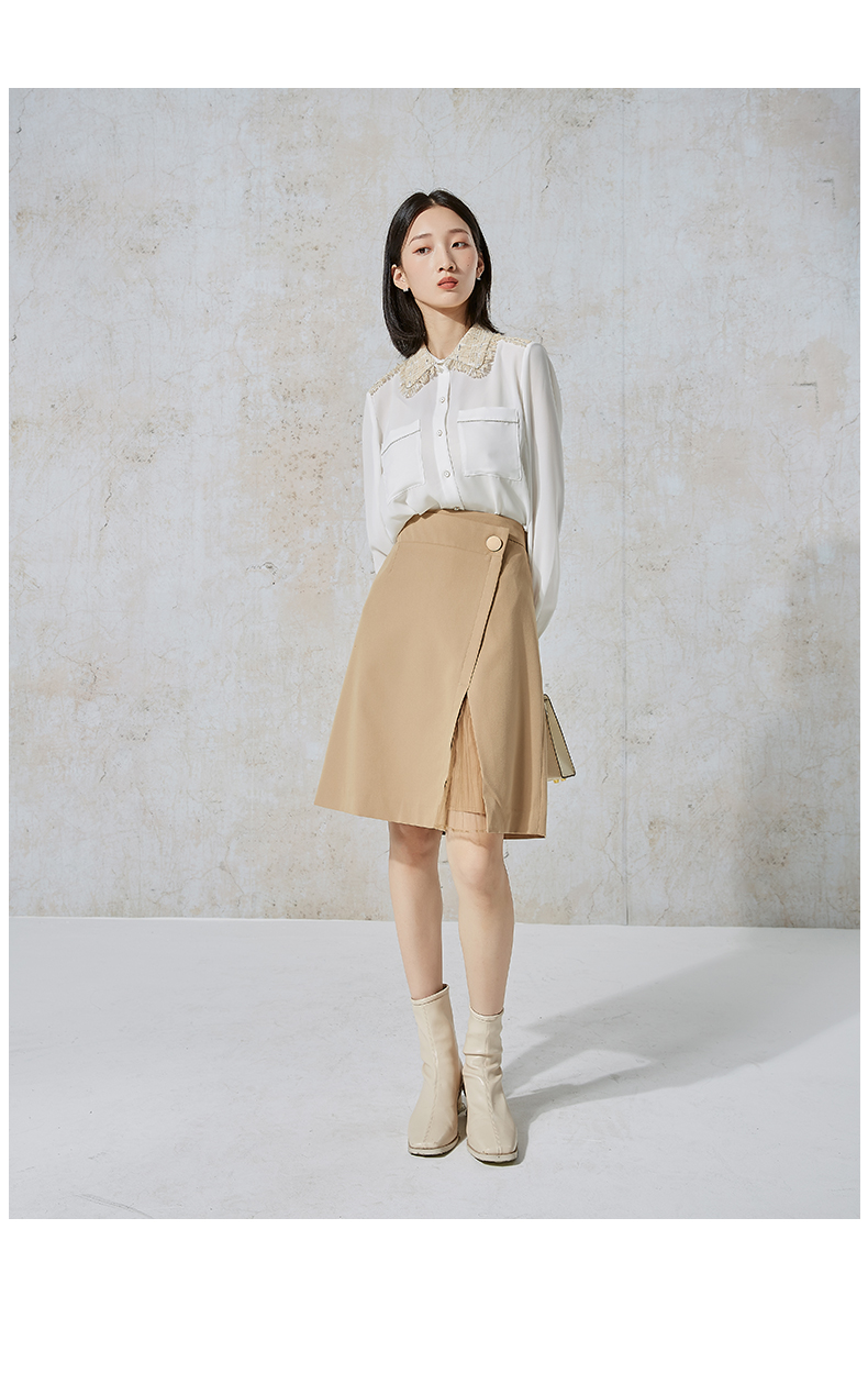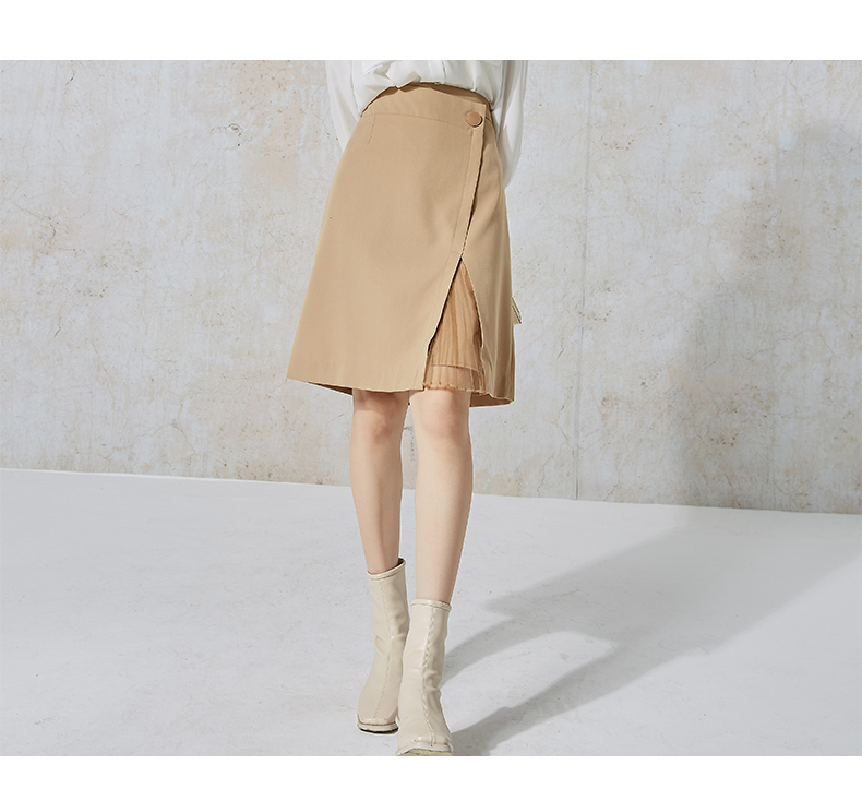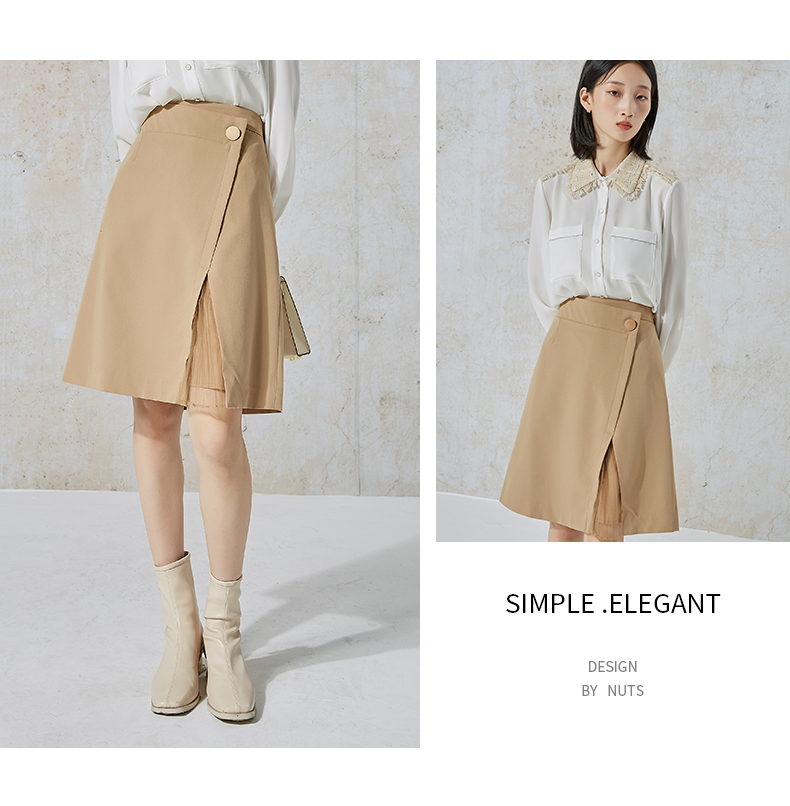 NUTS秋季新款时尚气质通勤风百搭开叉设计感半身中裙女231062068B