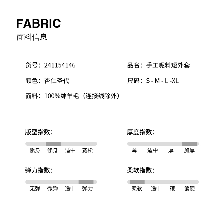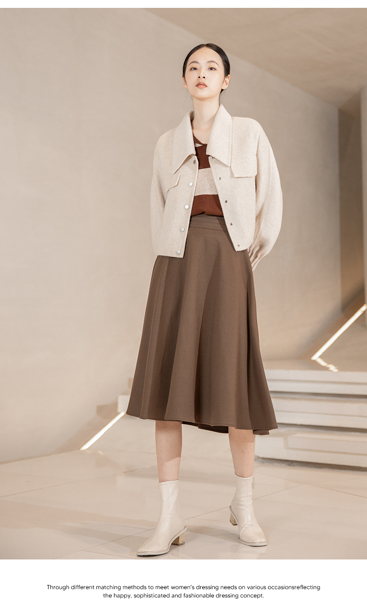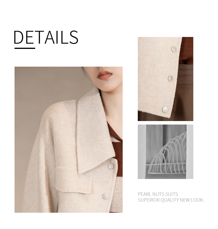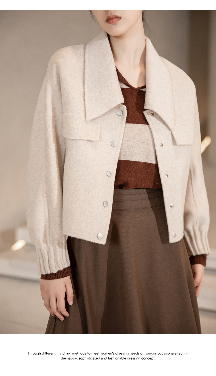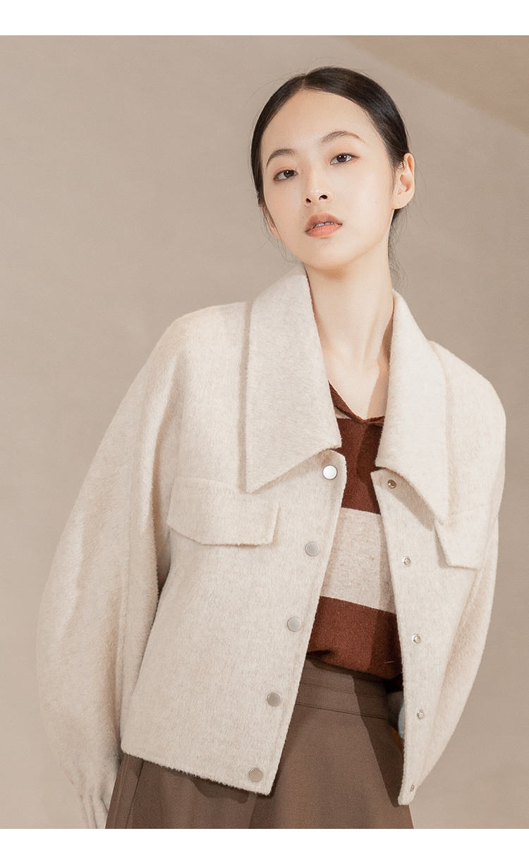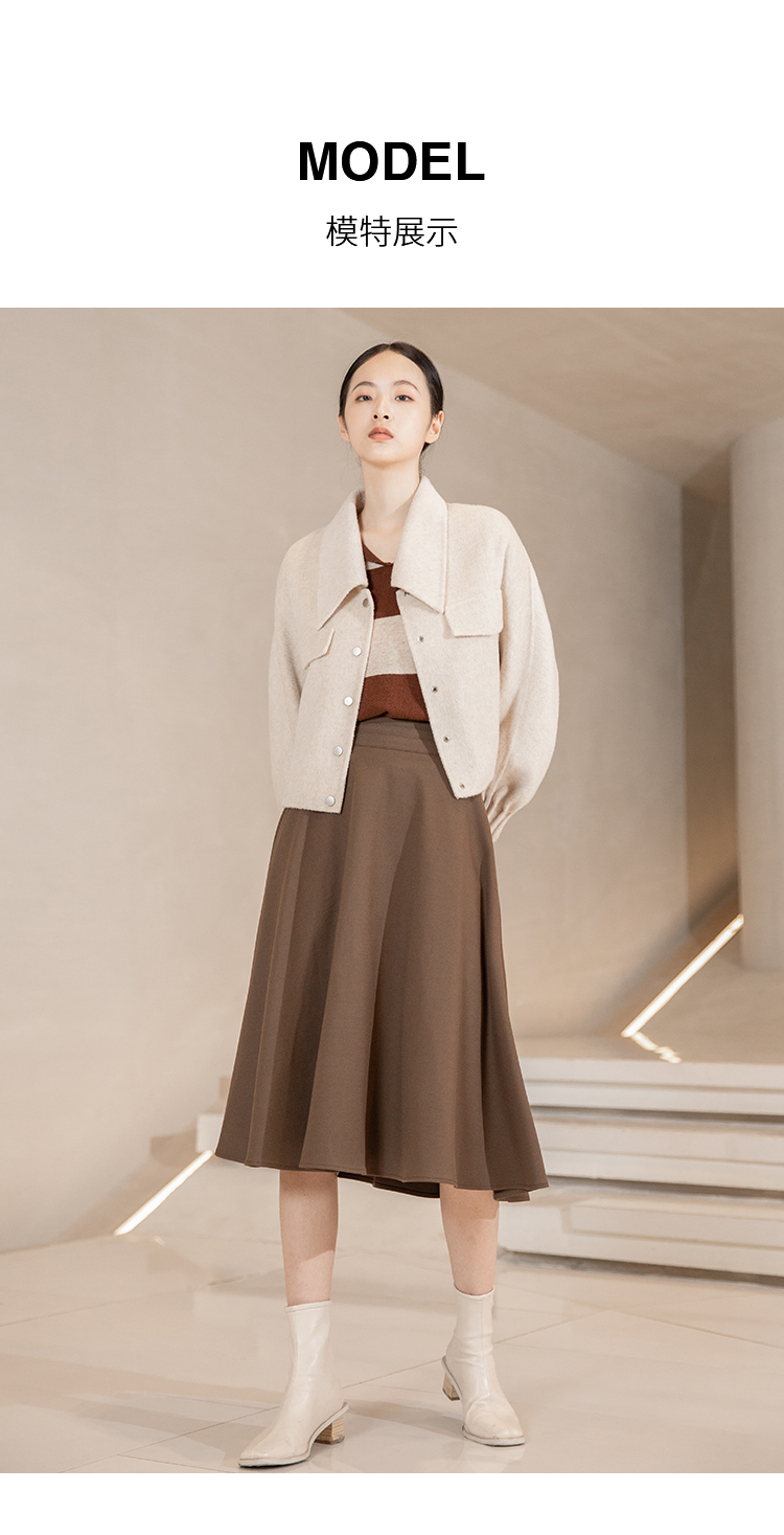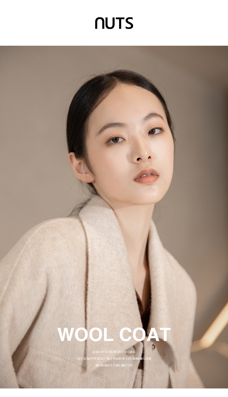 NUTS冬季新款纯色简约气质双面手工呢料大衣短外套女241154146