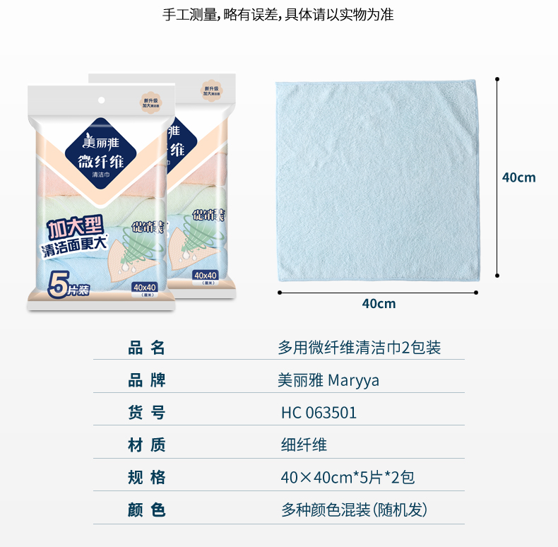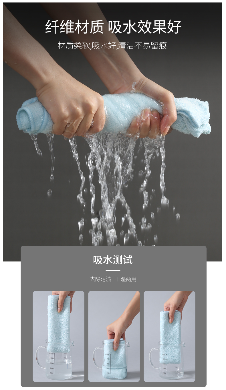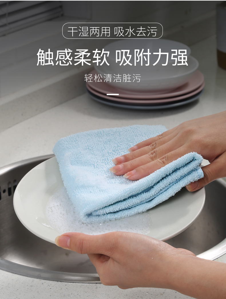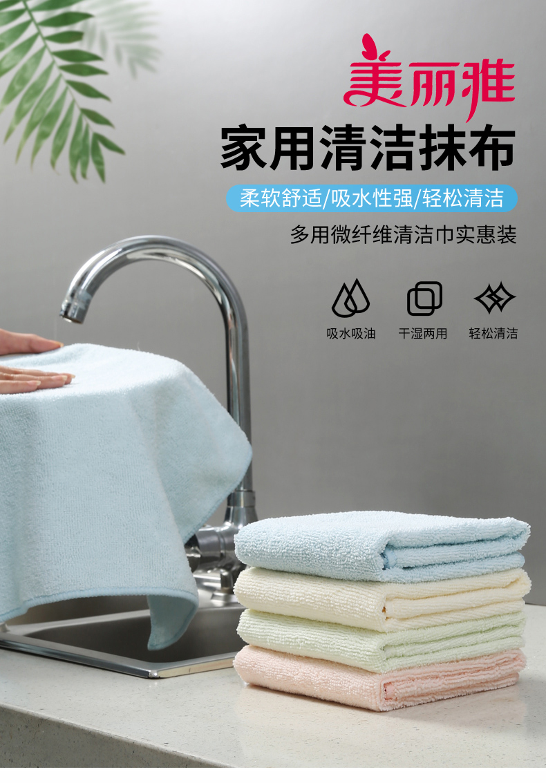 美丽雅纤维抹布不易掉毛不易沾油多用清洁巾家用厨房吸水洗碗10条