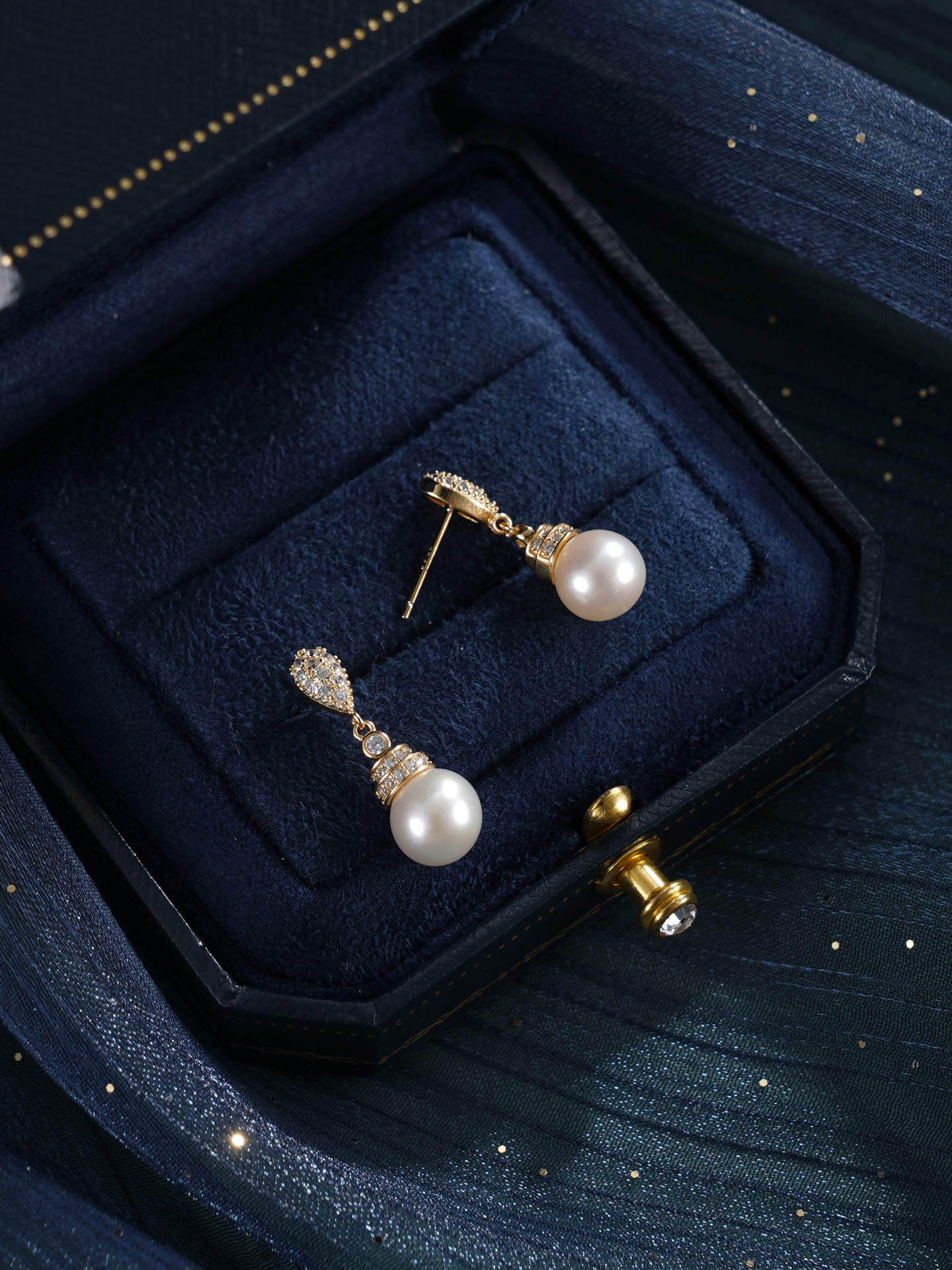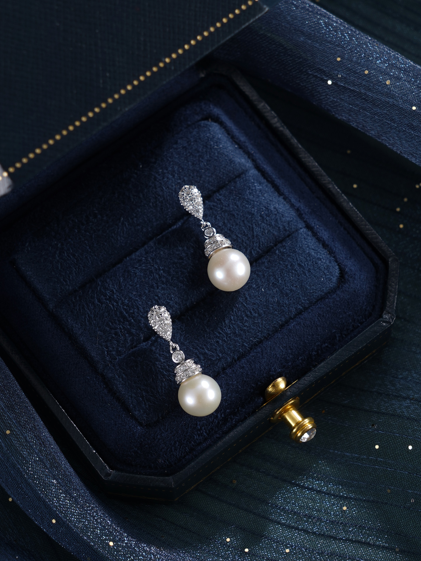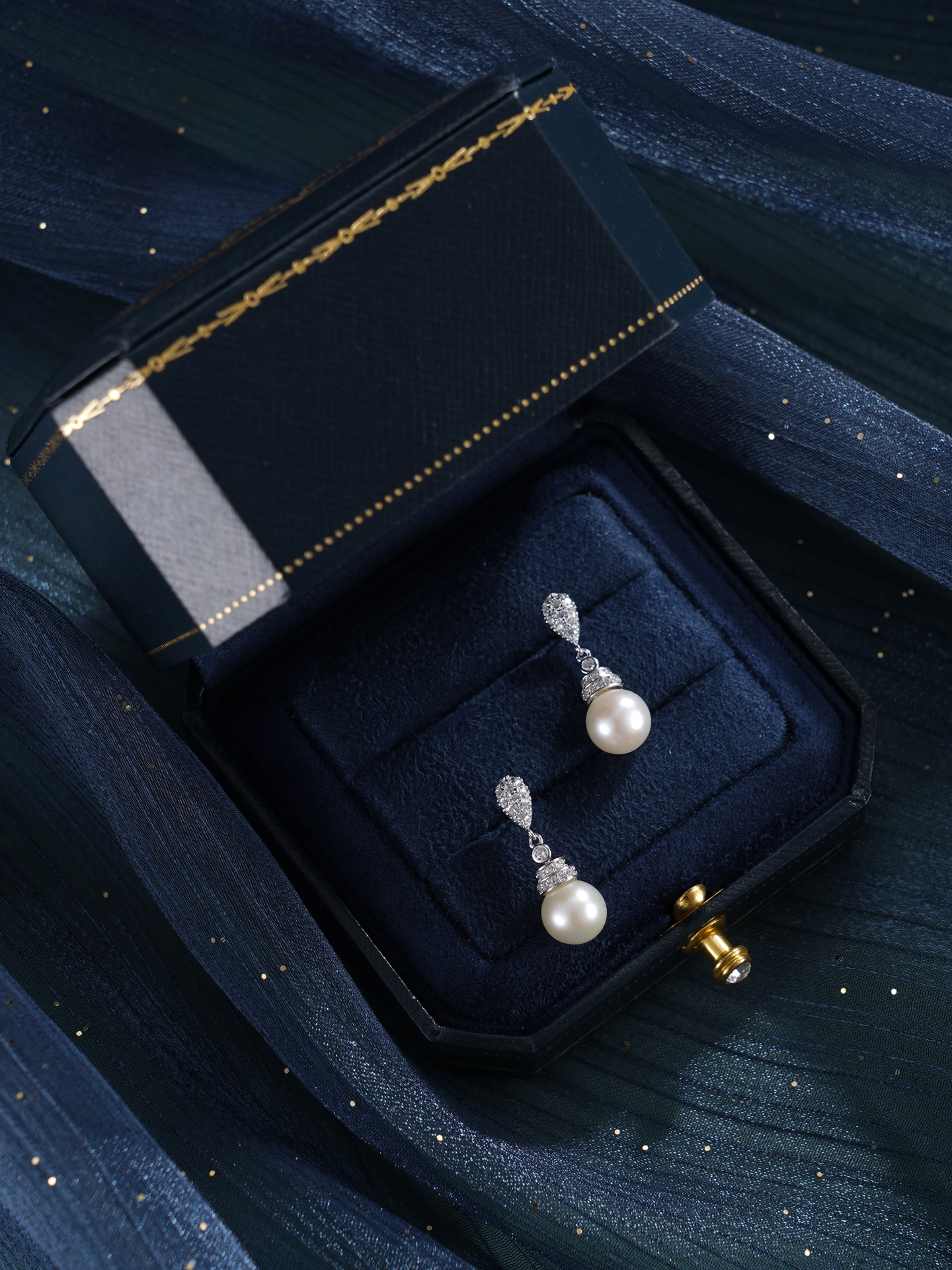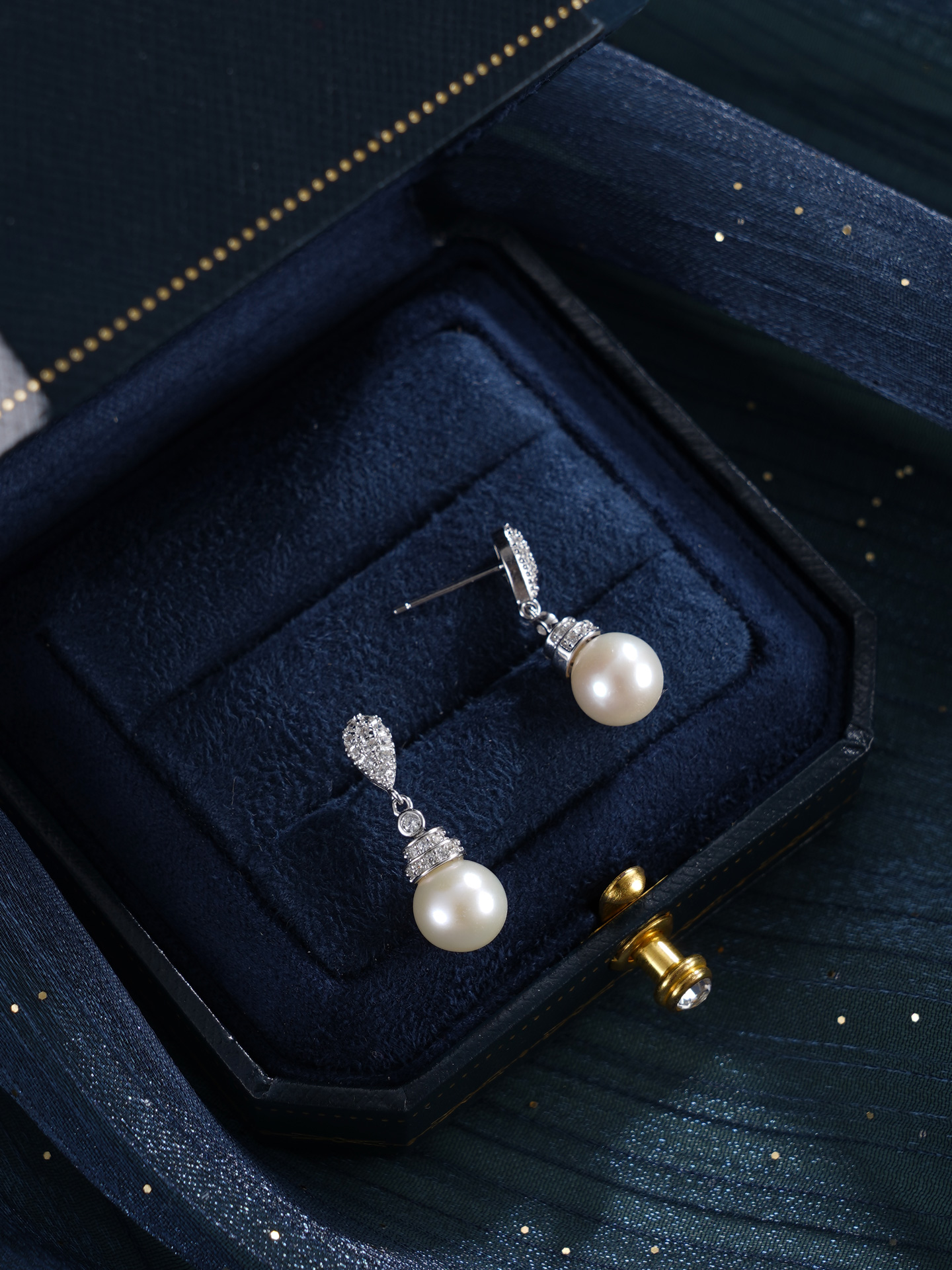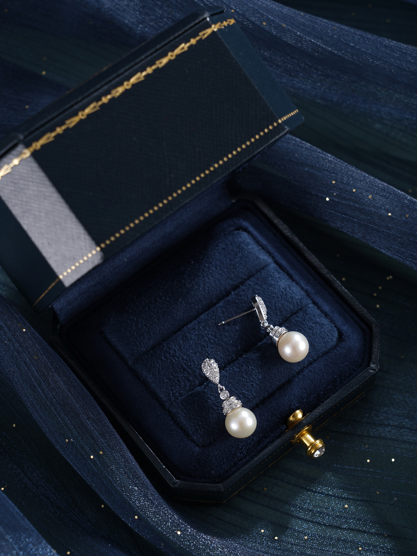 子佩集【绚烂年华】银S925珍珠惜王妃耳钉【E3619】8mm珠双色水滴吊球2601