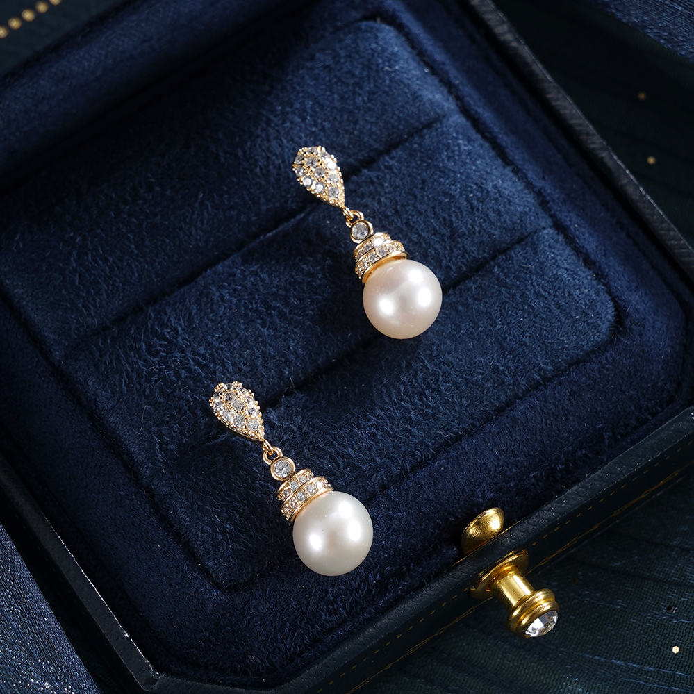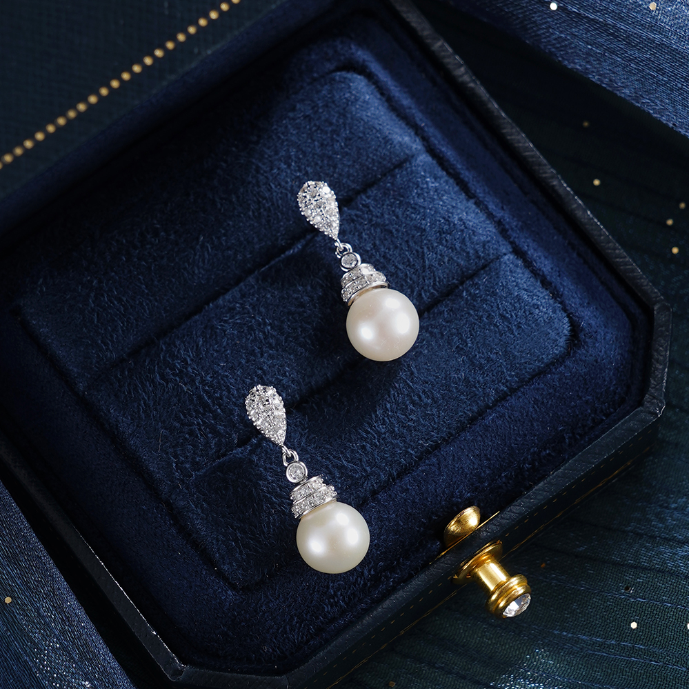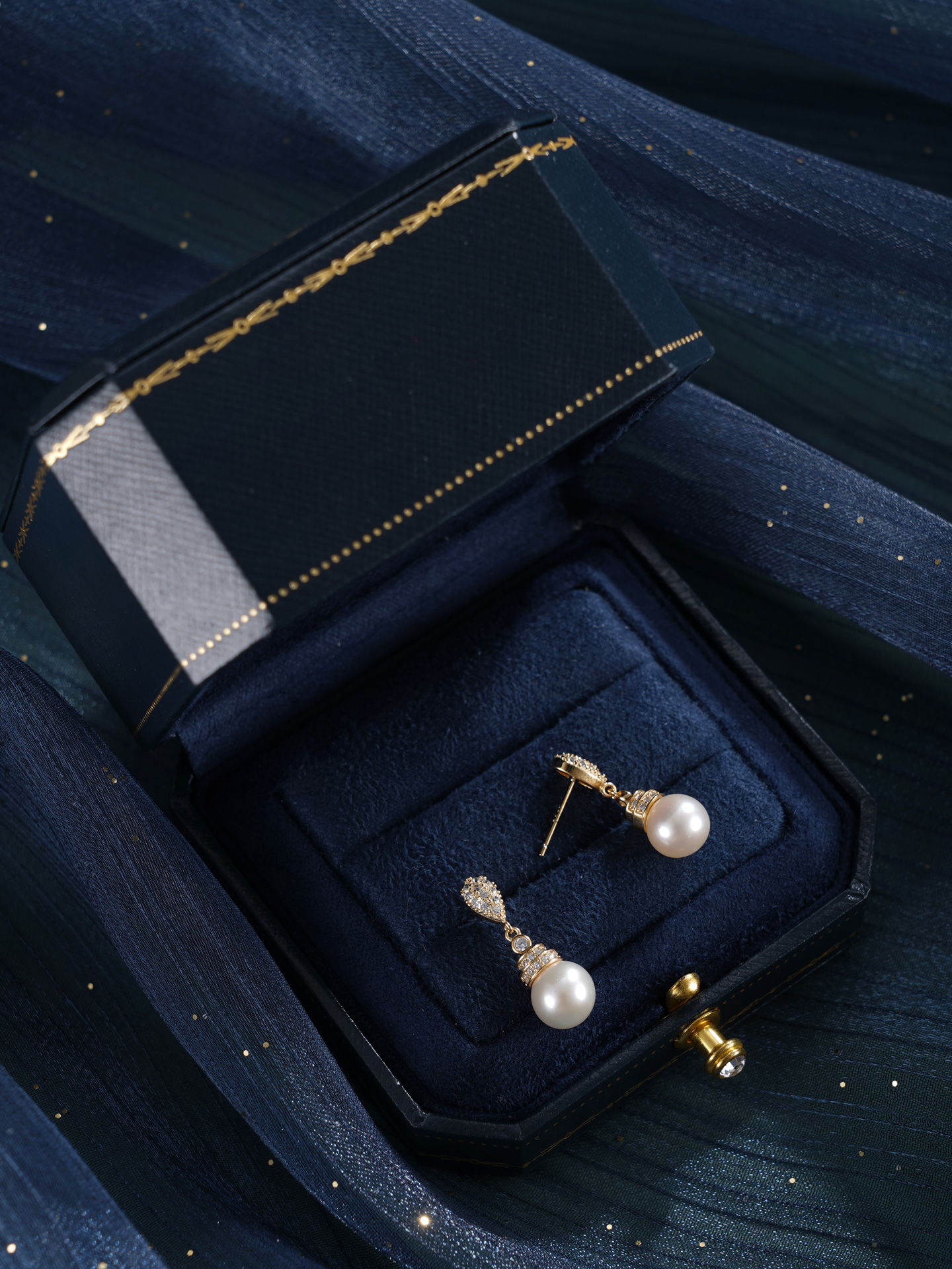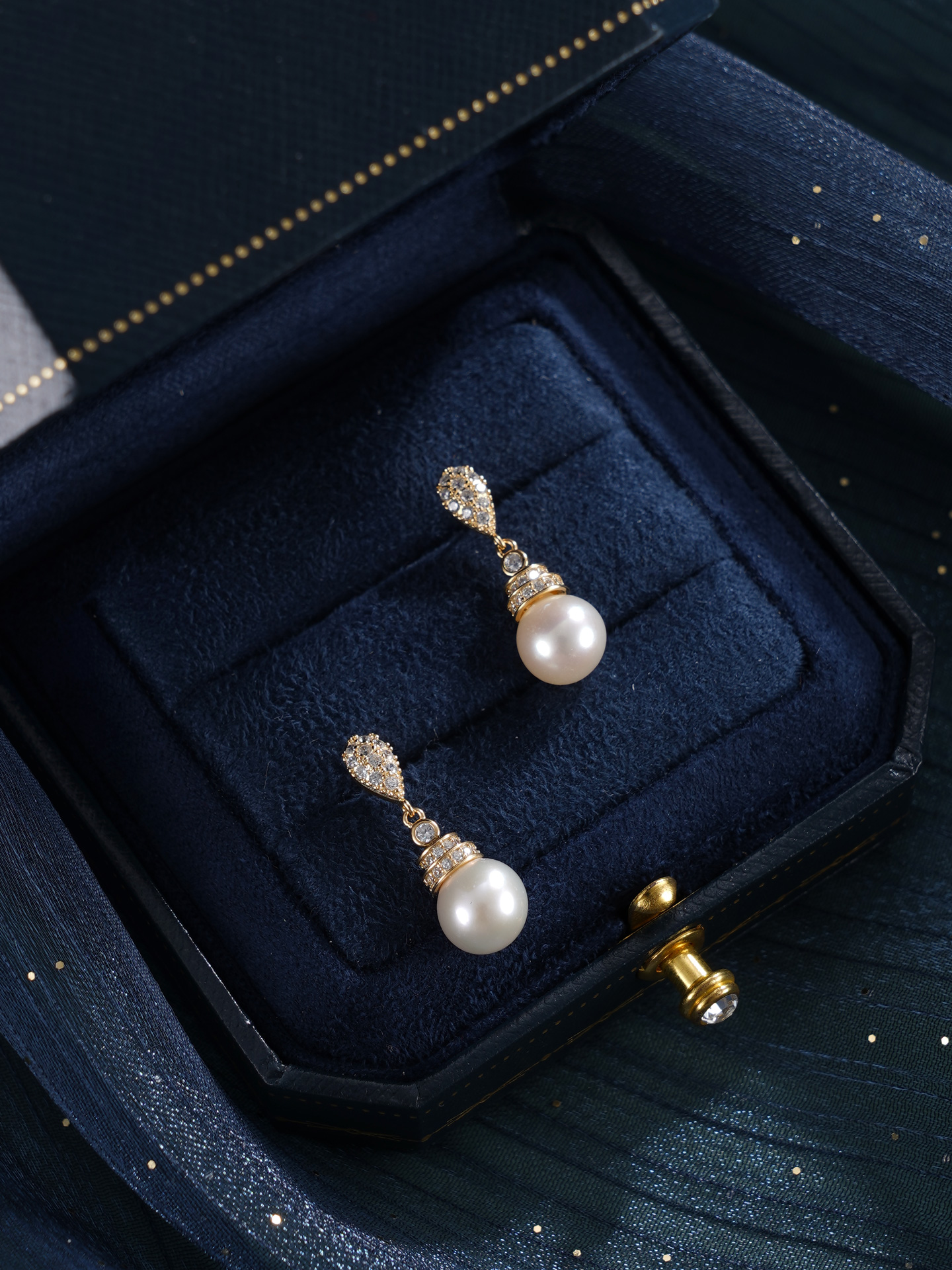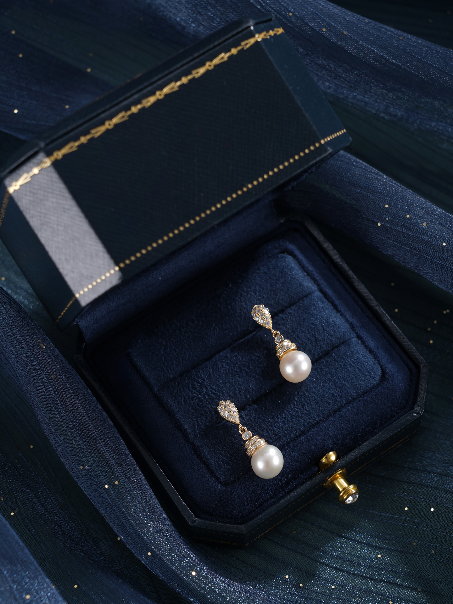 子佩集【绚烂年华】银S925珍珠惜王妃耳钉【E3619】8mm珠双色水滴吊球2601