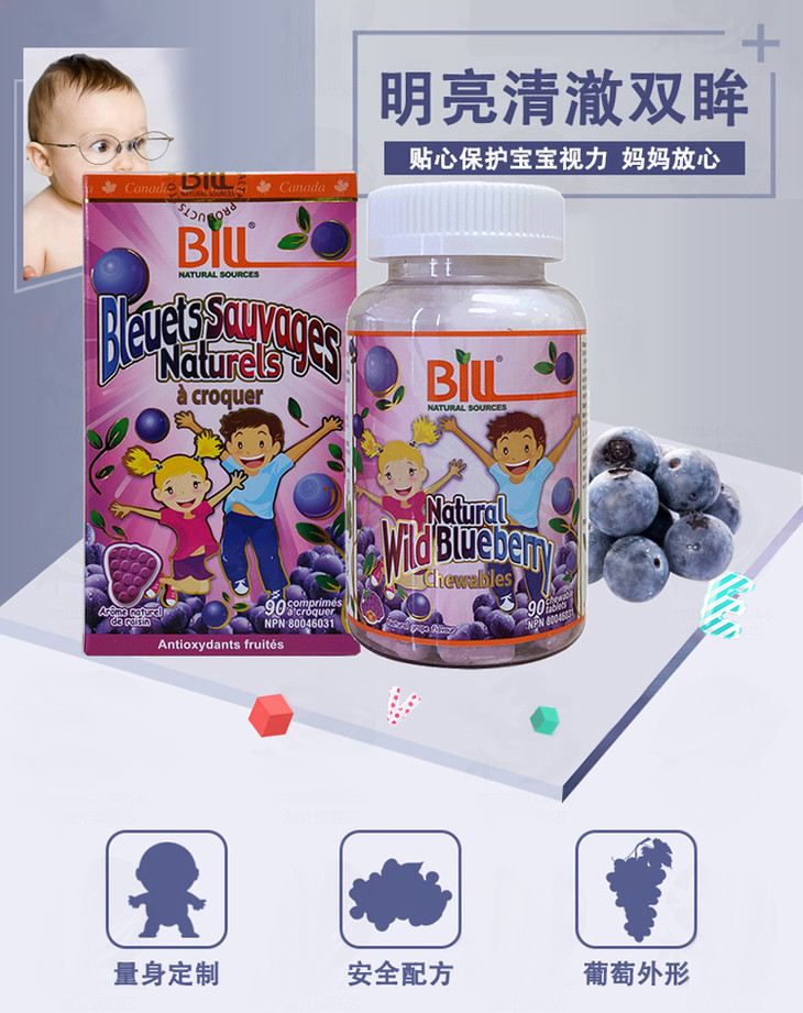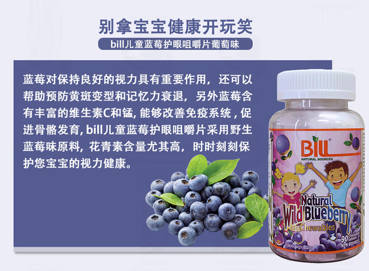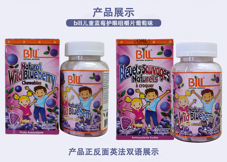 Bill 蓝莓儿童咀嚼片90粒 (有效期至:2027年MAR)