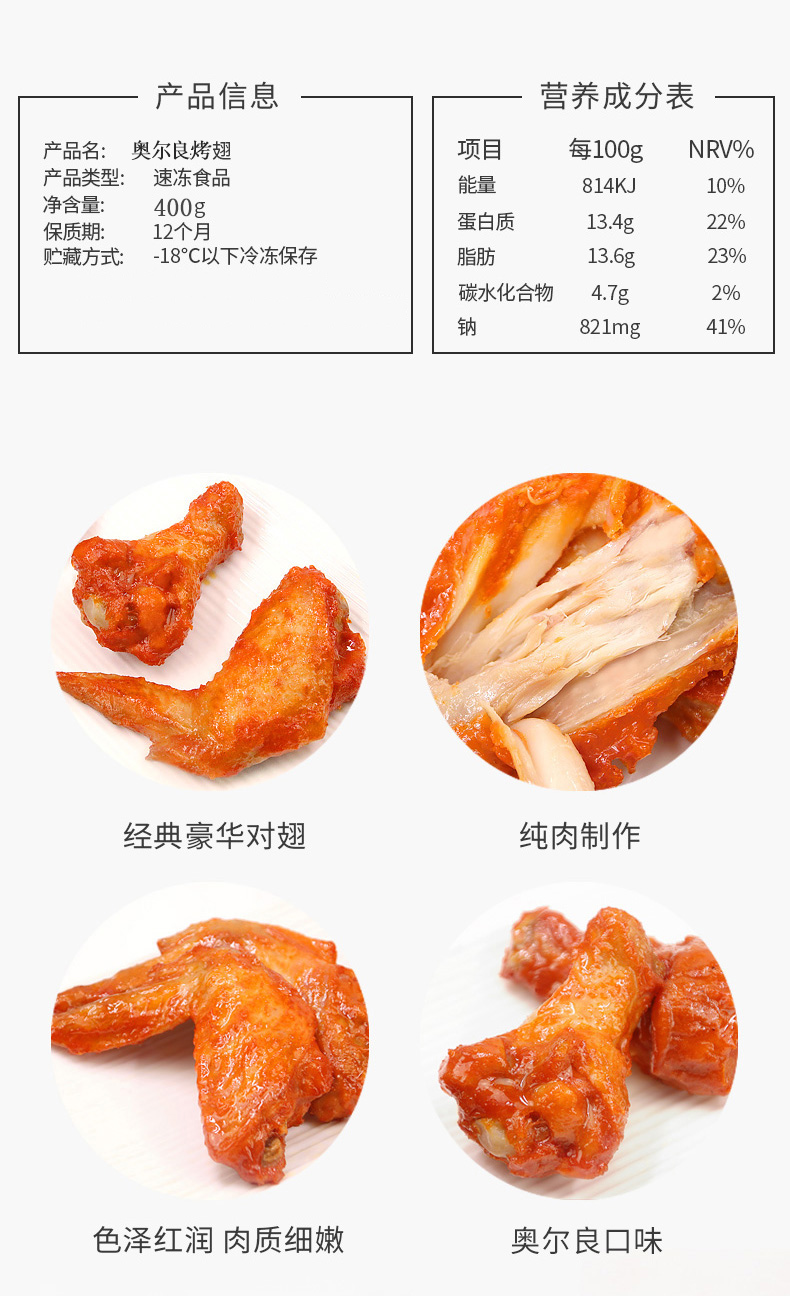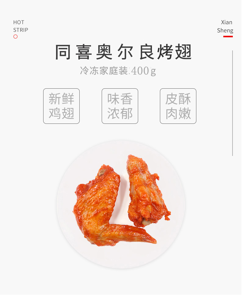 同喜奥尔良烤对翅(400g/包 5对)生产日期: 12月