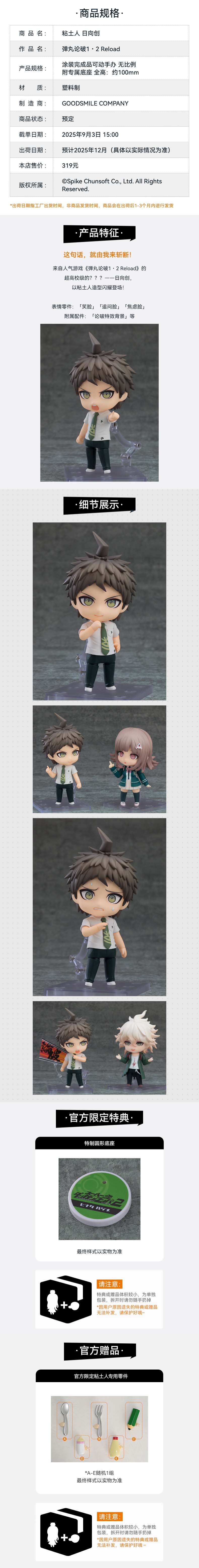 【GSC补款】粘土人 日向创 弹丸论破1・2 Reload 附官方限定特典