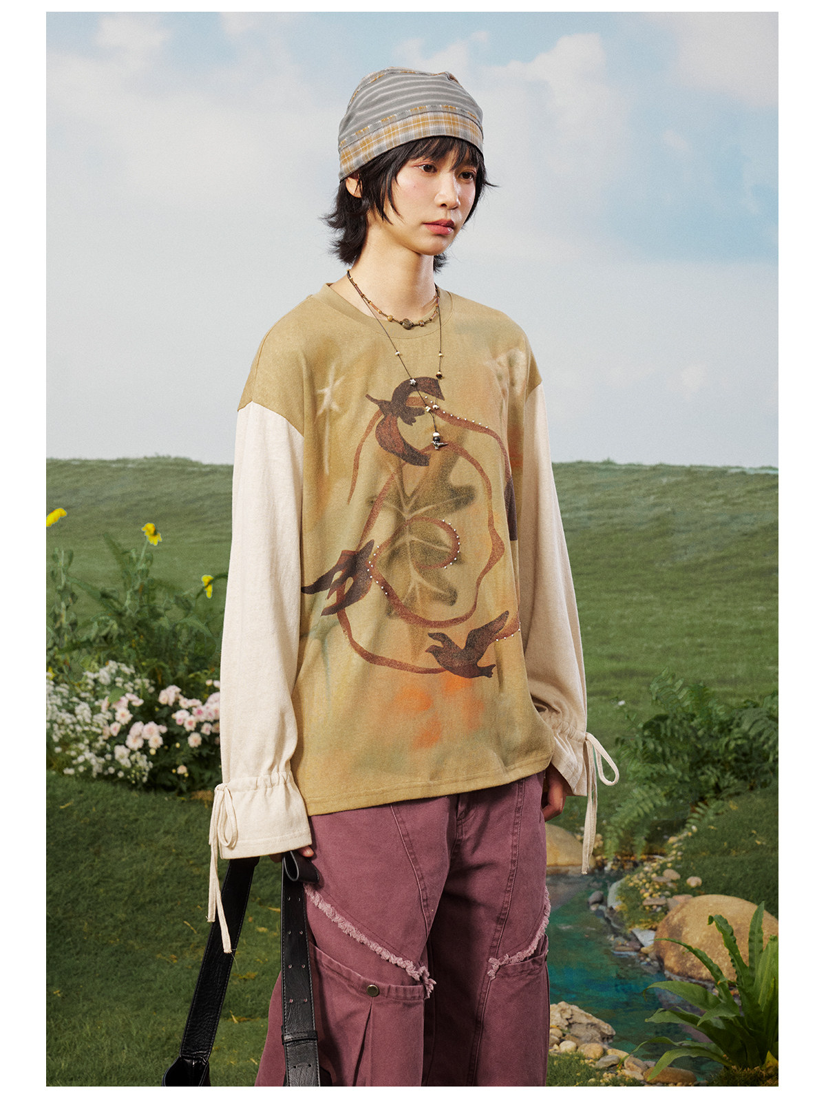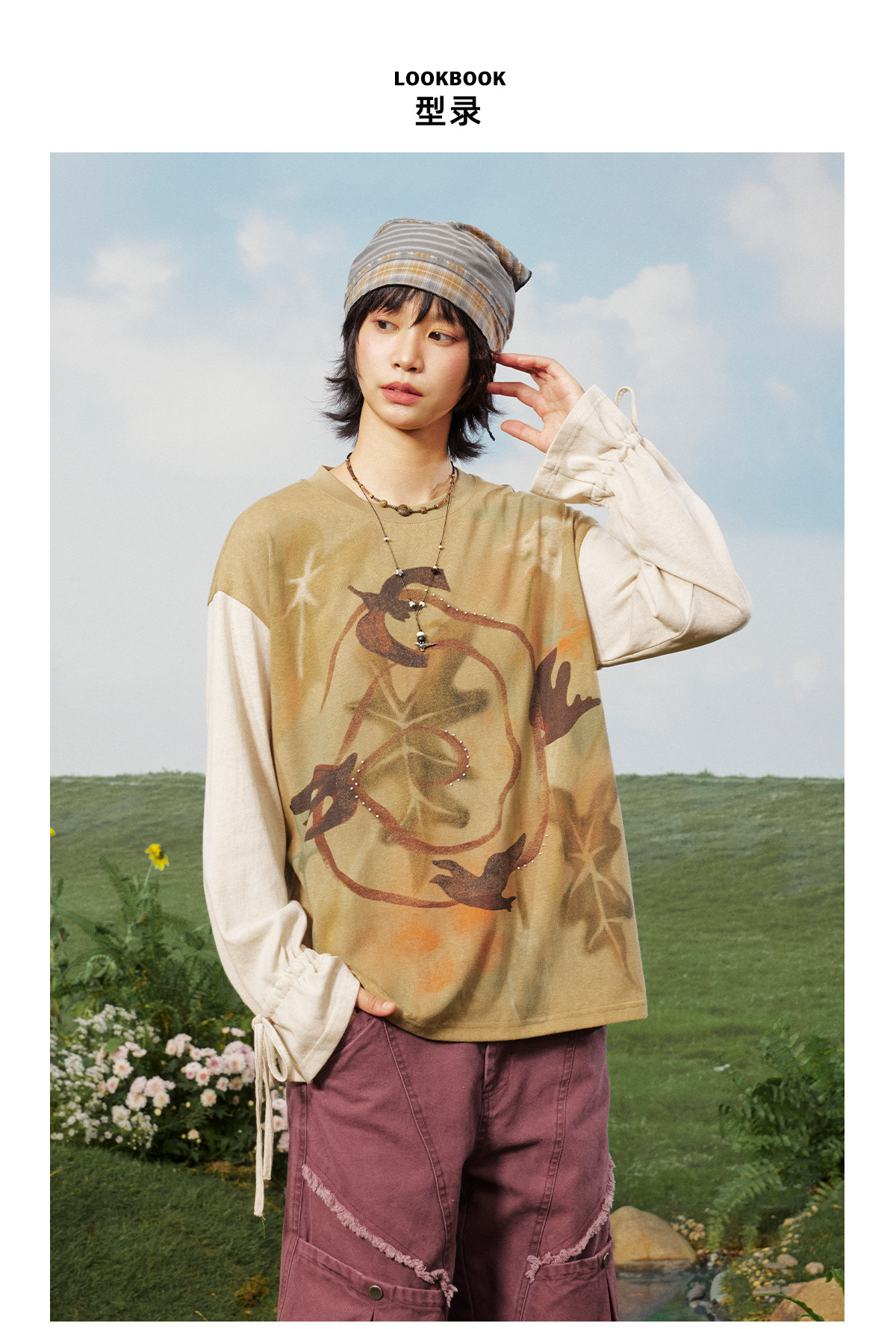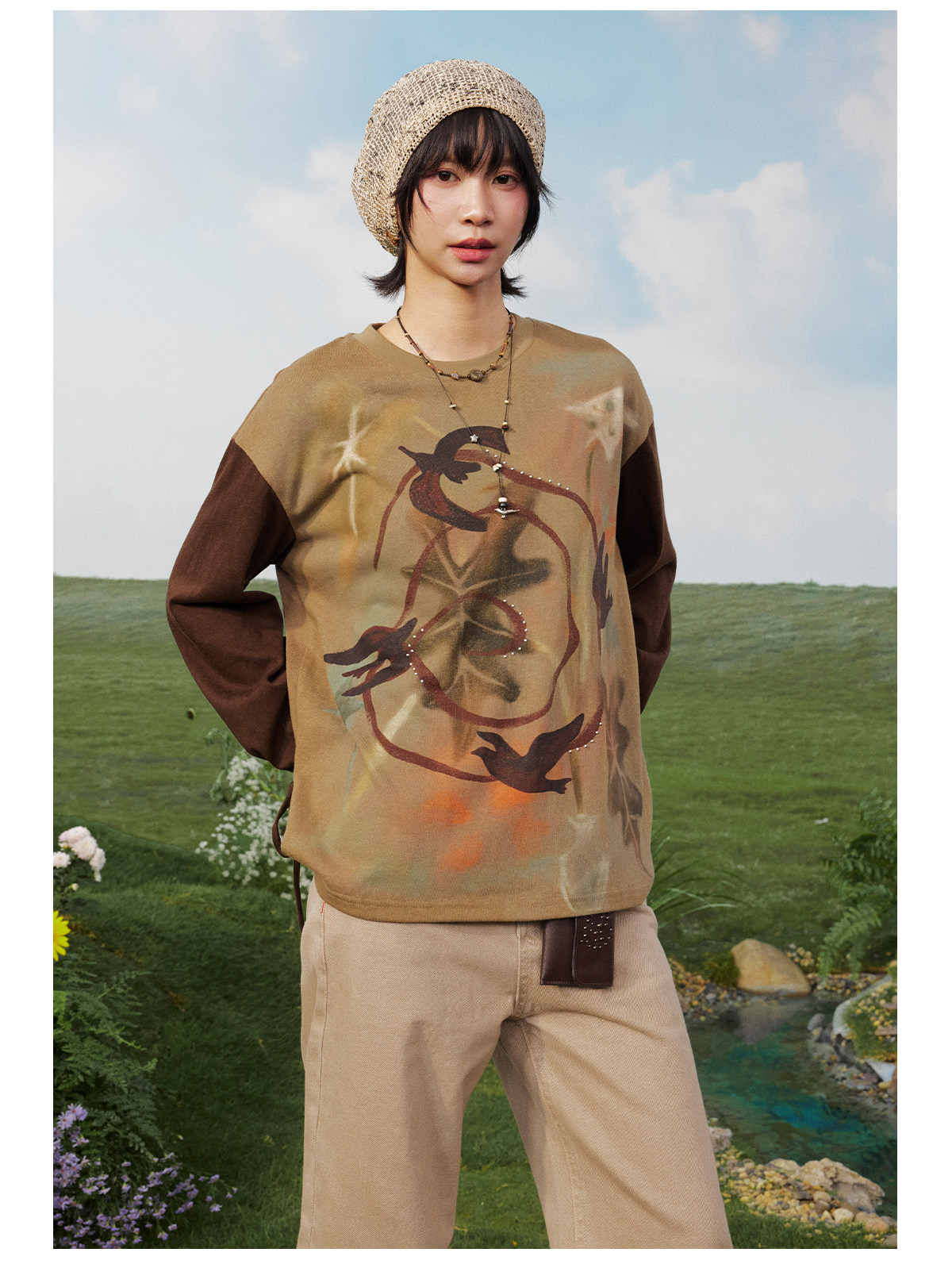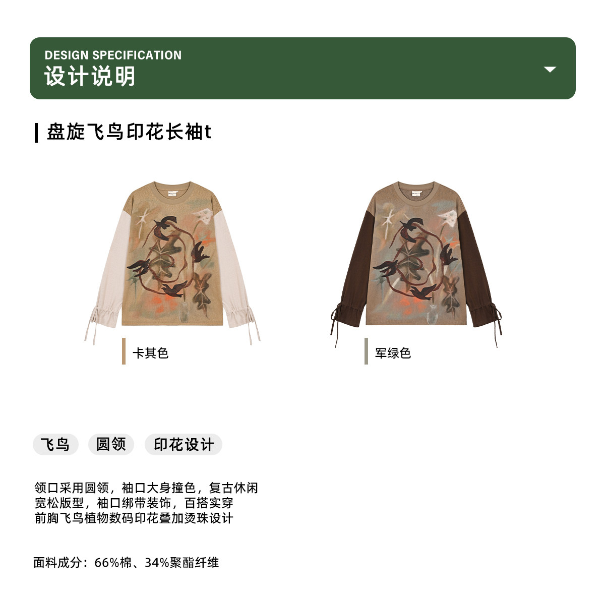 早乙女惠子saotome/STMTX241712/飞鸟盘旋印花长袖t