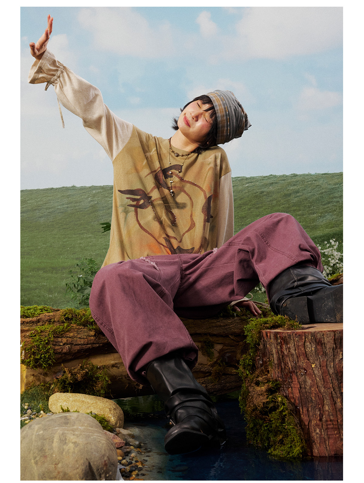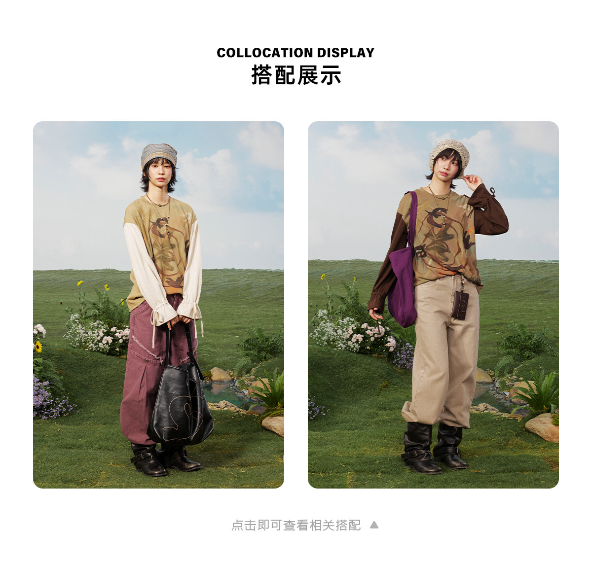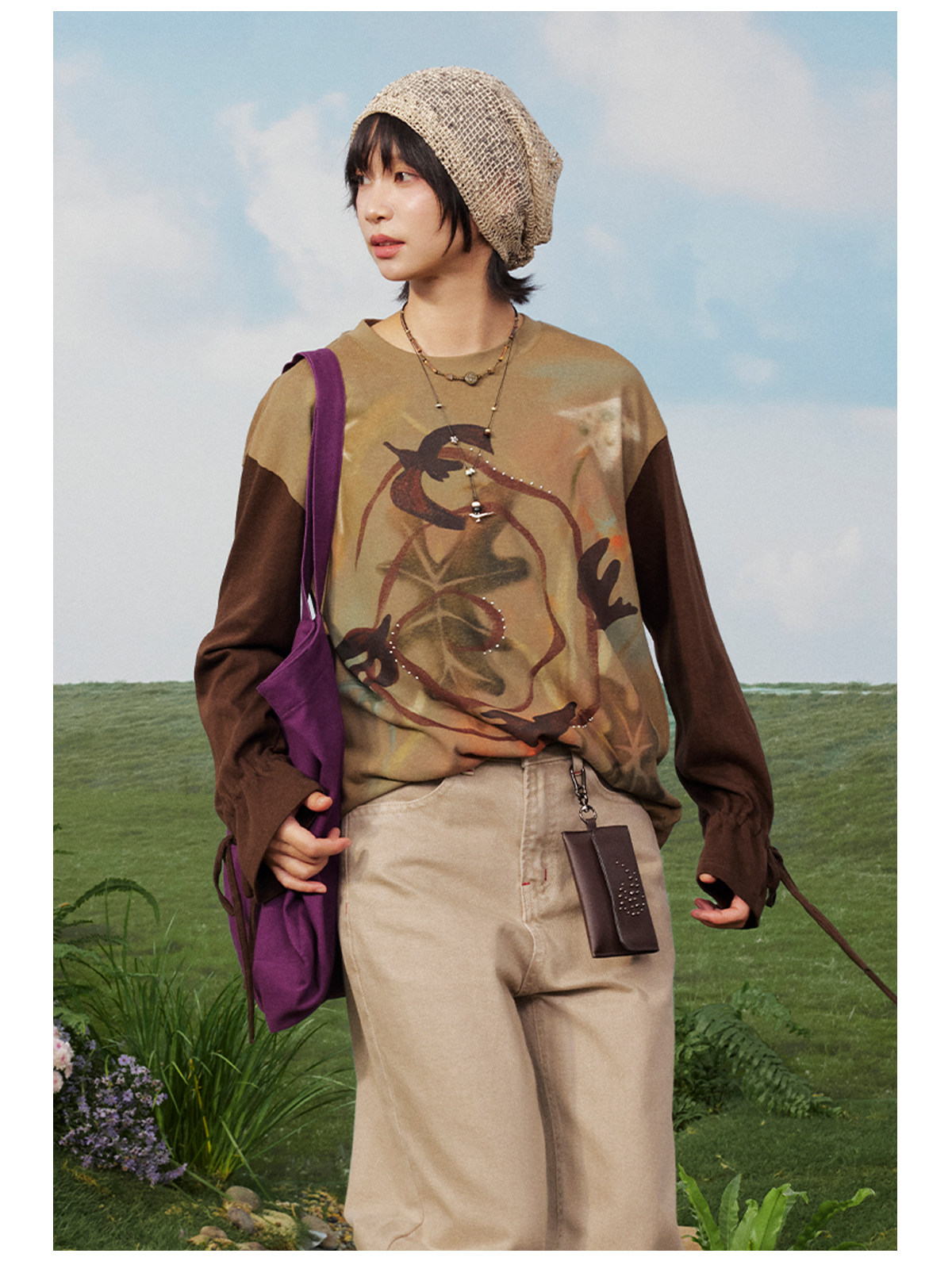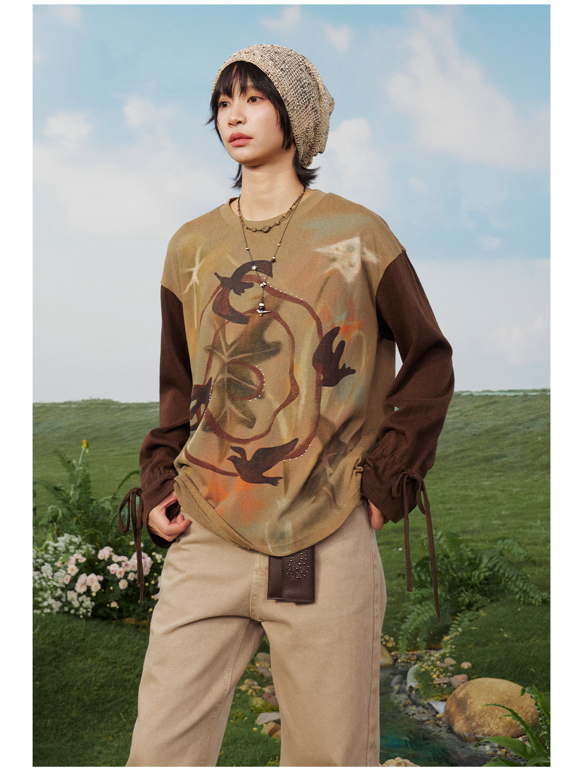 早乙女惠子saotome/STMTX241712/飞鸟盘旋印花长袖t