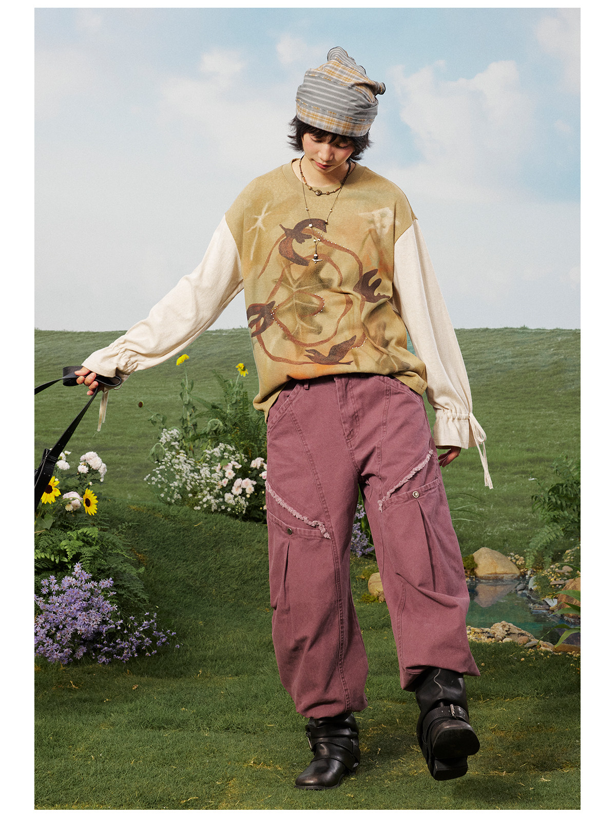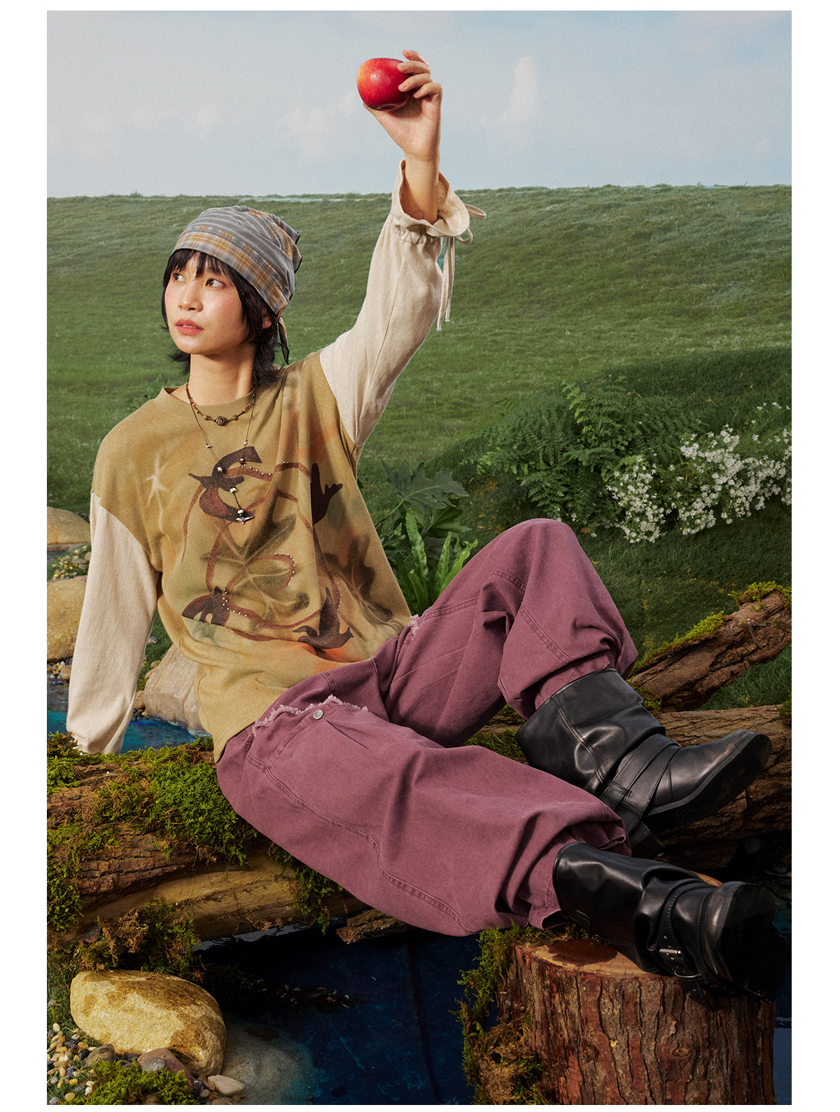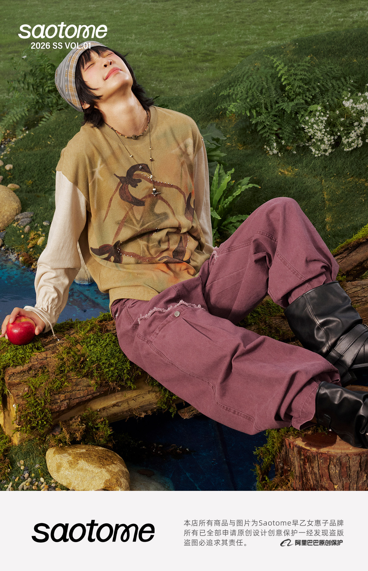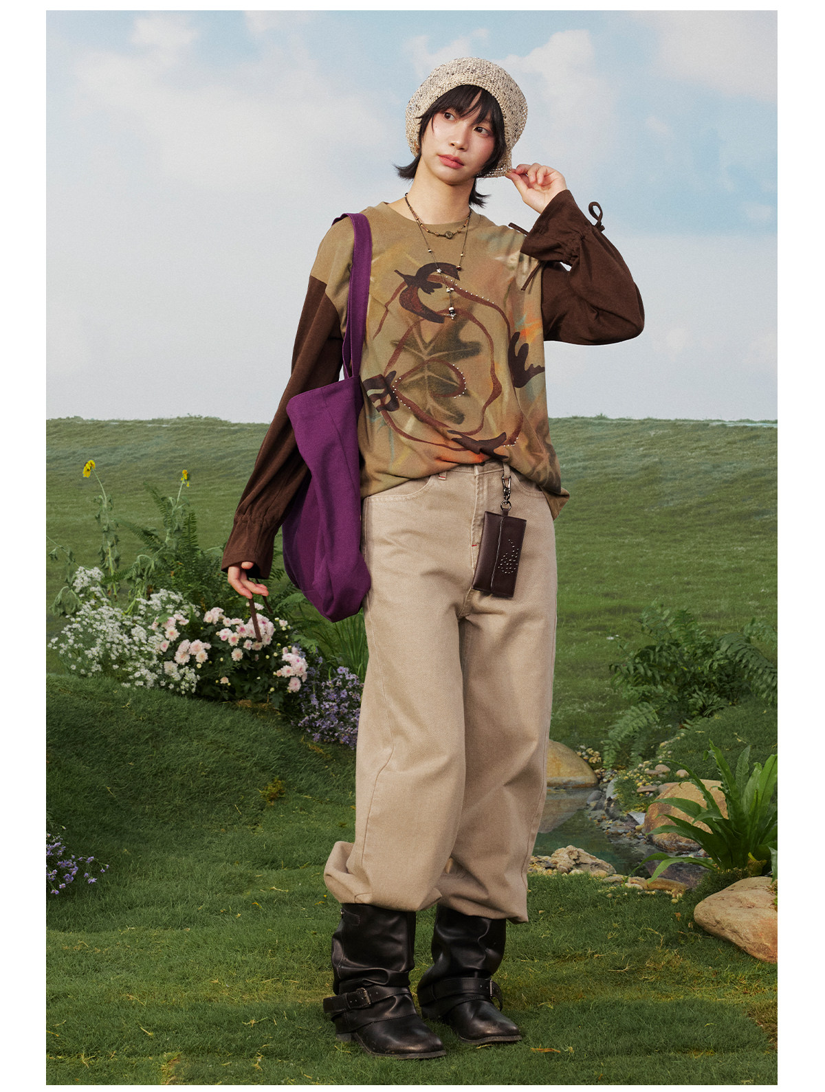 早乙女惠子saotome/STMTX241712/飞鸟盘旋印花长袖t