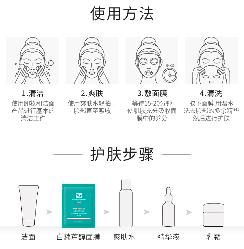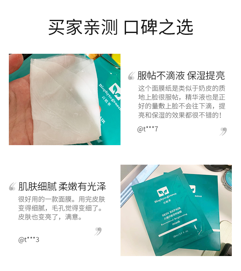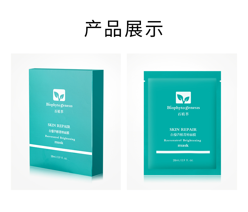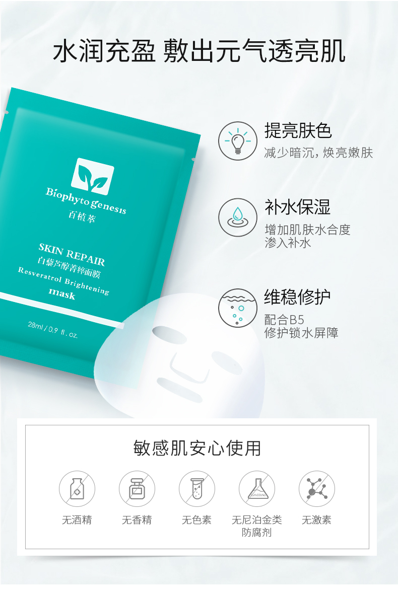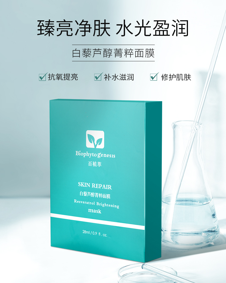【百植萃】百植萃白藜芦醇亮肤补水保湿滋润抗氧菁粹面膜6片装修护肌肤 白藜芦醇面膜1盒