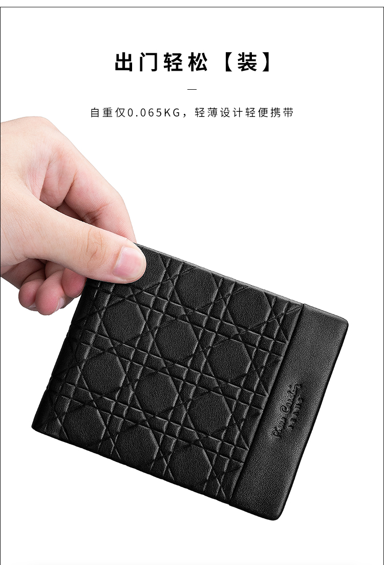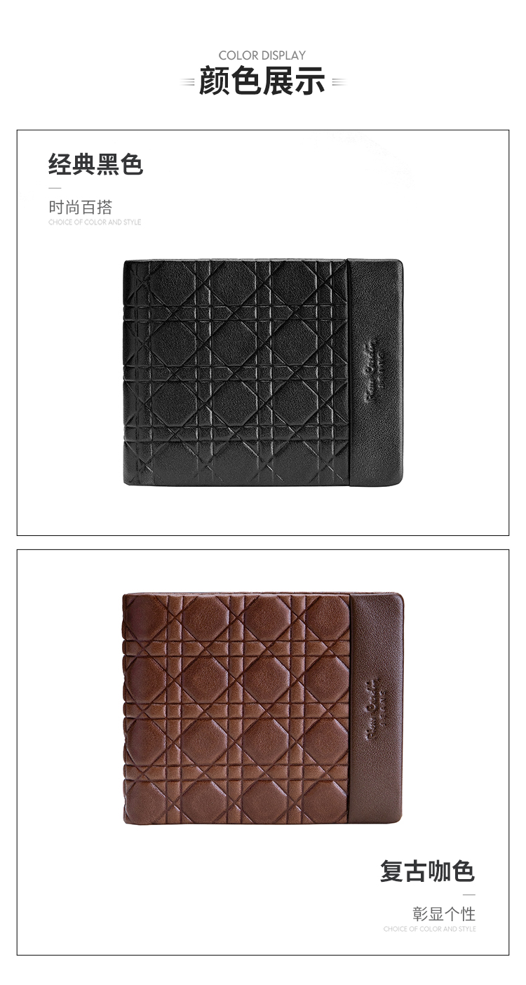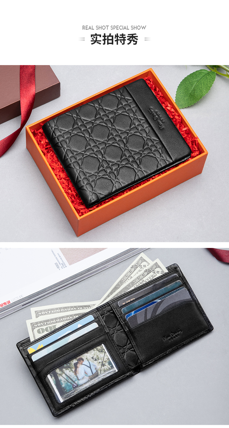 皮尔卡丹正品男士都市休闲横身银包真皮软头层牛皮钱包啡色男青年皮夹男