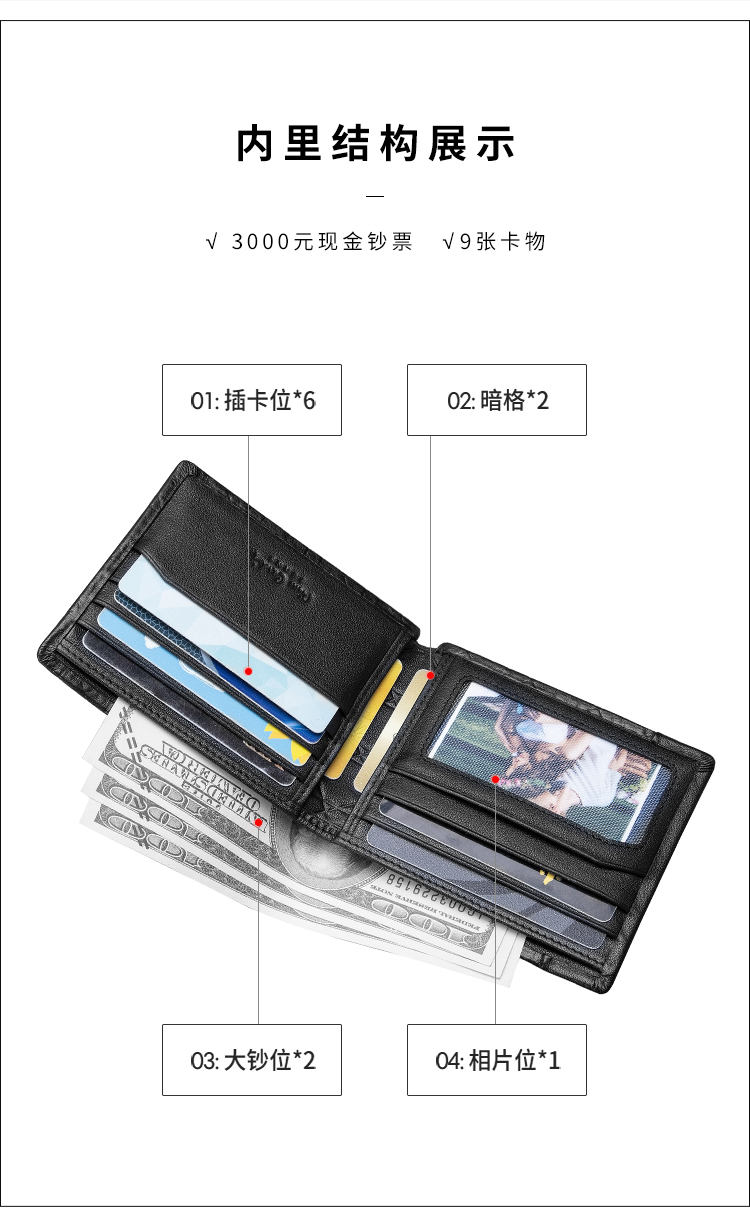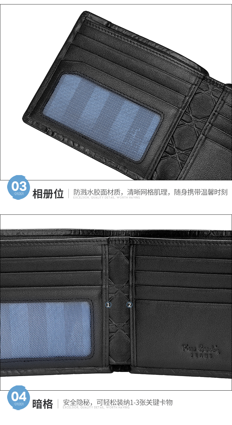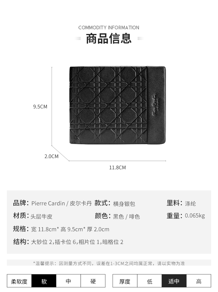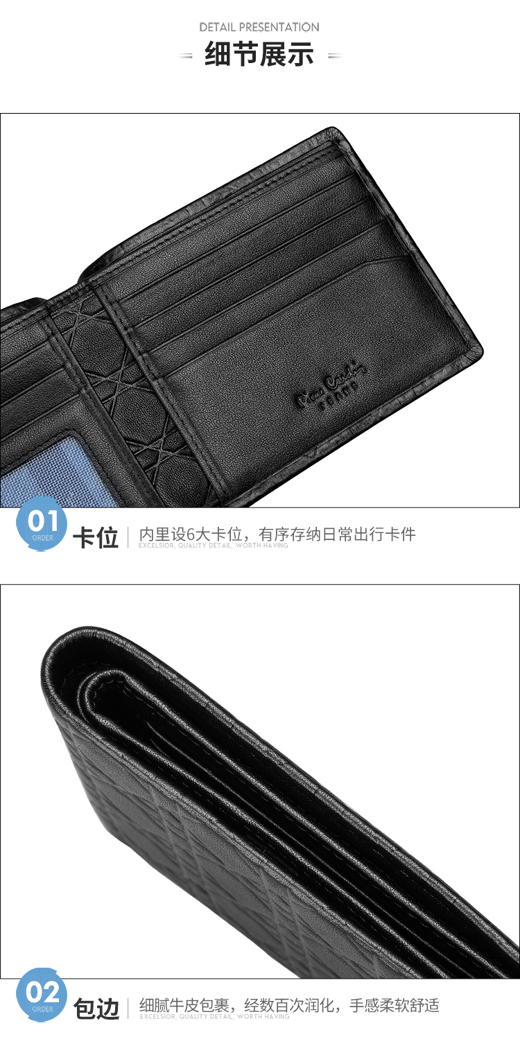 皮尔卡丹正品男士都市休闲横身银包真皮软头层牛皮钱包啡色男青年皮夹男