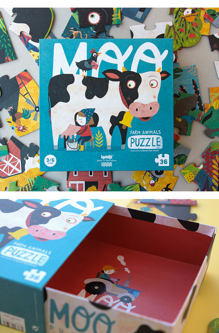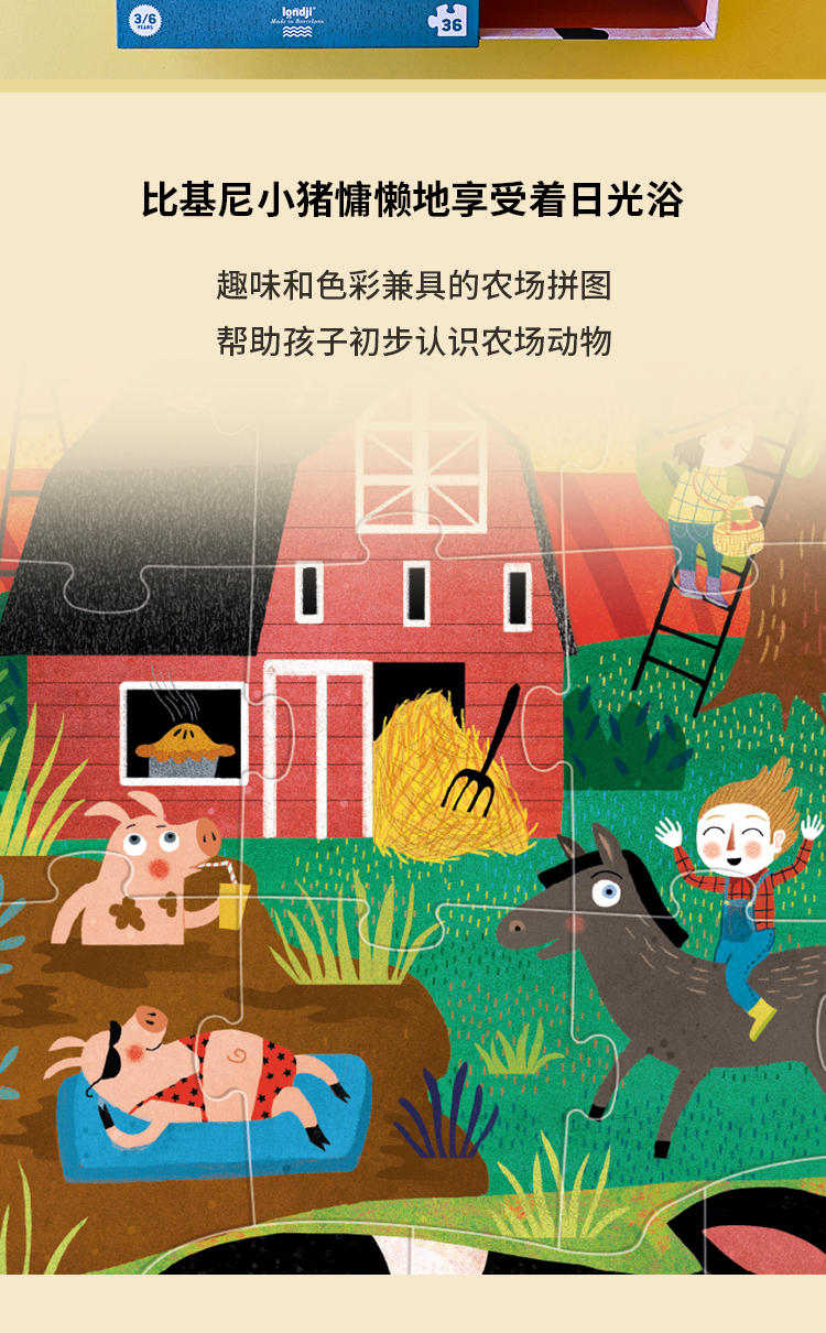londji 我的小农场 拼图 二阶拼图 适合3岁+ 认知提升 不规则大图案 西班牙品牌-PZ020U