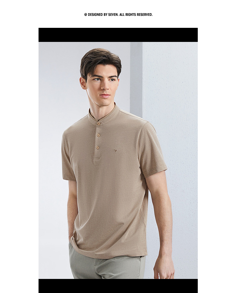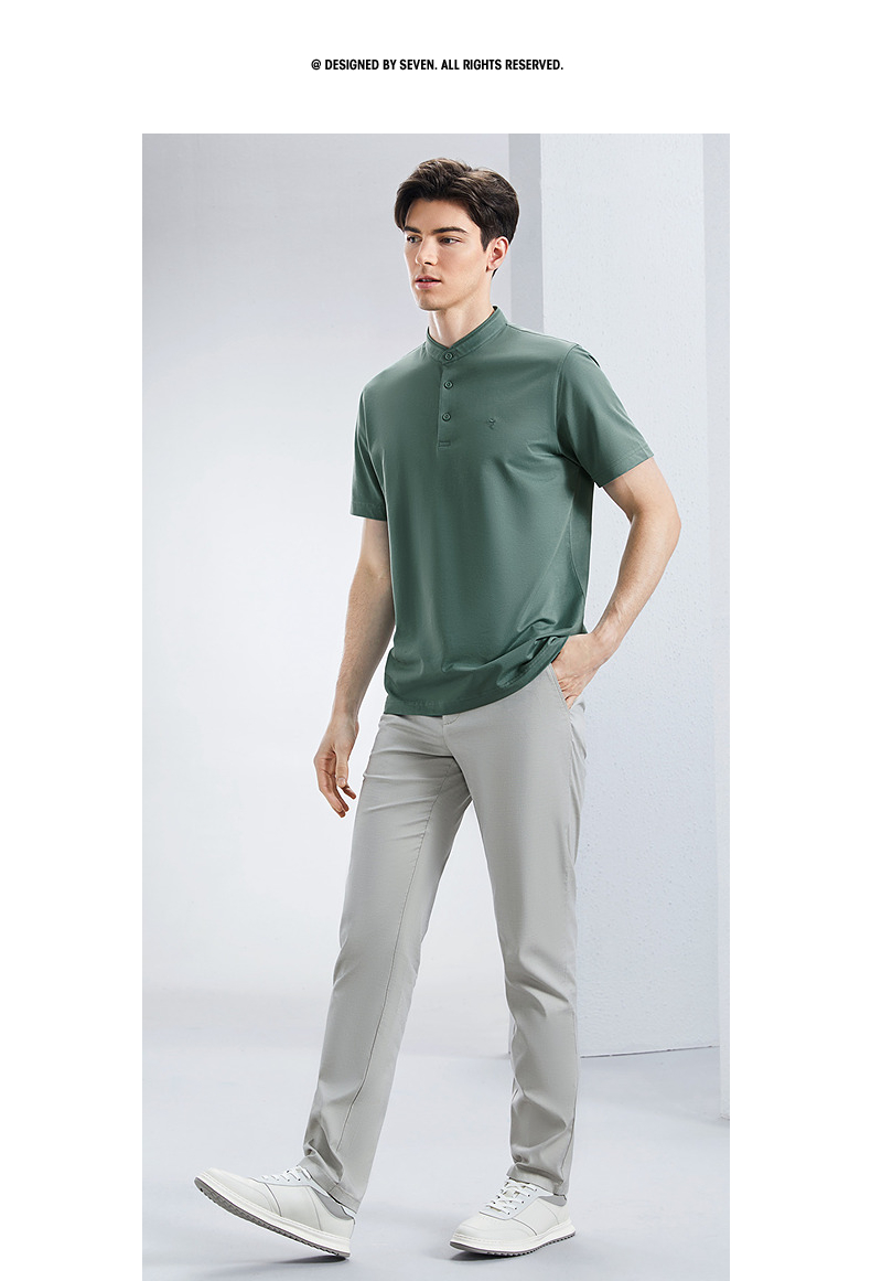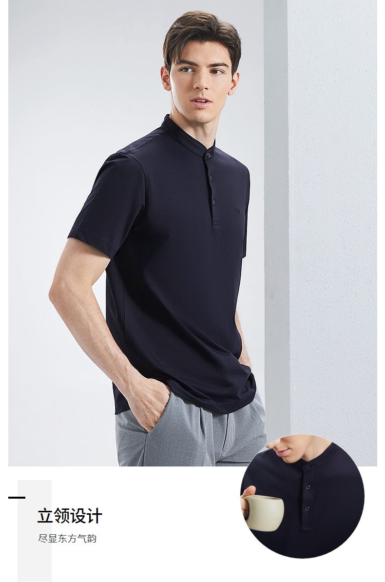 【中华立领】柒牌男装短袖polo衫男2024夏季薄款时尚青年男士立领休闲T恤上衣 126T70820