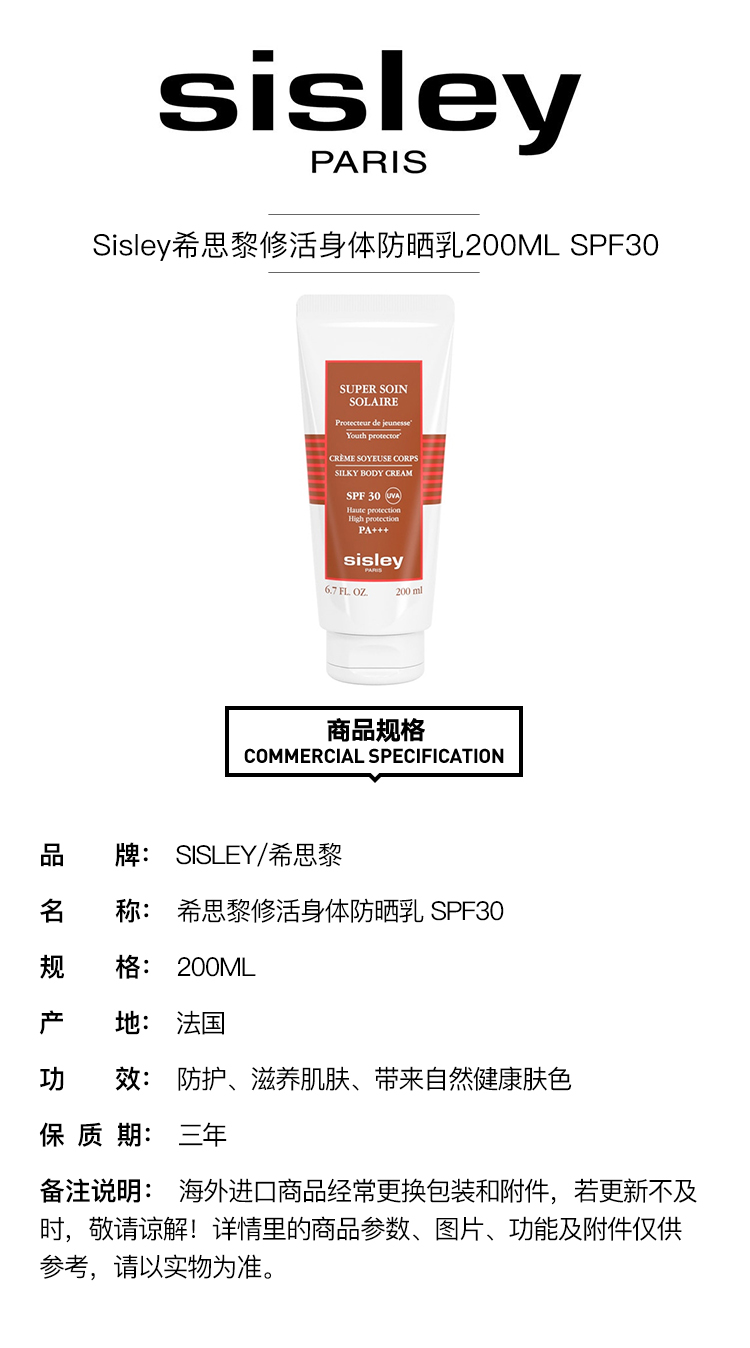 Sisley/希思黎 修活身体防晒乳200ML SPF30