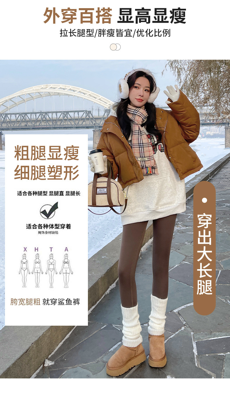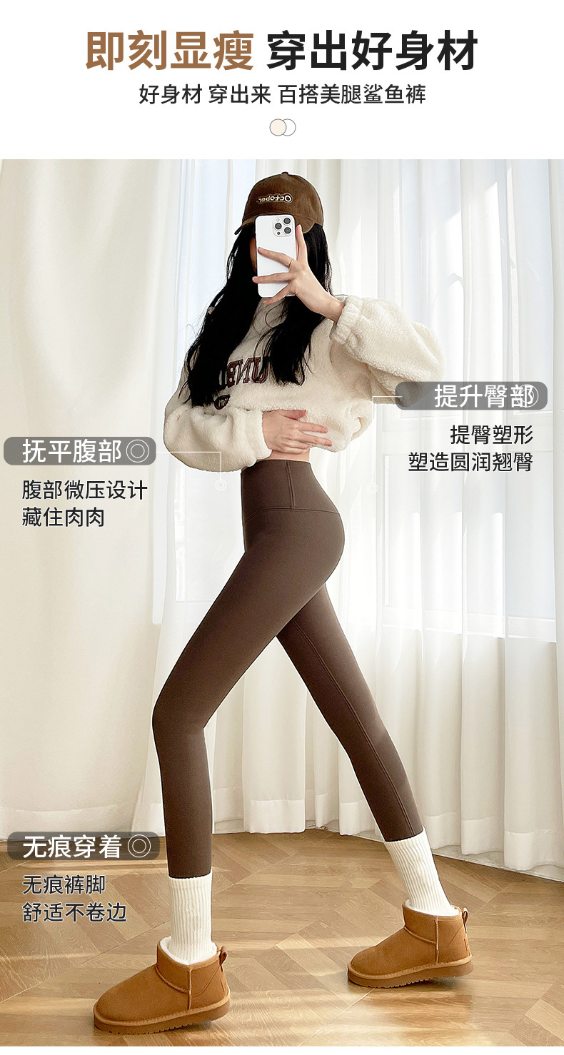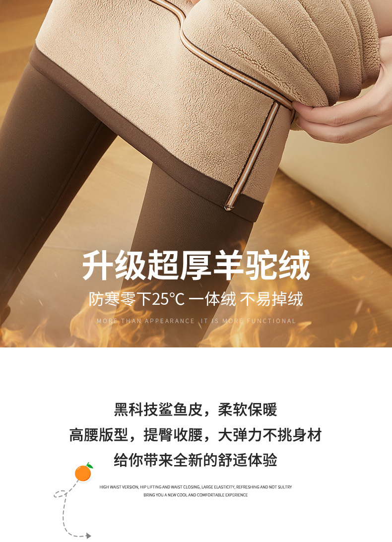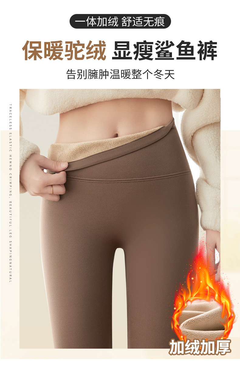 保暖驼绒显瘦鲨鱼裤【锦纶加绒打底裤女 一体绒】冬 加厚高腰收腹 羊羔绒裤外穿