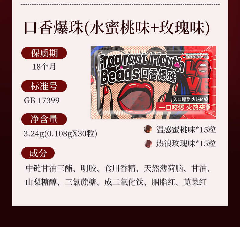爱威康 口香爆珠 情趣用品夫妻床上助爱工具口交水舔下体冰火口嗨高潮做事神器