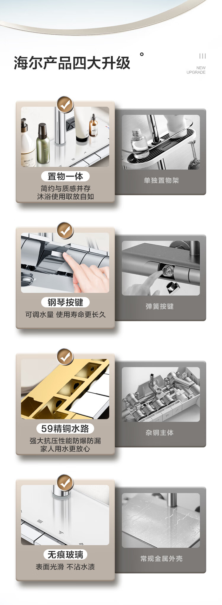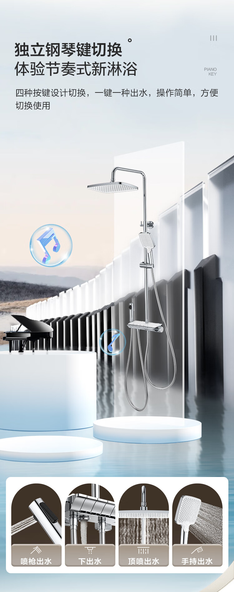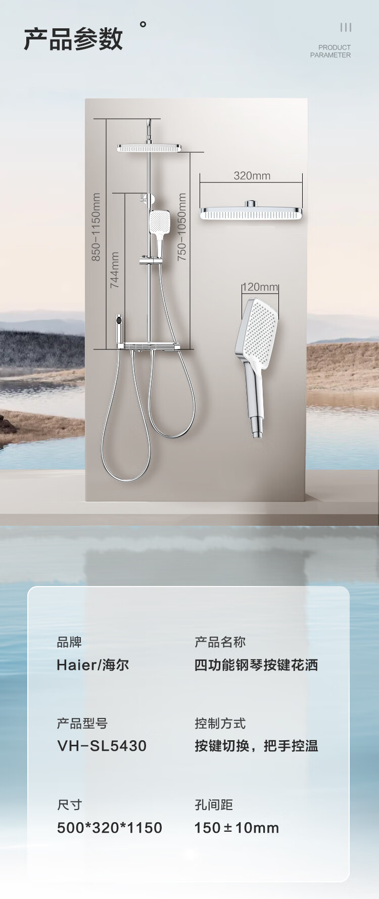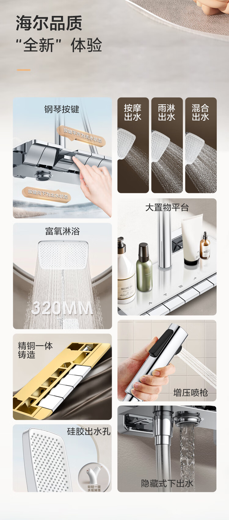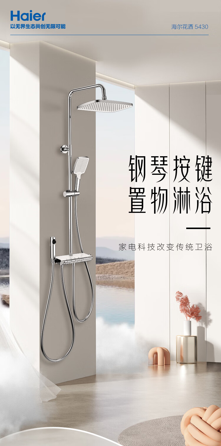 海尔(Haier)花洒套装钢琴按键淋浴器卫生间纯铜洗澡淋浴 SL5430 【钢琴按键富氧淋浴】5430