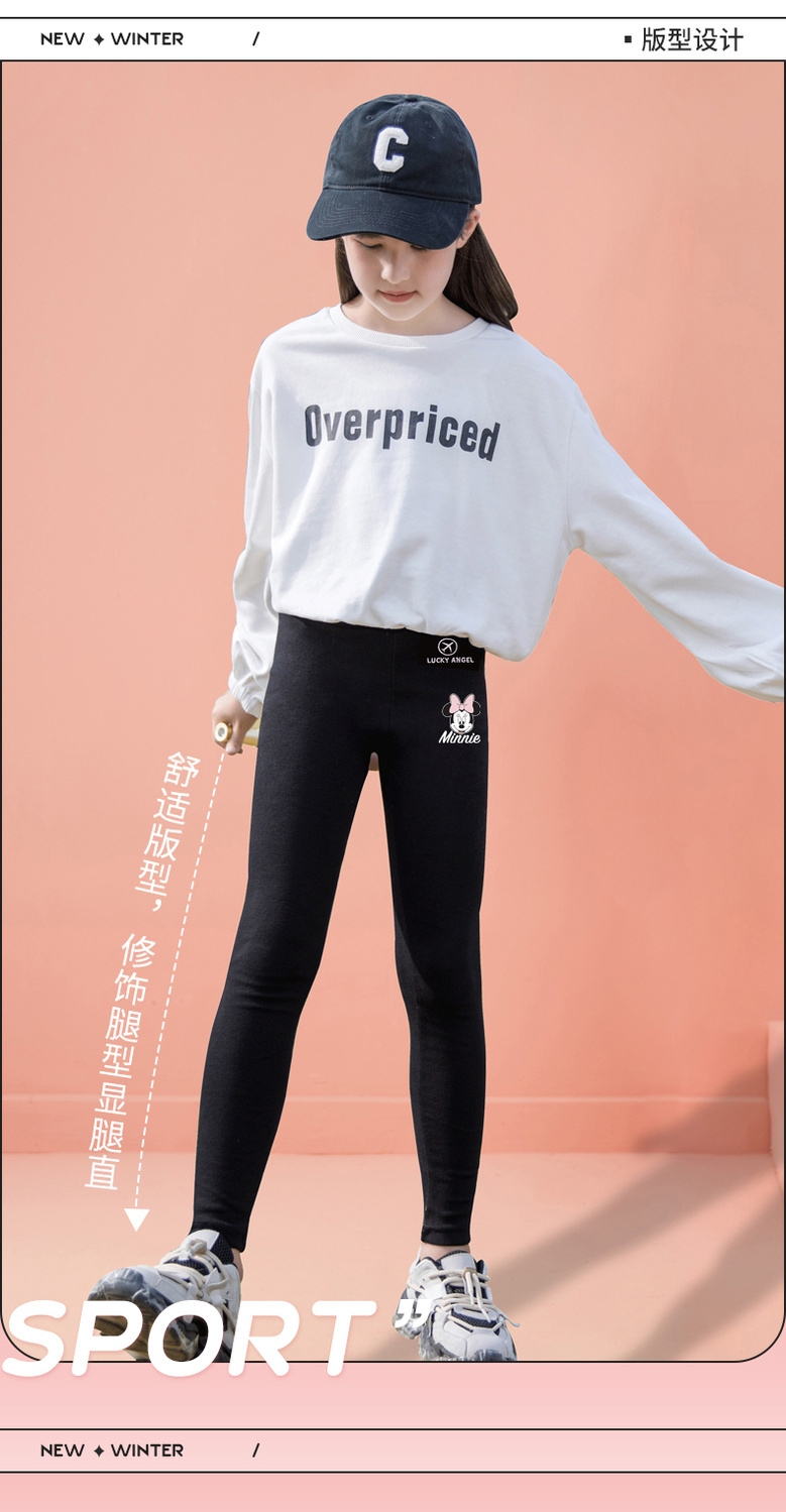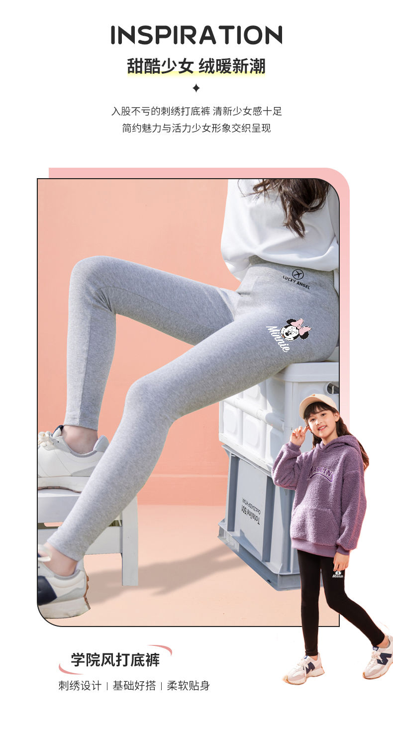 迪士尼女童加绒打底裤秋冬外穿2022新款儿童保暖裤女大童加厚棉裤