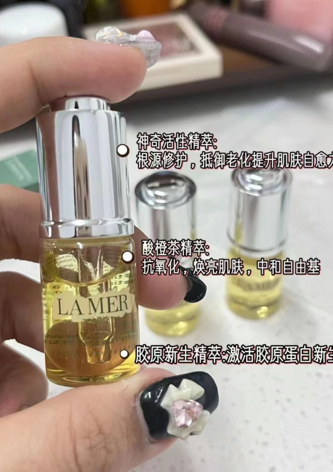 .干皮可以滴在面霜里,补充面霜的滋润度和抗氧力,皮肤软嫩有弹性,肤色均匀,海蓝之谜的经典面霜就不用滴了,