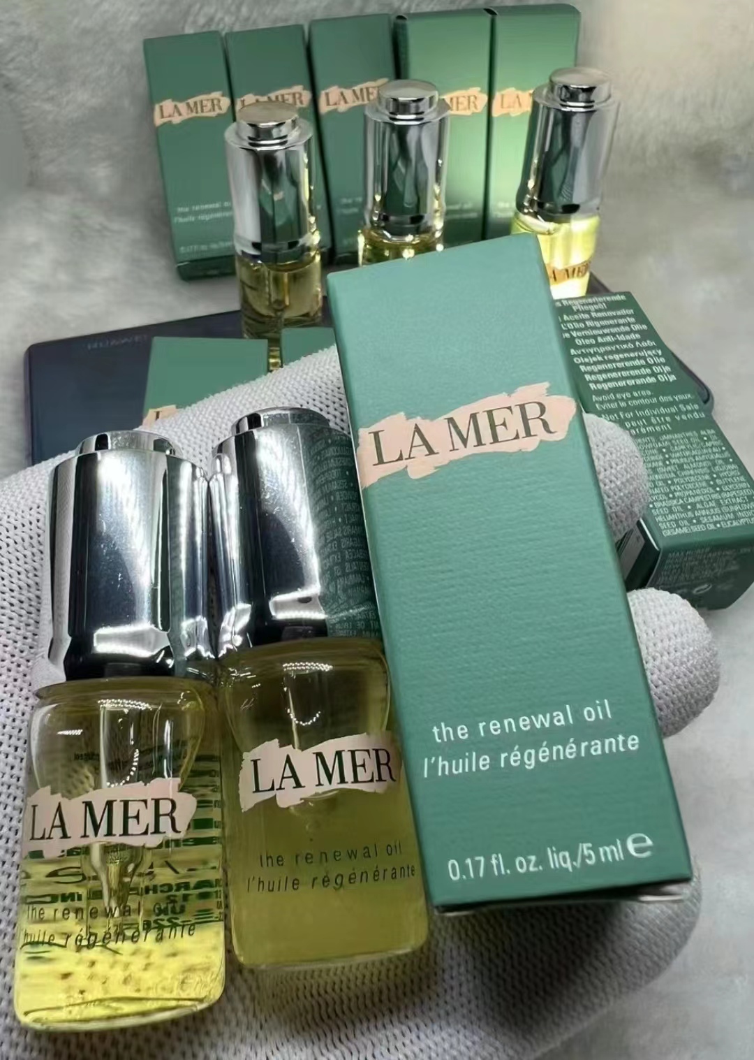 海蓝之谜焕活油,把白池花籽油的量一下子怼到最大,还有很款陪衬的植物油,也是海蓝之谜经常用的。