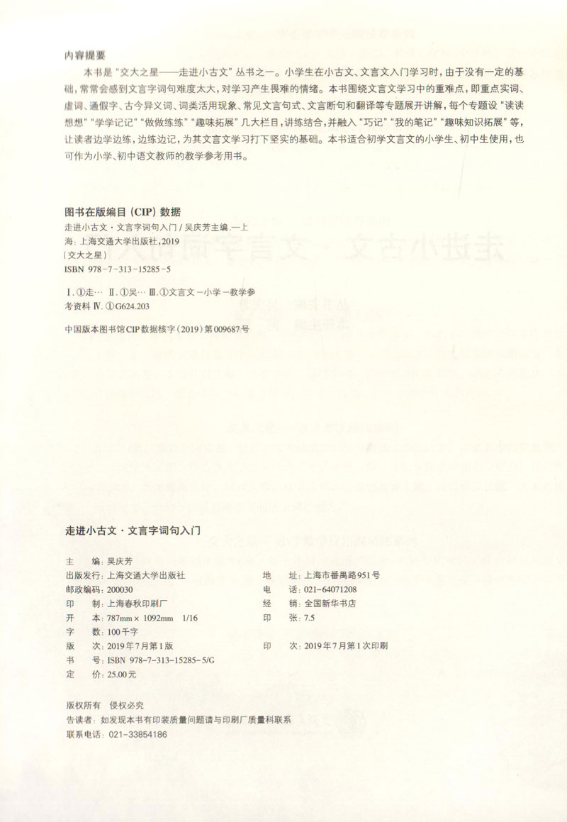 交大之星 走进小古文文言字词句入门 小学四五六年级语文 文言文阅读训练小升初文言文小学生文言文启蒙助读上海交通大学