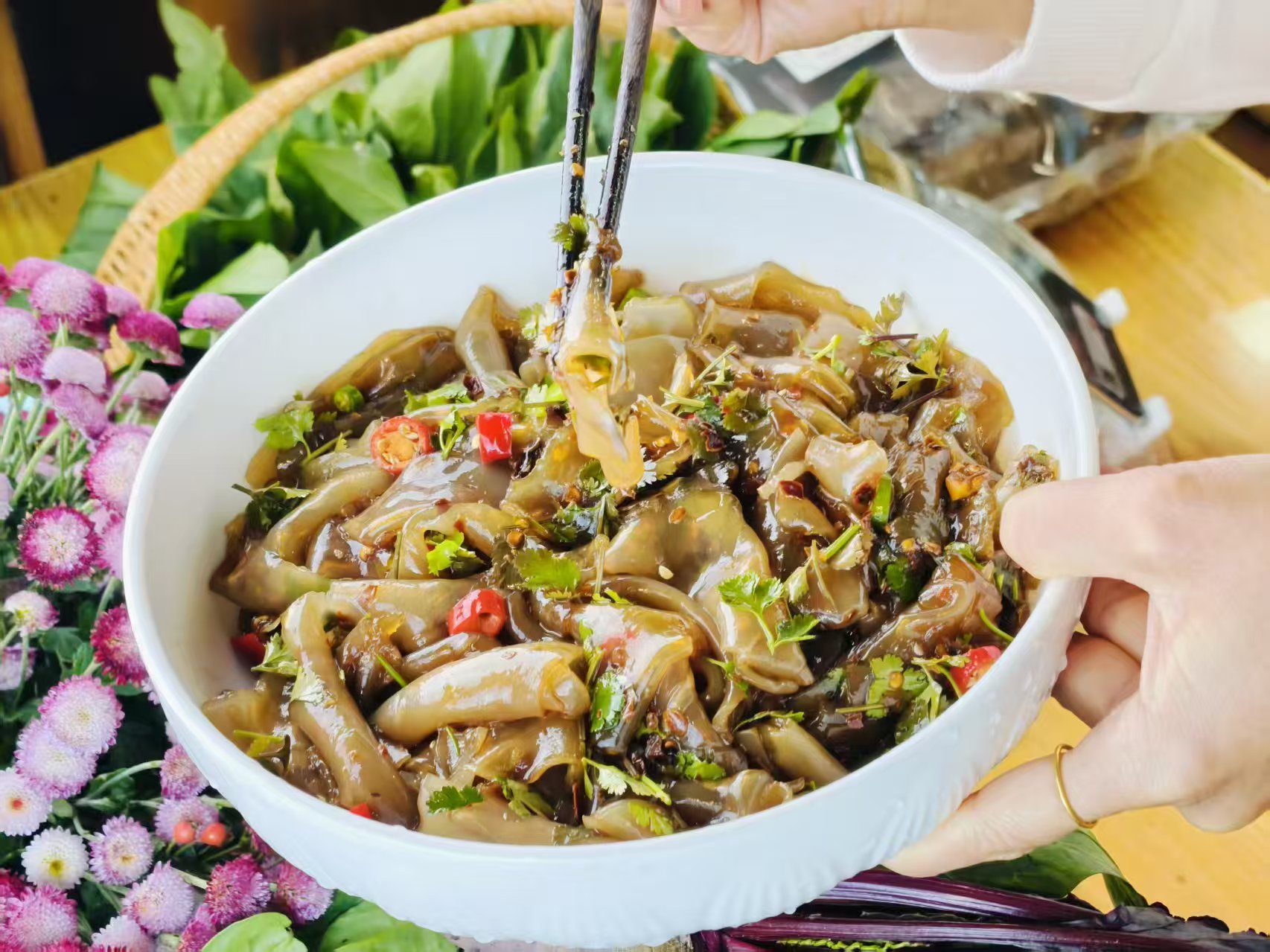 最后滴2滴芝麻油提香,摇匀加入粉皮