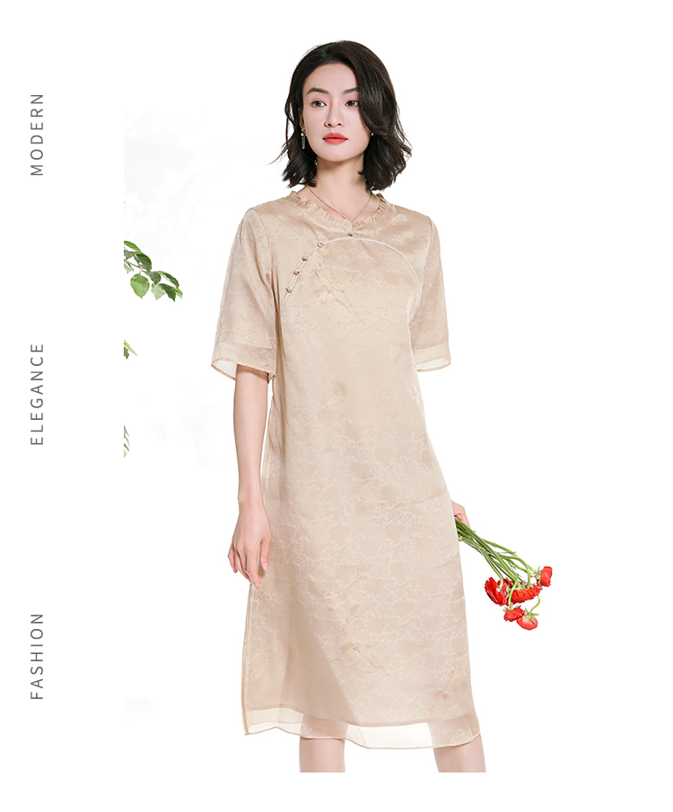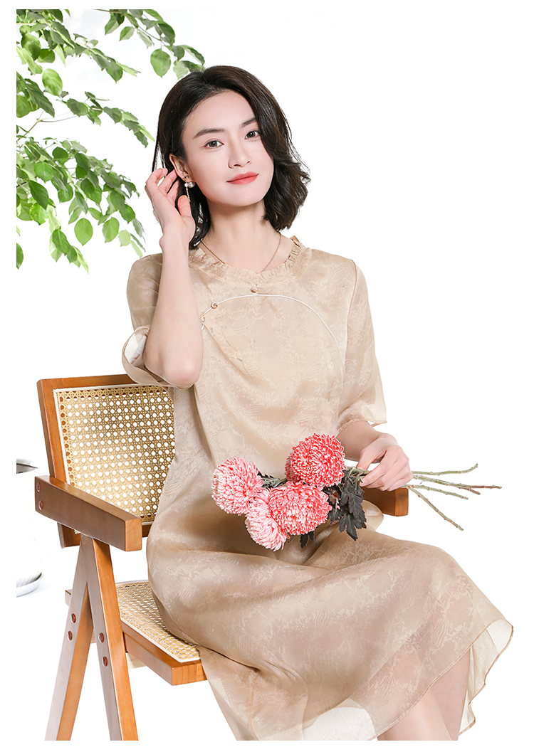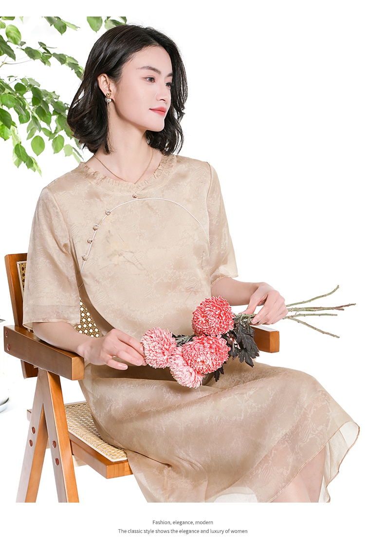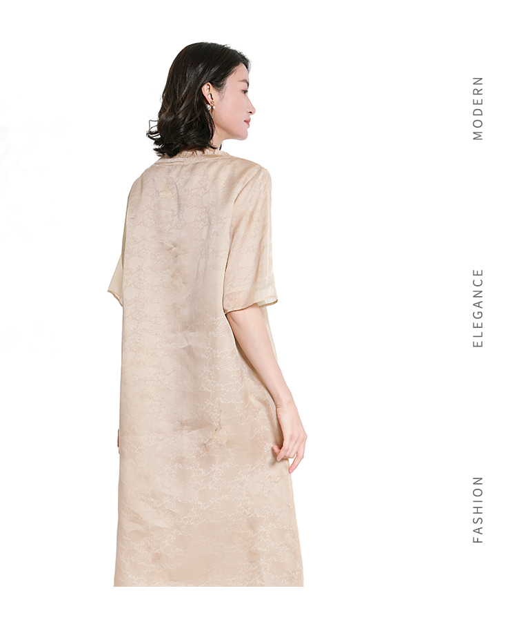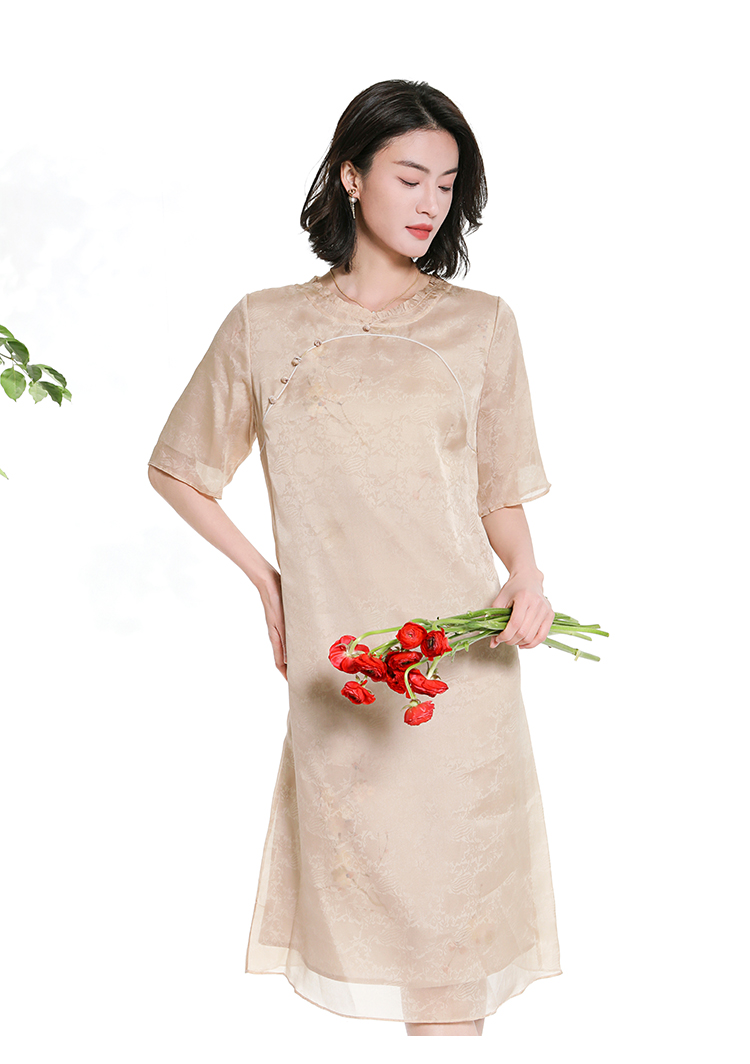佐尔美夏季新款新中式国风桑蚕丝短袖连衣裙女M42LS92