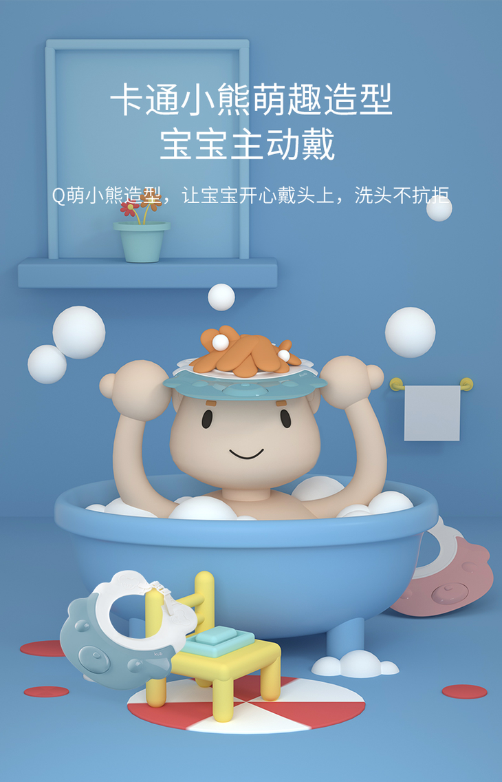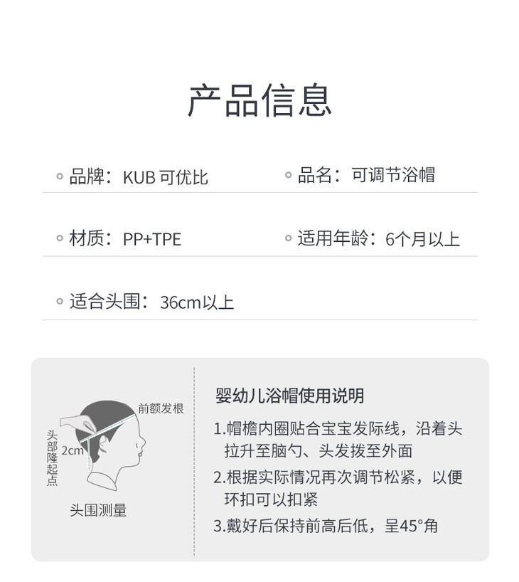 KUB宝宝洗头帽小孩洗澡帽可调节婴儿洗发帽儿童浴帽防水护耳