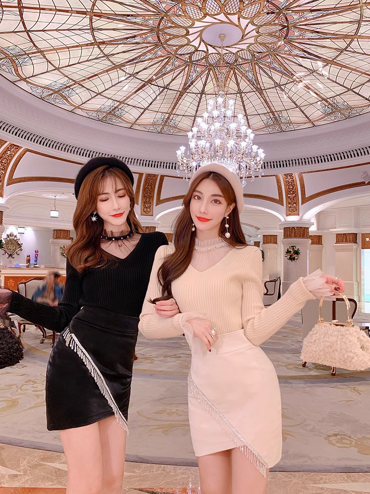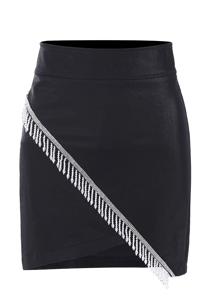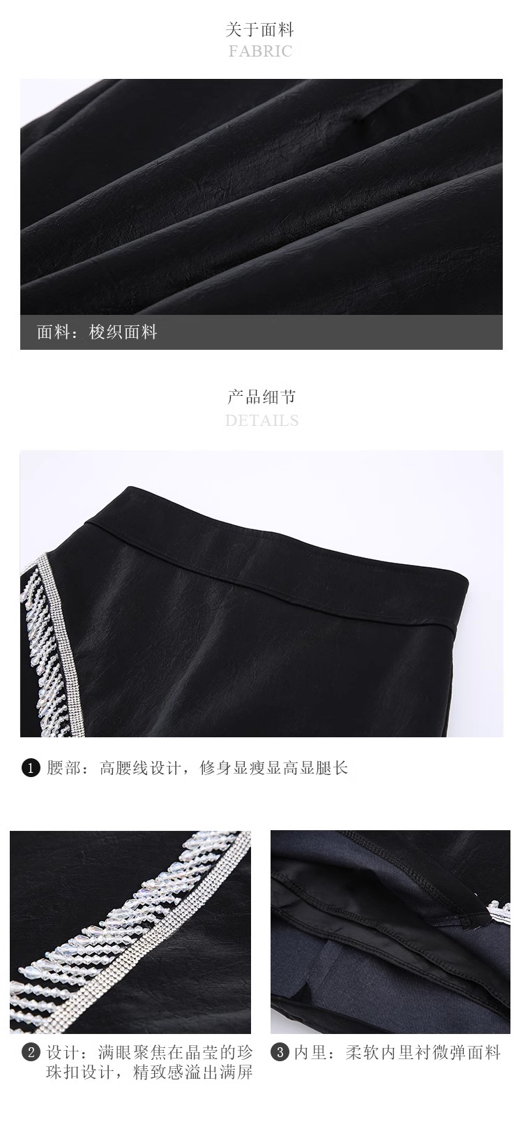 张心子短裙秋装2023款气质名媛不规则光泽感高腰半身裙皮裙女 191258