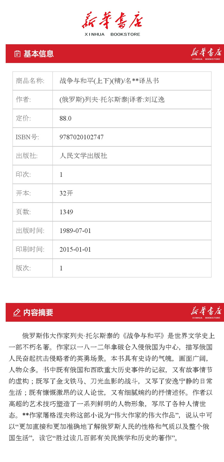 【新华书店旗舰店官网】战争与和平上下全2册 精装版 人民文学出版社 列夫·托尔斯泰著 初中高中学生课外阅读 名著名译丛书系列